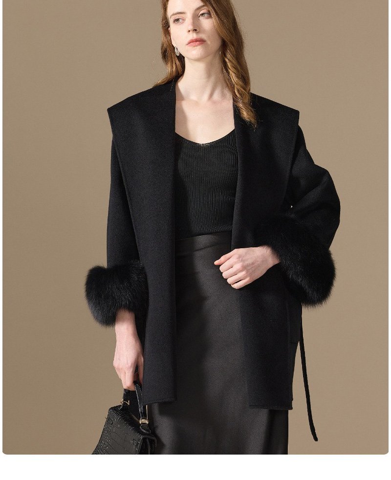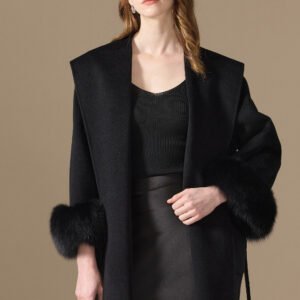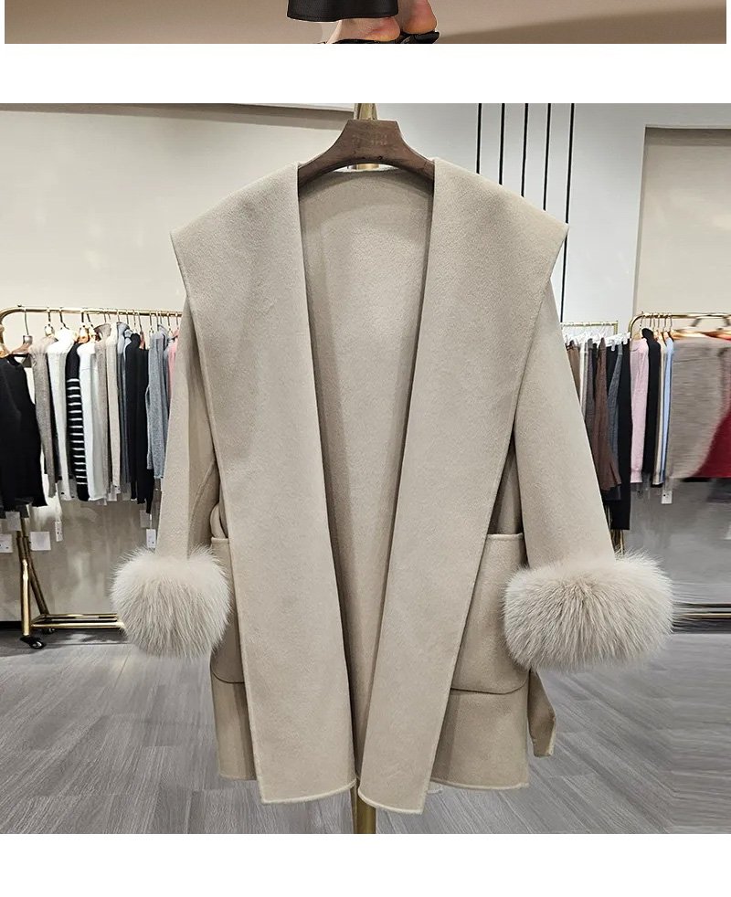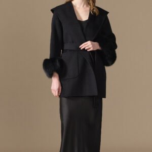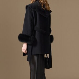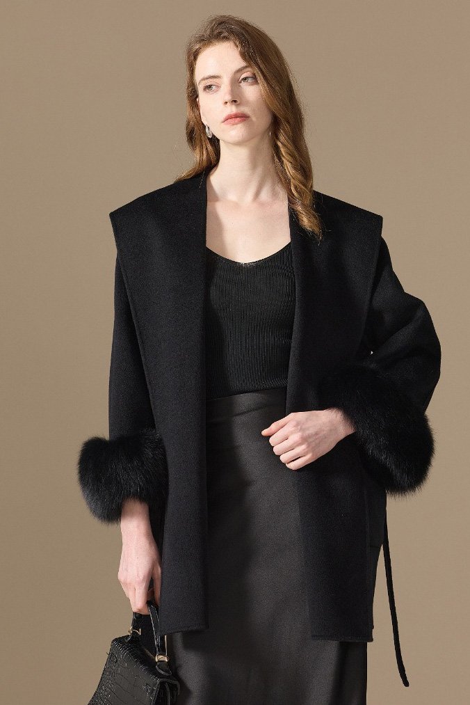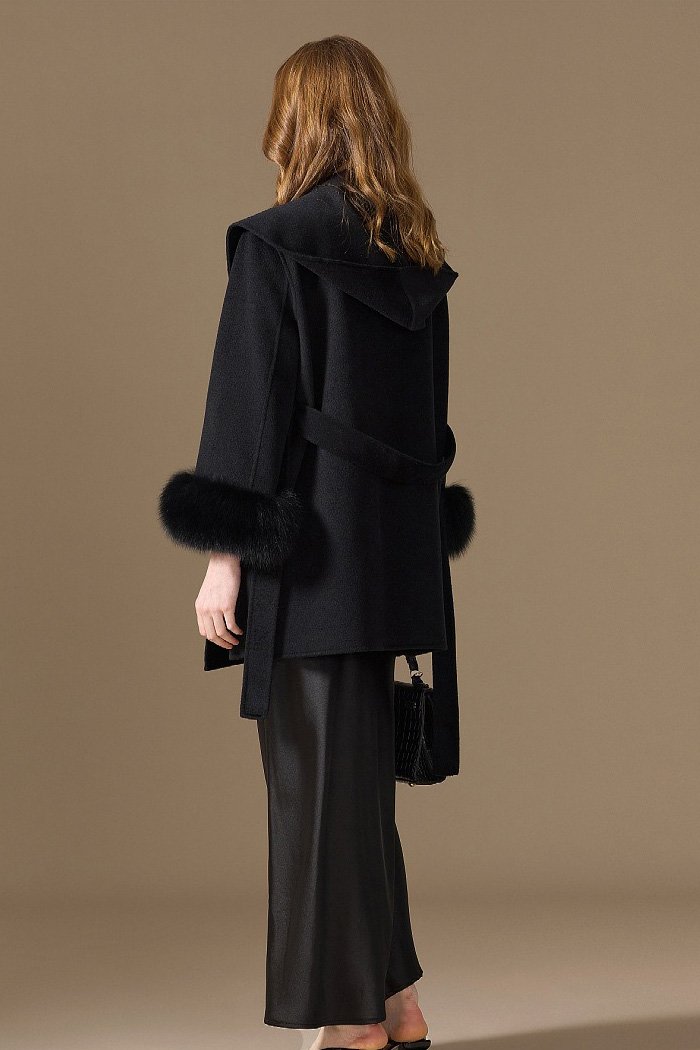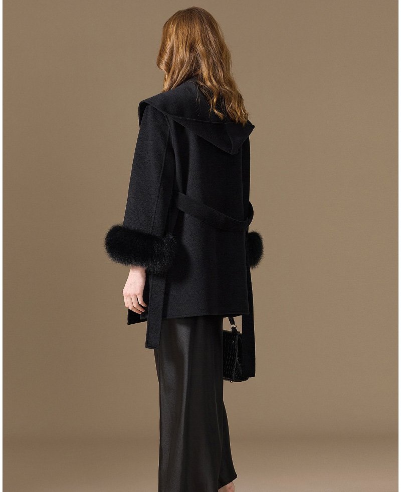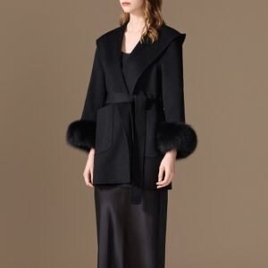 10% Cashmere / 90% Wool Hooded Short Coat – Fox Fur Cuffs (Women’s)