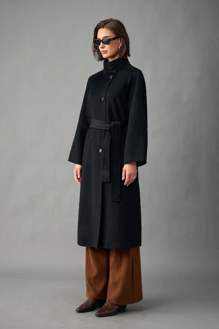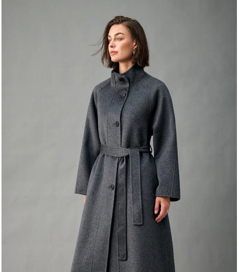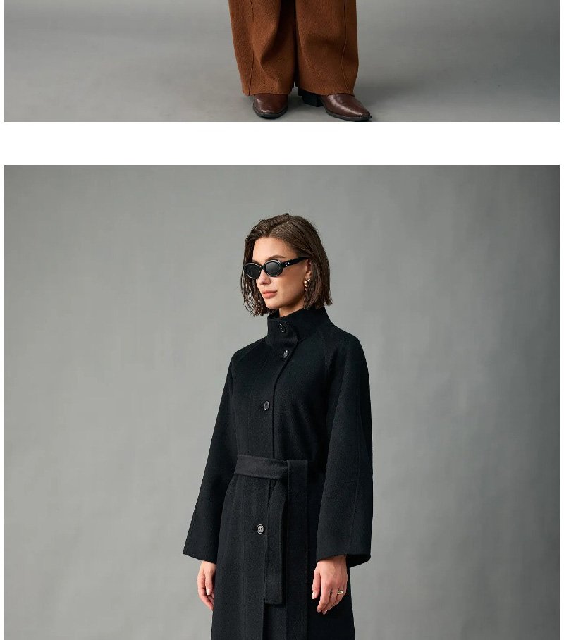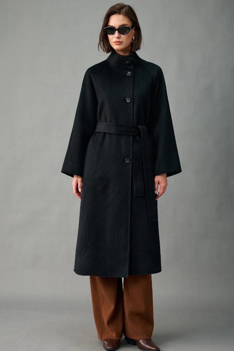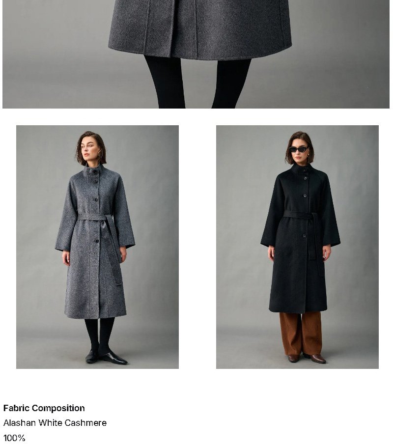 100% Alxa Pure Cashmere 2025 Fall/Winter New Double-Face Mid-Length Coat for Women – Stand Collar, Single-Breasted
