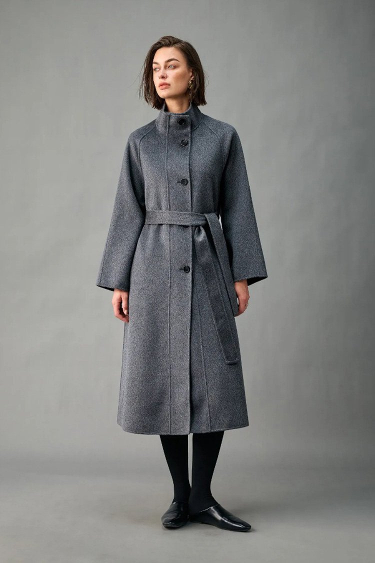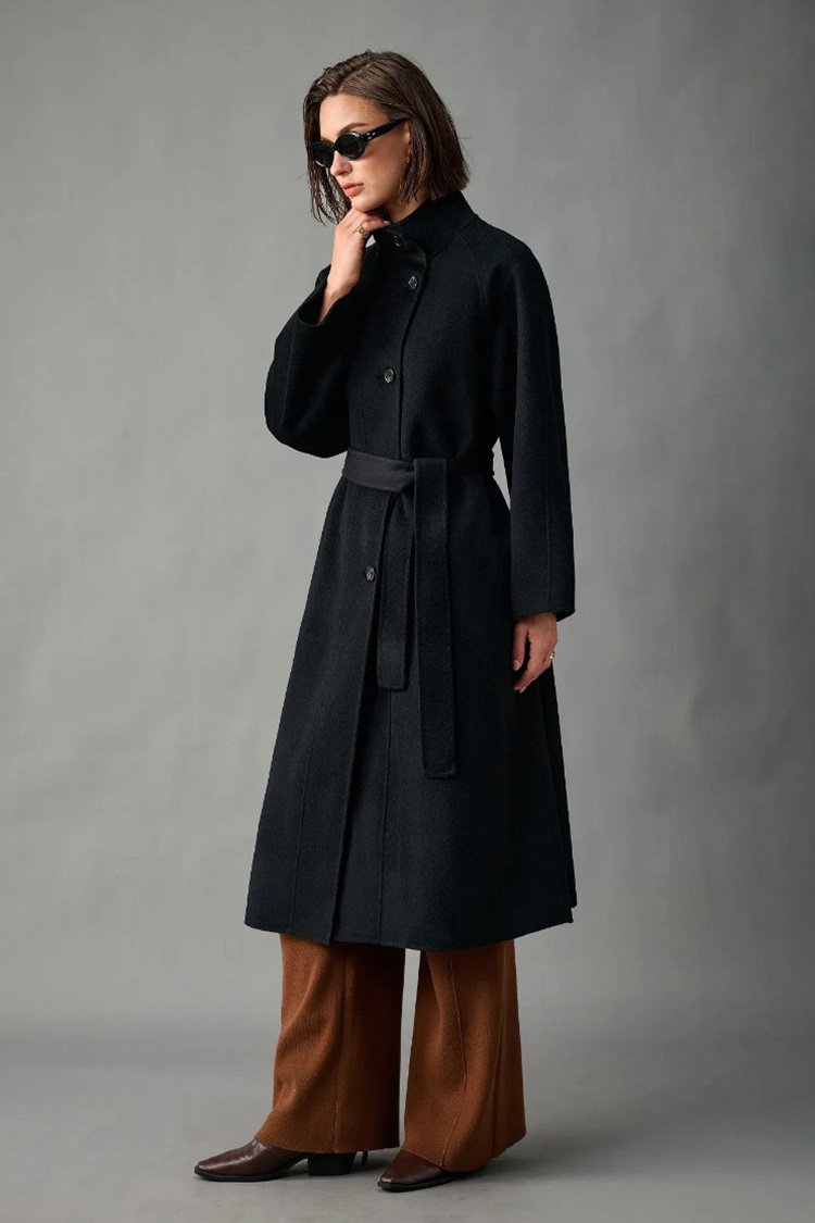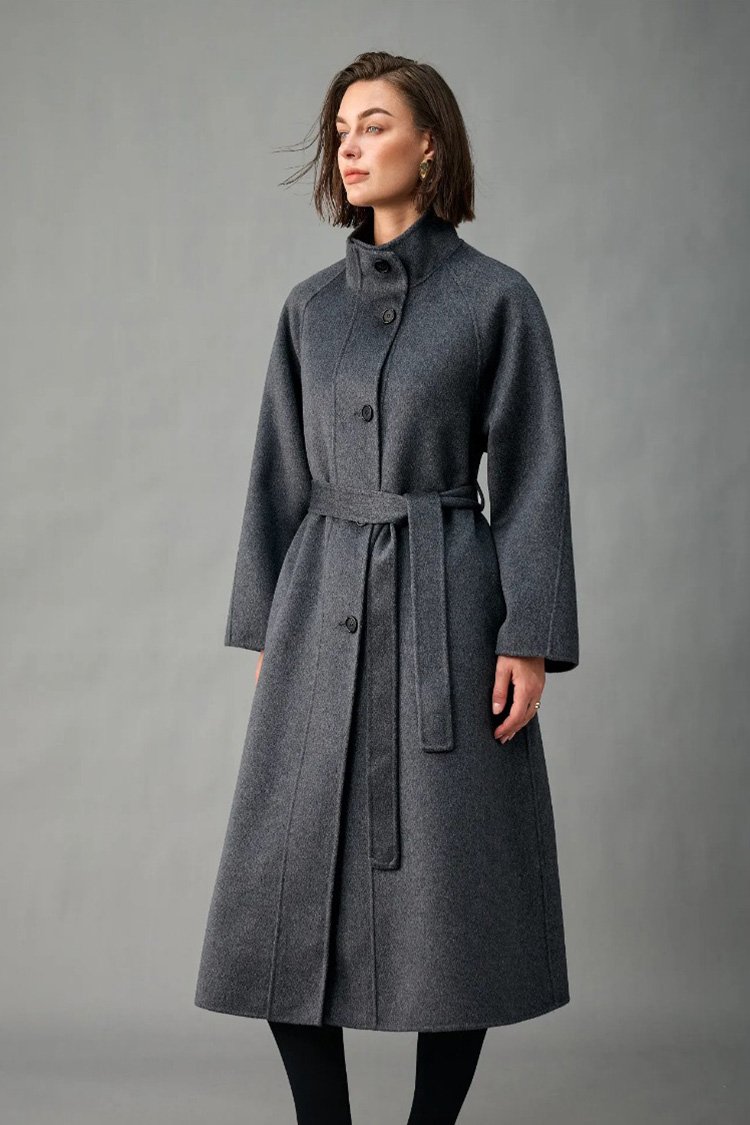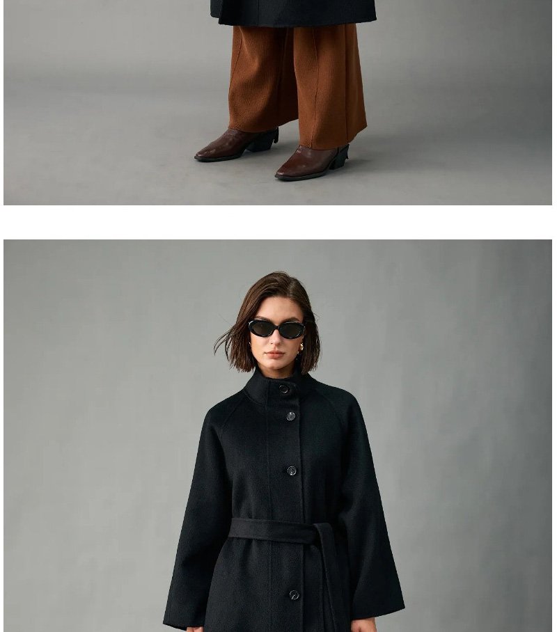 100% Alxa Pure Cashmere 2025 Fall/Winter New Double-Face Mid-Length Coat for Women – Stand Collar, Single-Breasted