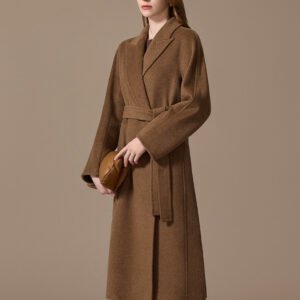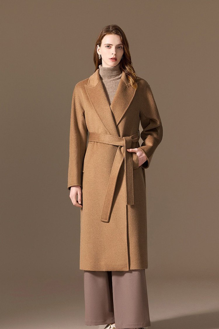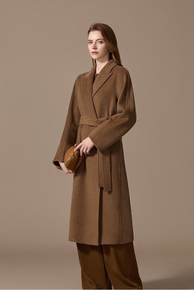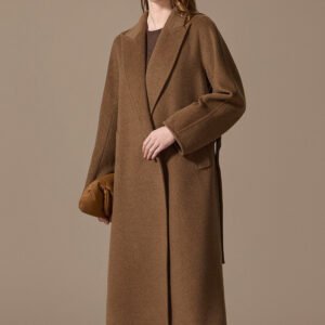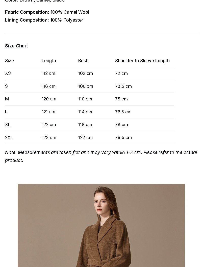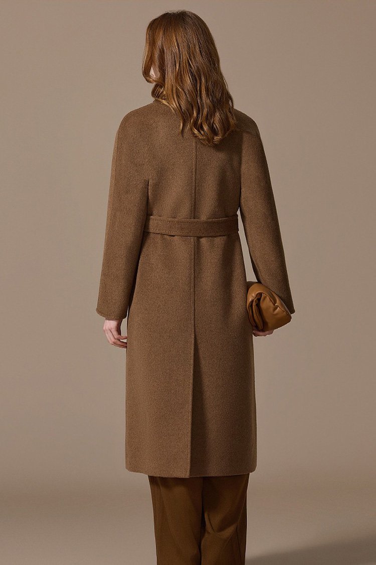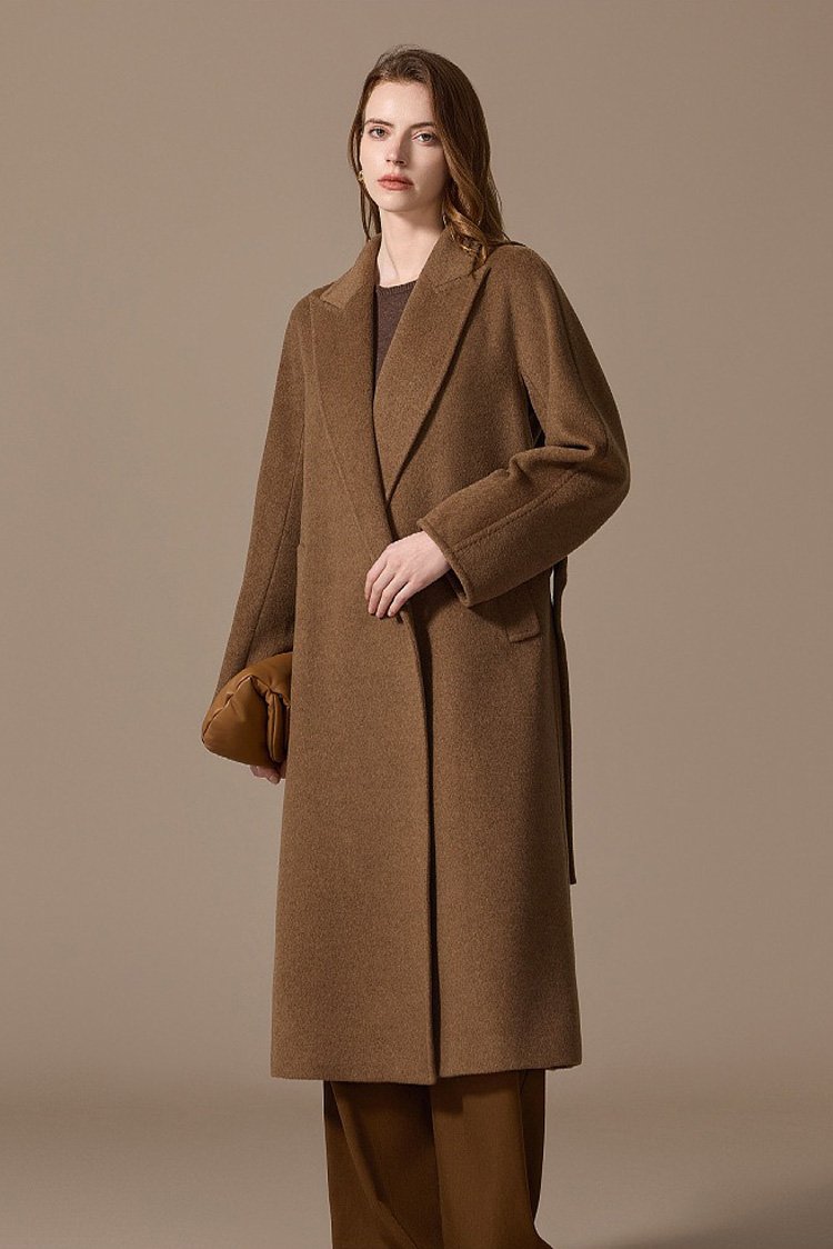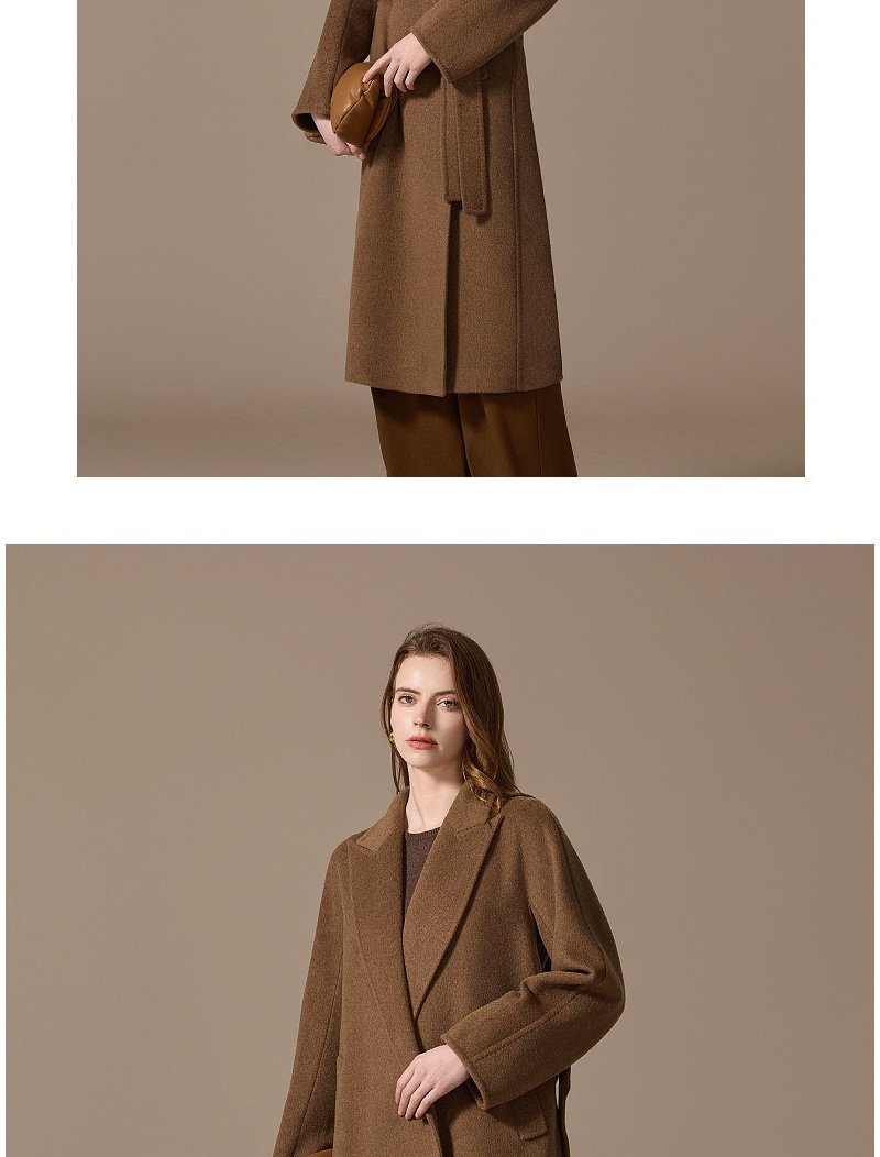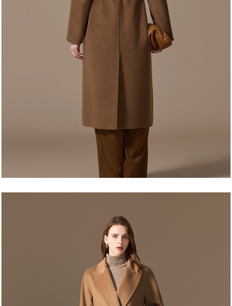 100% Camel Wool Women’s Coat 2025 Winter New Thick Warm Loose-Fit Mid-Length Coffee Brown Wool Overcoat