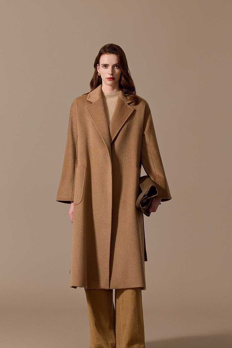 100% Camel Wool Women’s Long Coat 2025 Winter Thick Warm Loose-Fit Premium-Feel Wool Overcoat