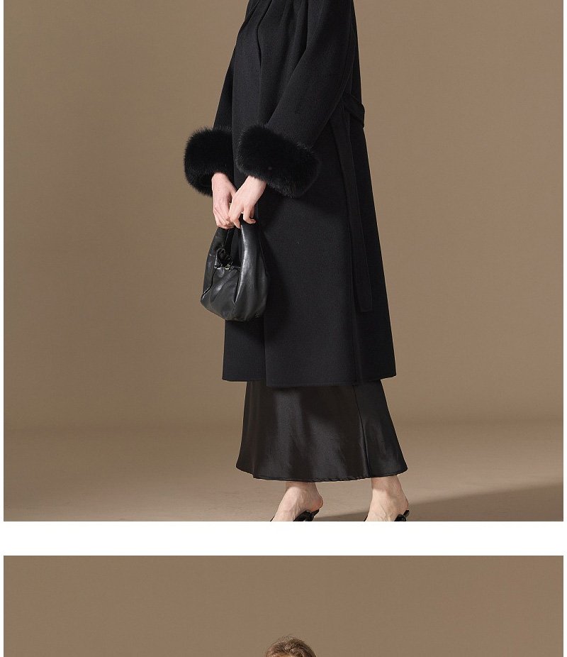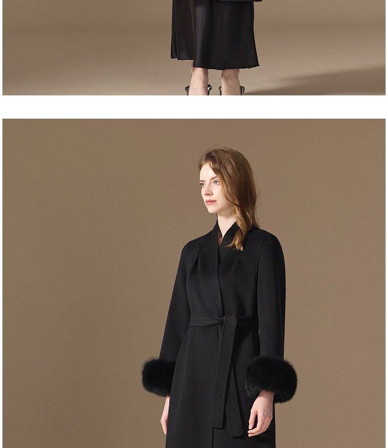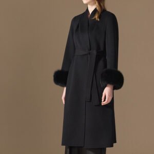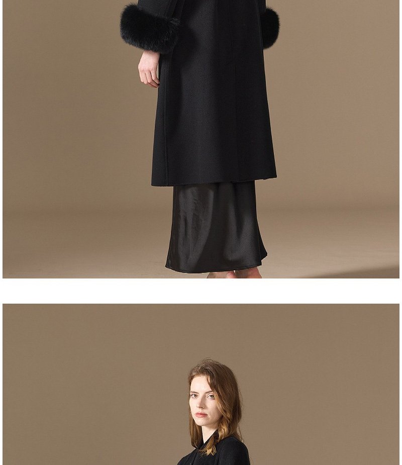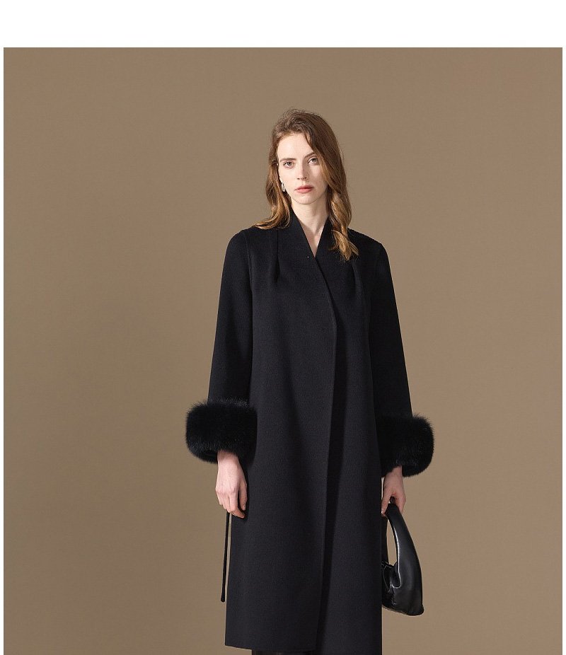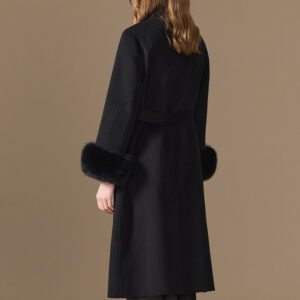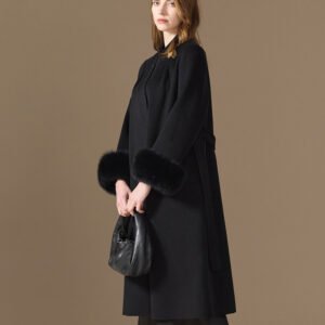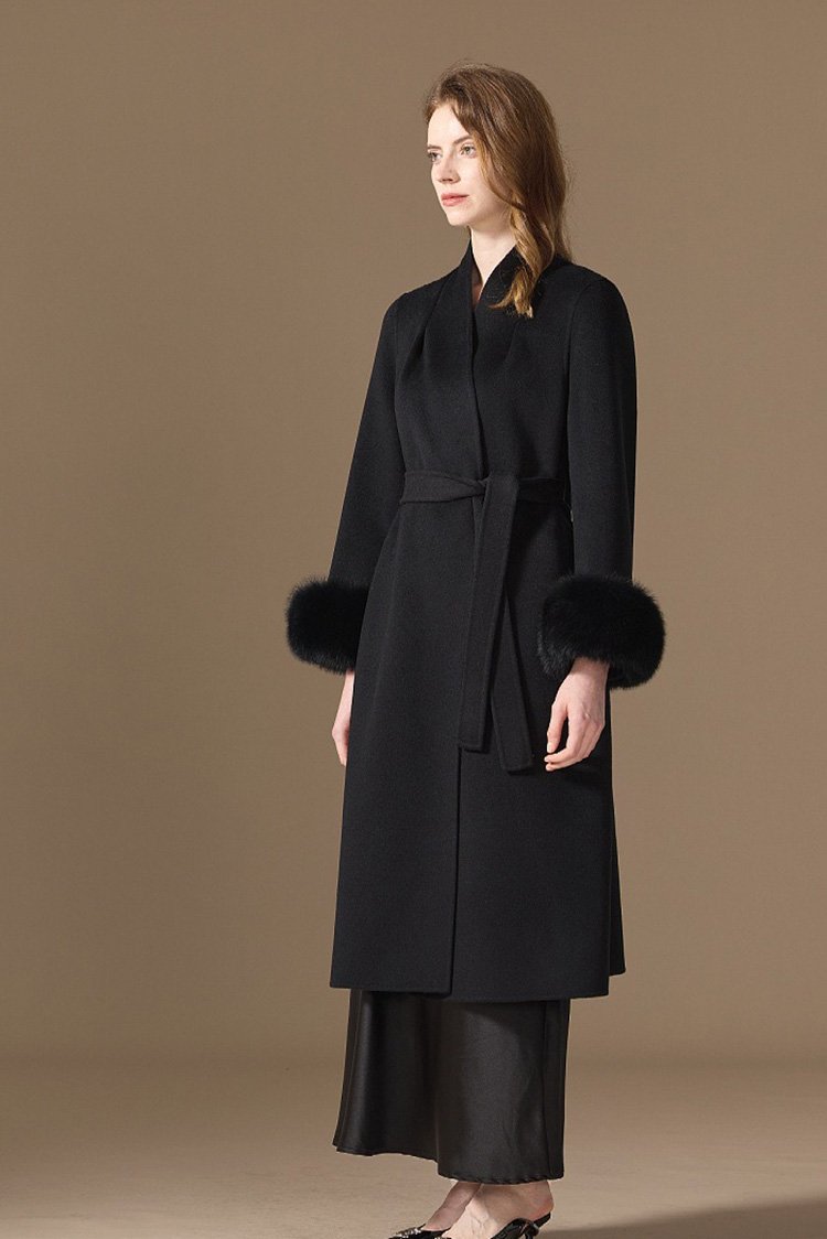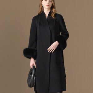 100% Cashmere Women’s Coat 2025 Winter New Arrival Solid Cashmere Collarless Wool Coat with Fox Fur Cuffs