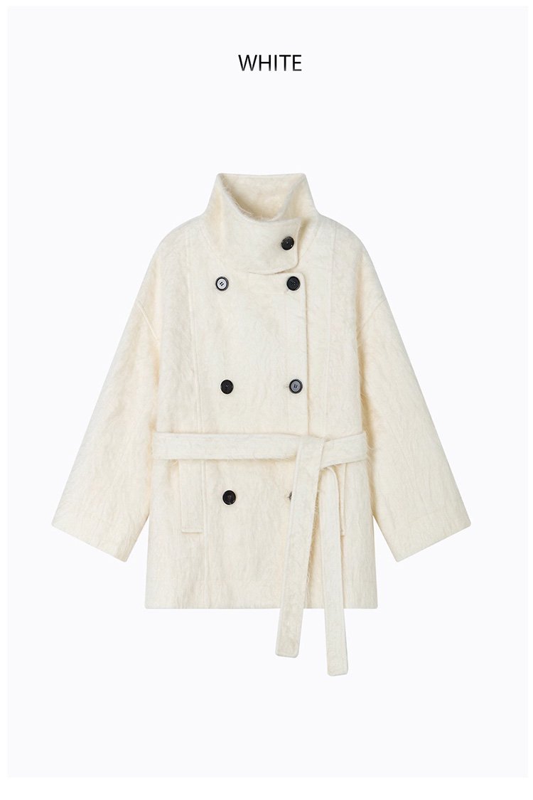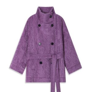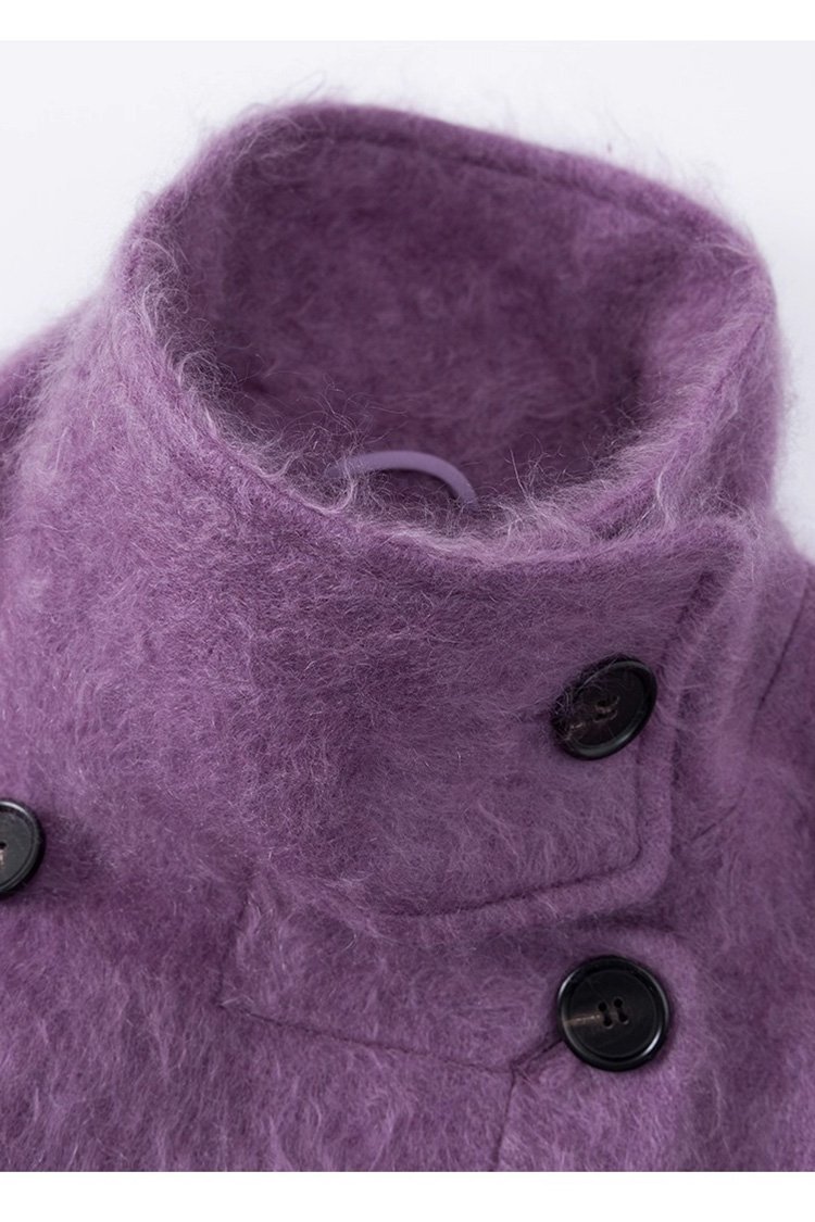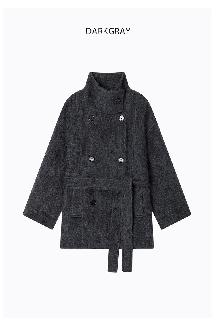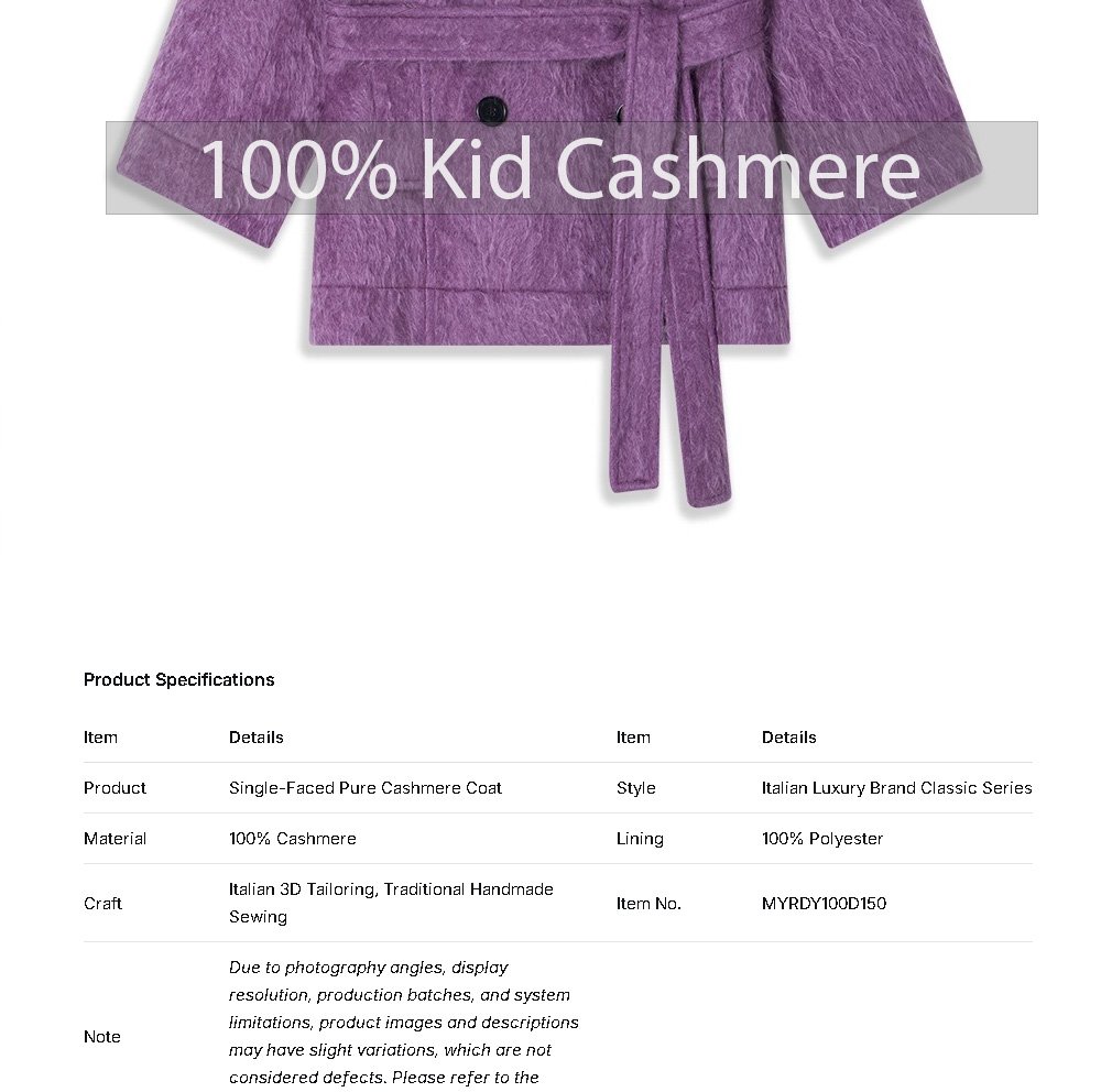 100% Kid Cashmere Brushed Single-Face Short Coat for Women