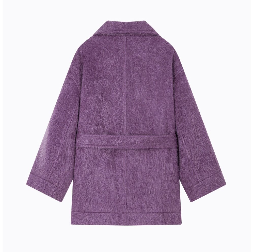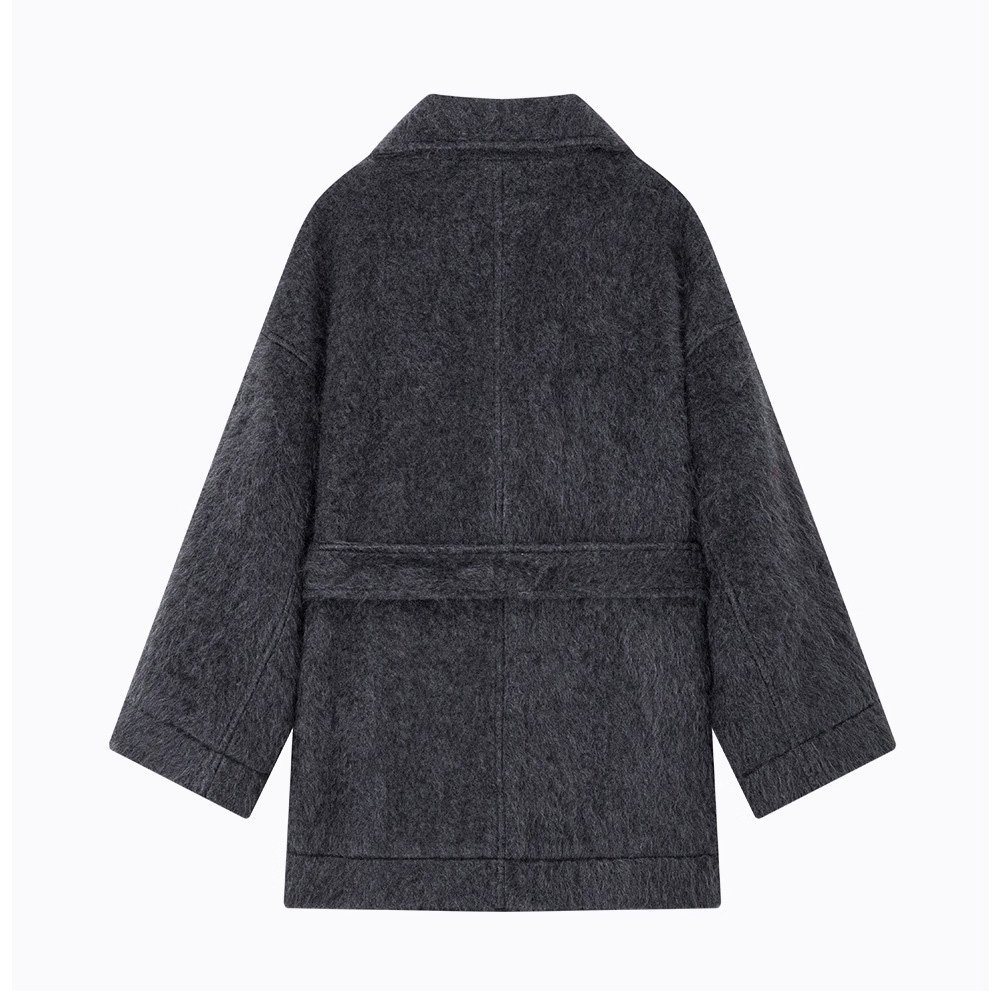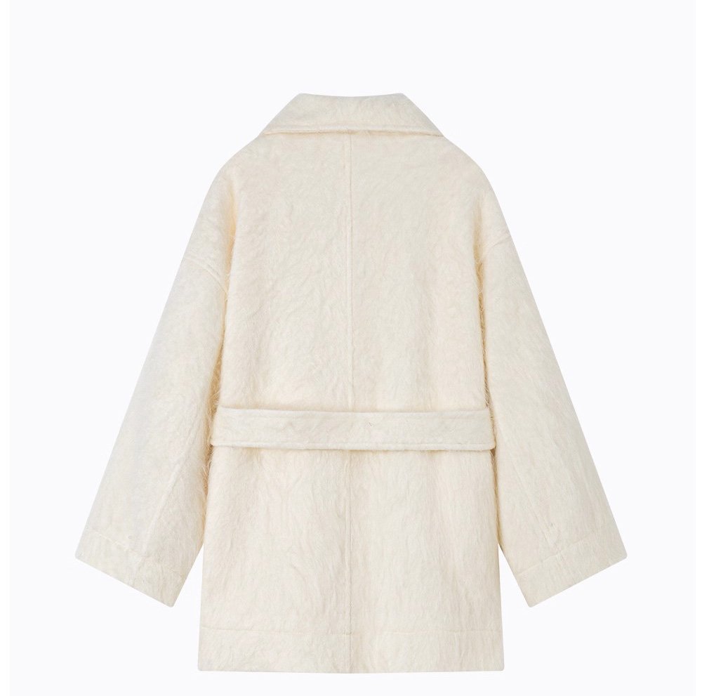 100% Kid Cashmere Brushed Single-Face Short Coat for Women