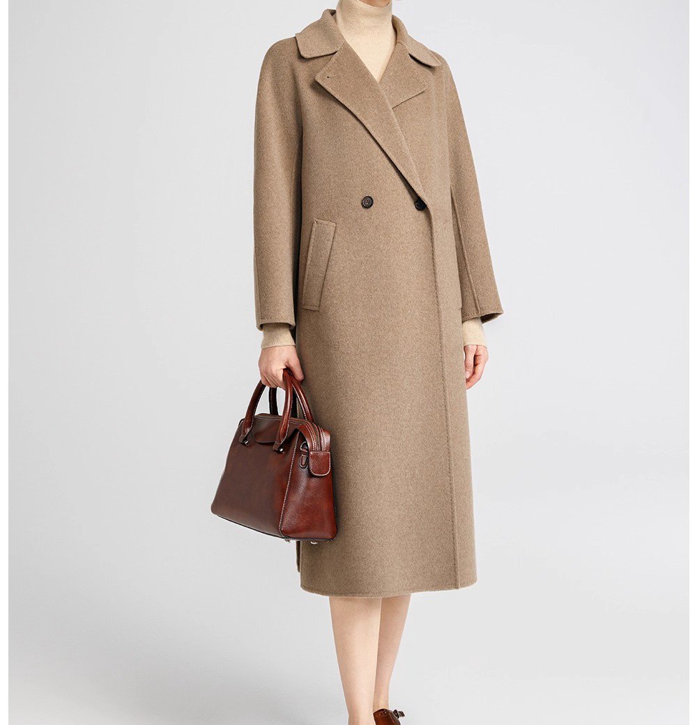100% Kid Cashmere Classic Double-Face Mid-Length Coat for Women