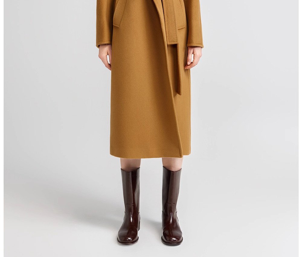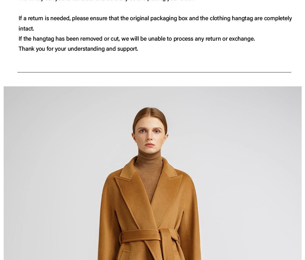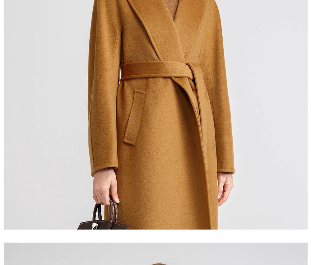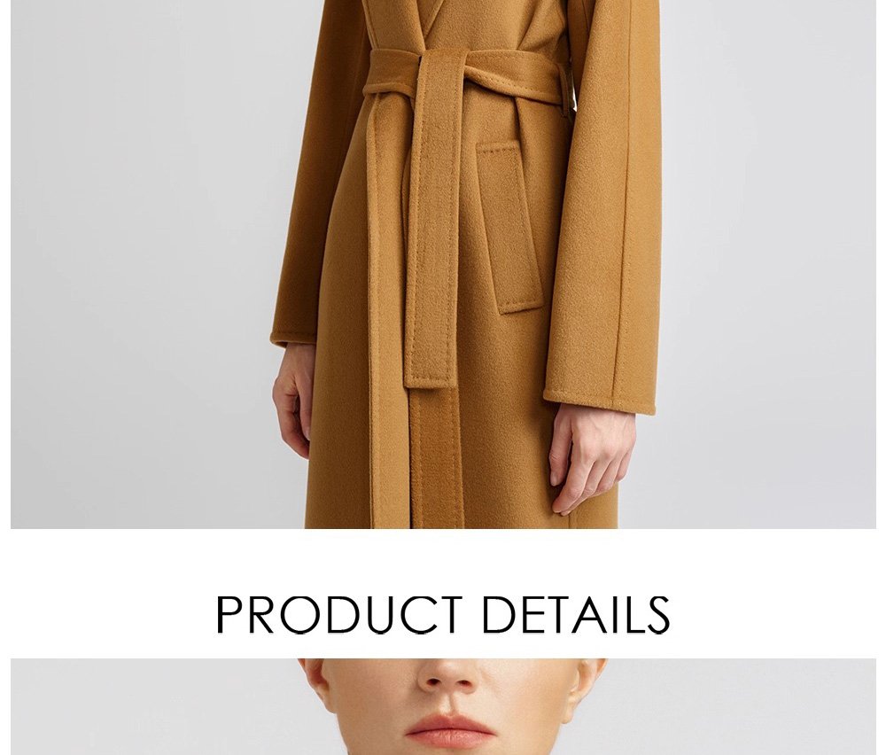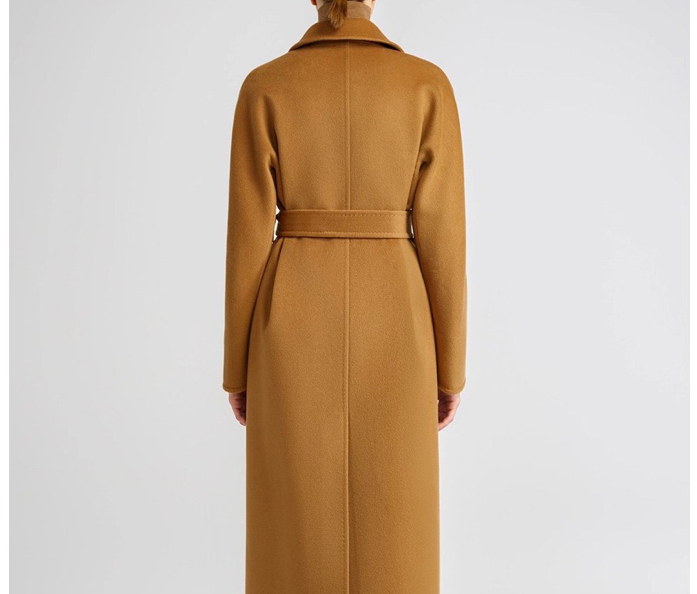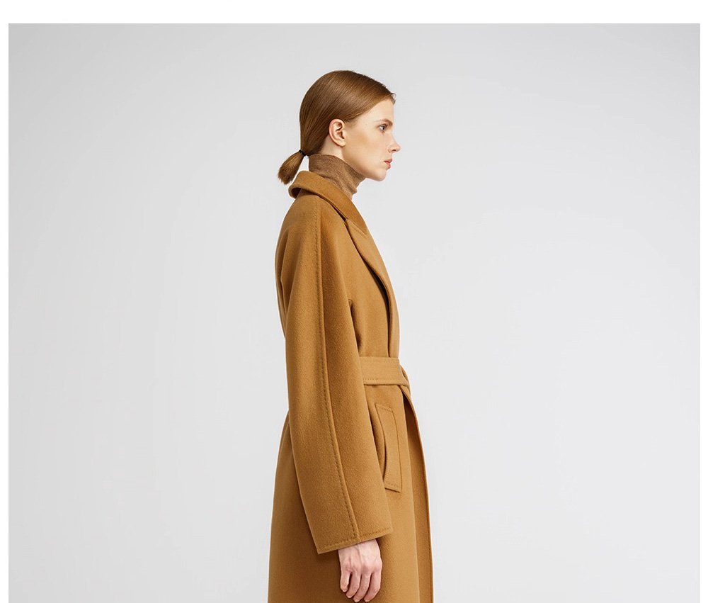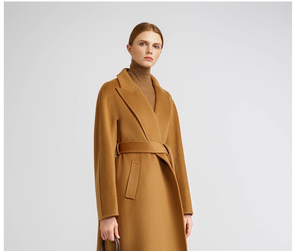100% Tibetan Cashmere Auction-Grade Mid-Length Coat for Women – Black Peak Lapel