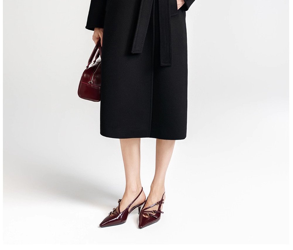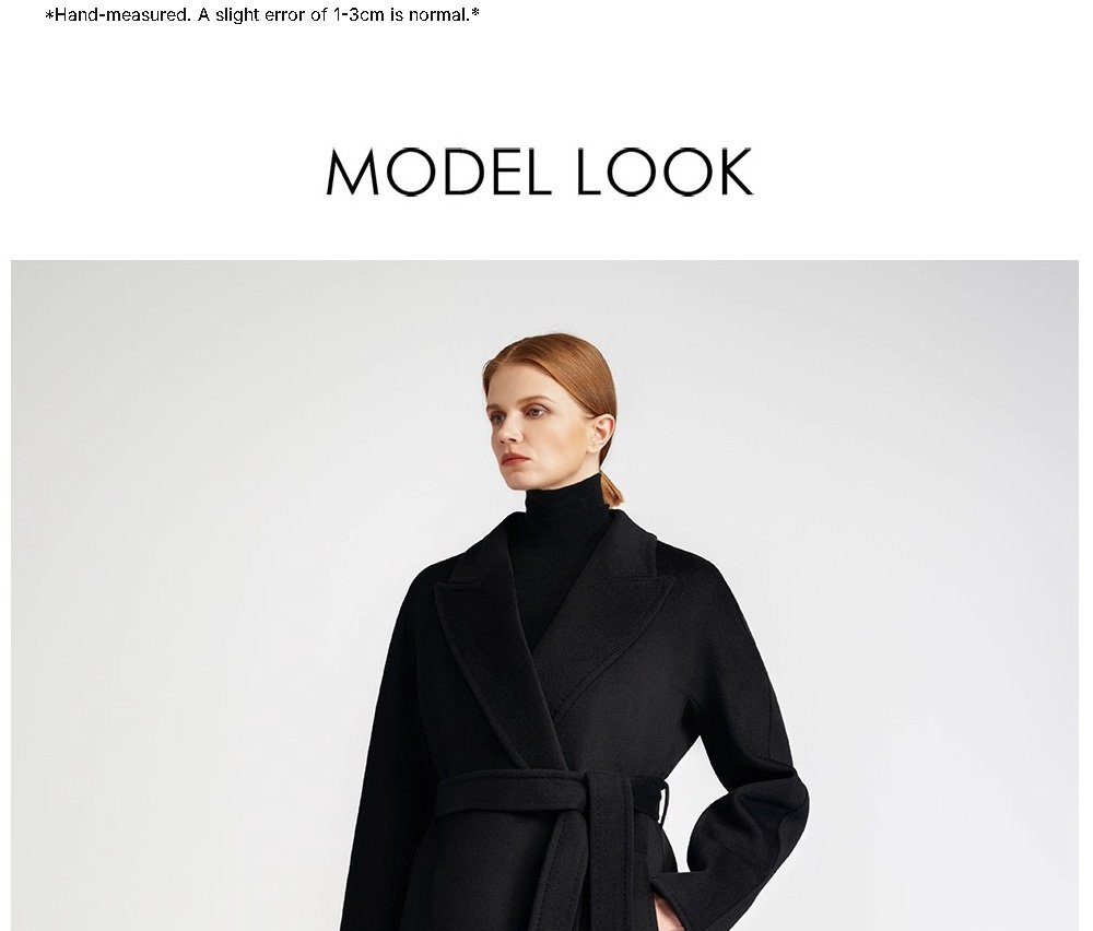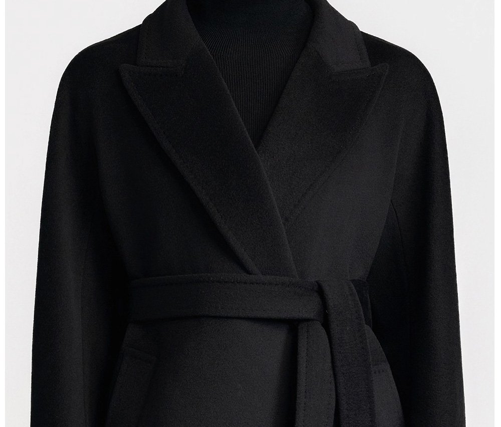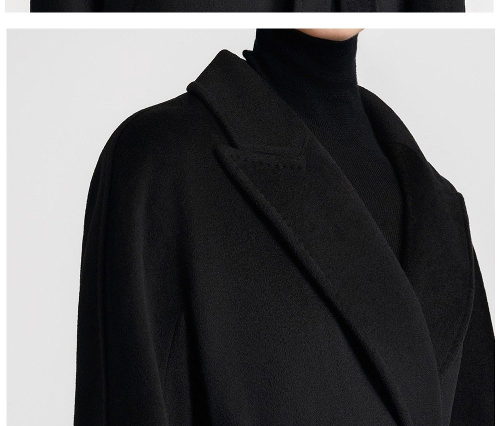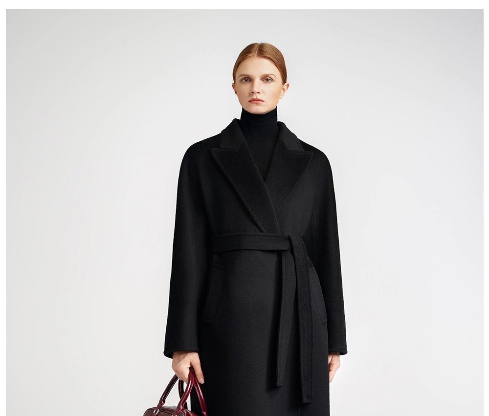 100% Tibetan Cashmere Auction-Grade Mid-Length Coat for Women – Black Peak Lapel