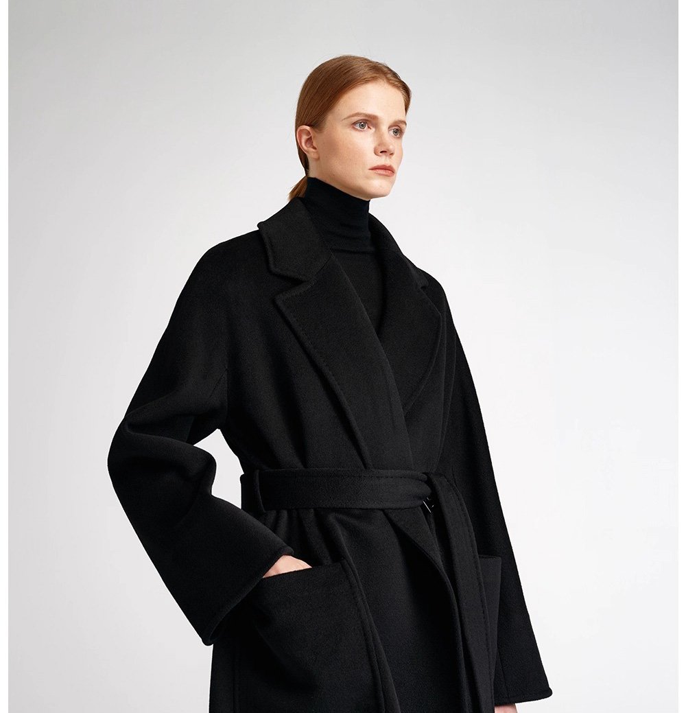 100% Tibetan Kid Cashmere Auction-Grade Single-Face Long Robe Coat for Women