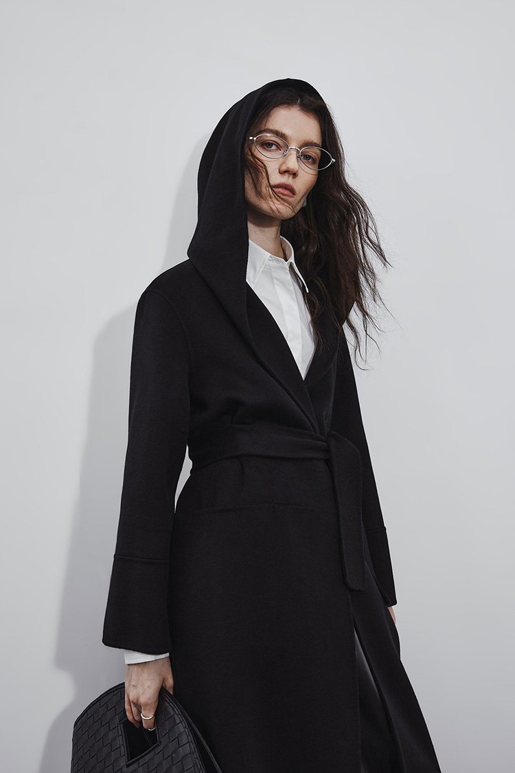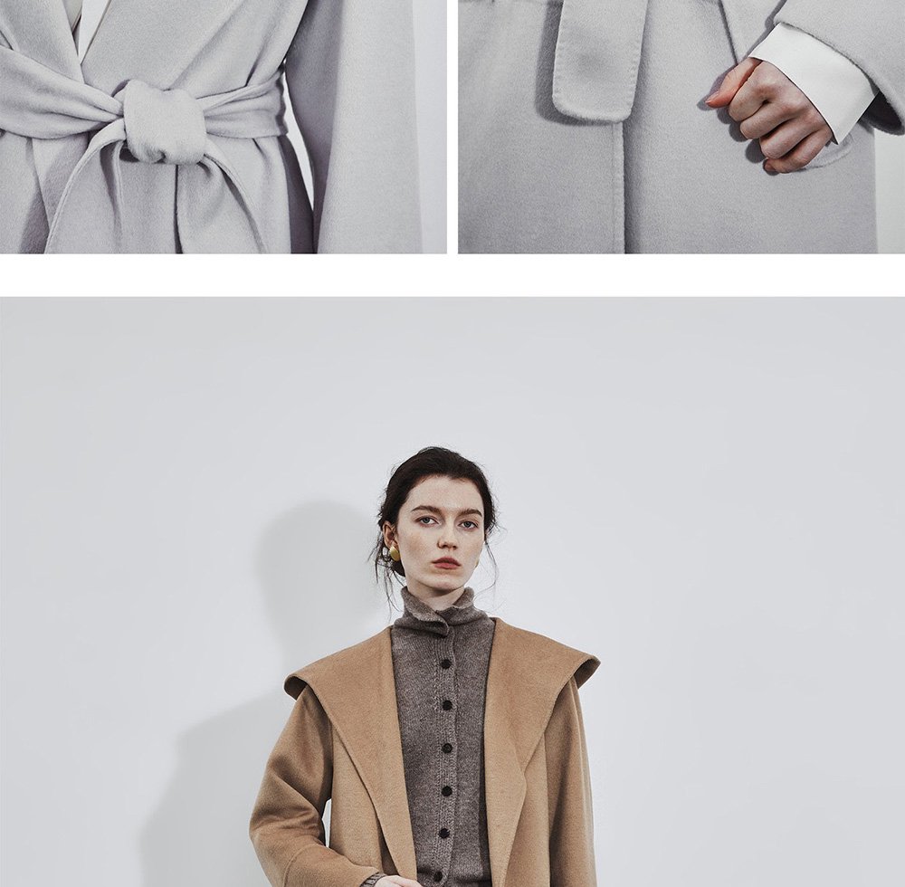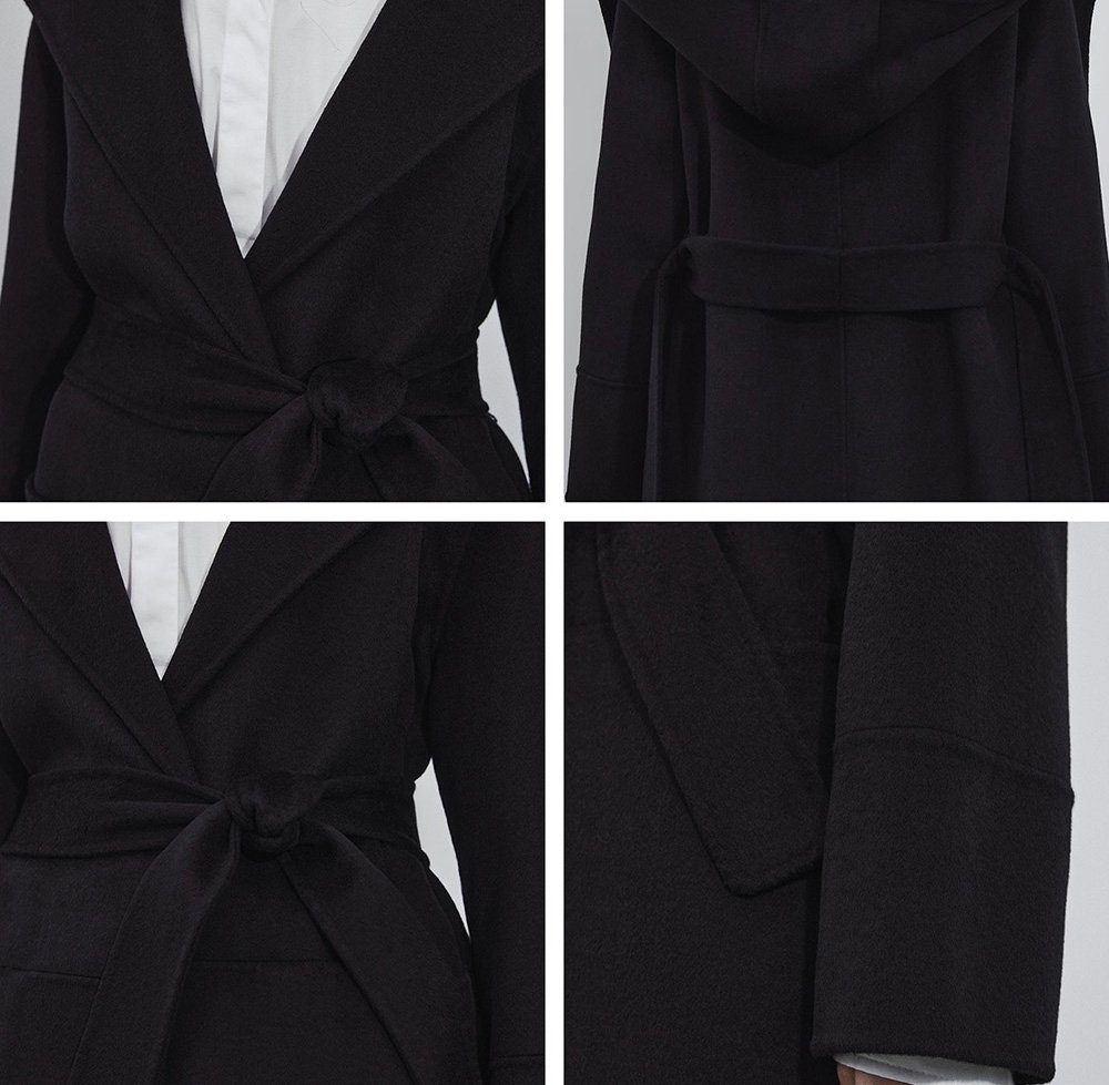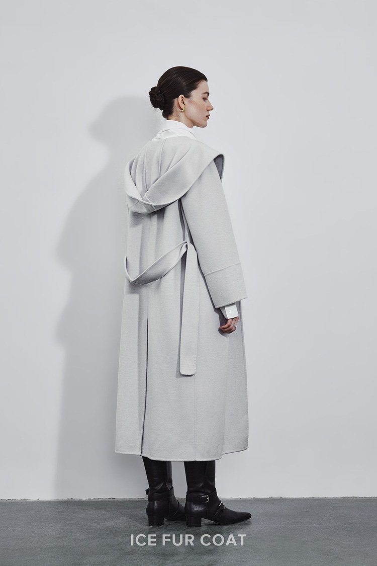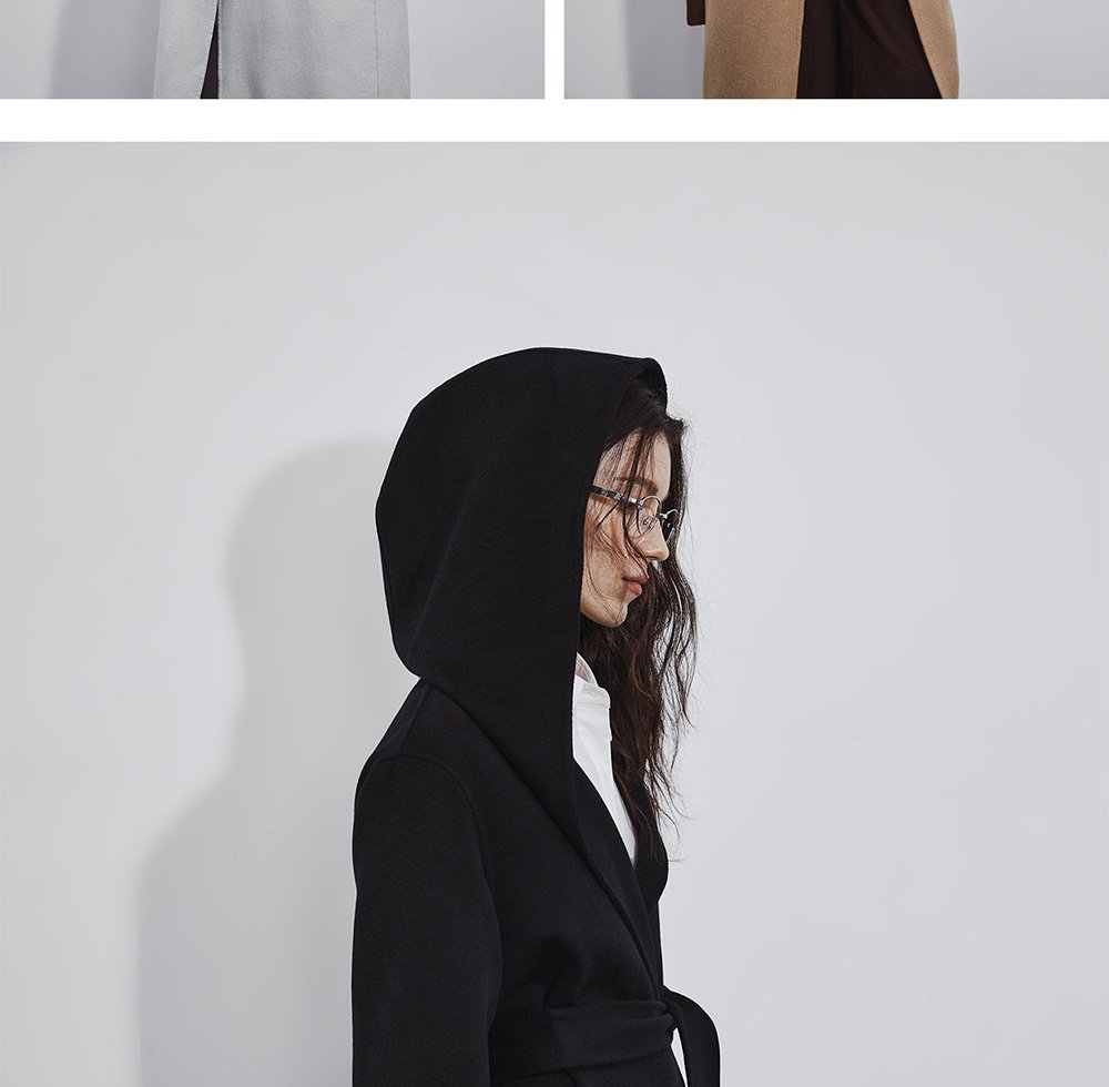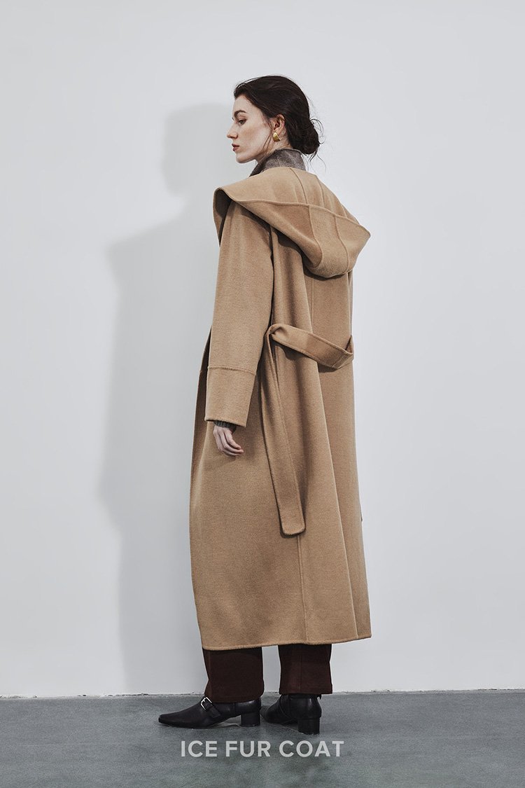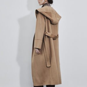 100% Wool 2025 Fall New Double-Face Hooded Belted Extra-Long Coat for Women – Premium Look