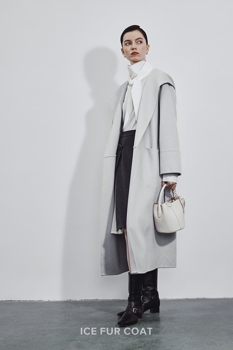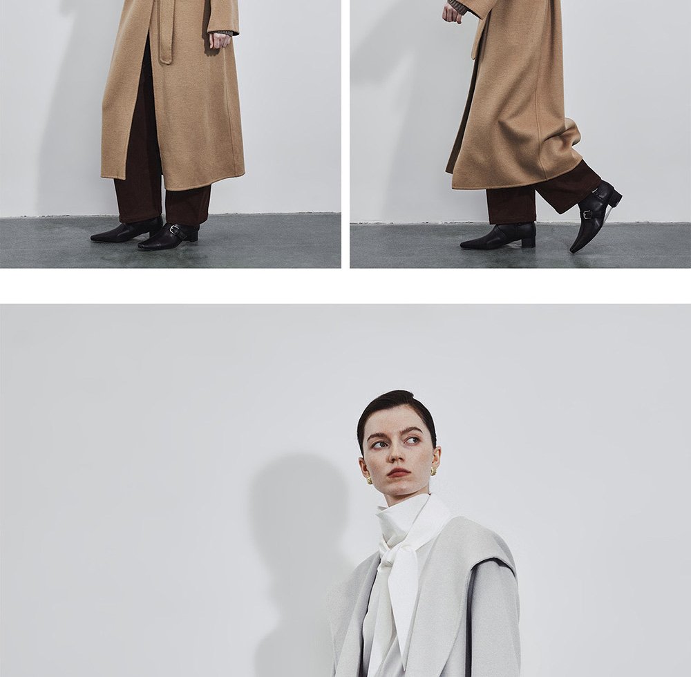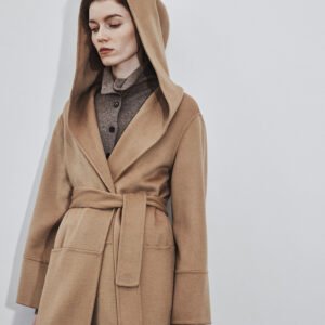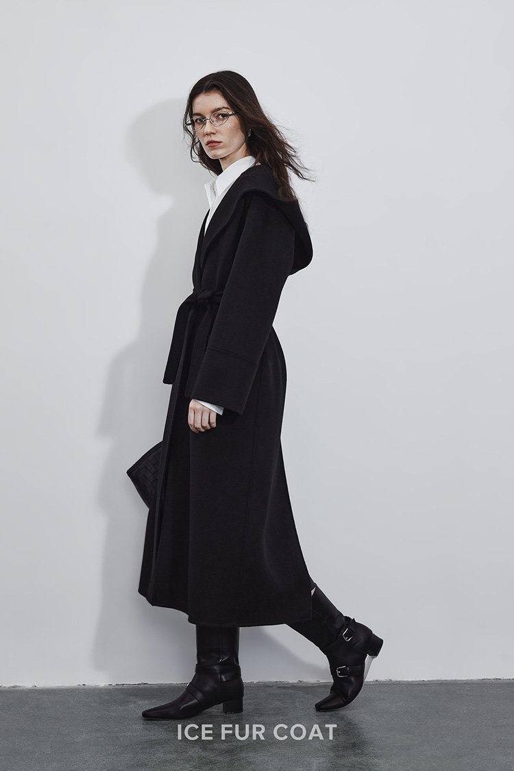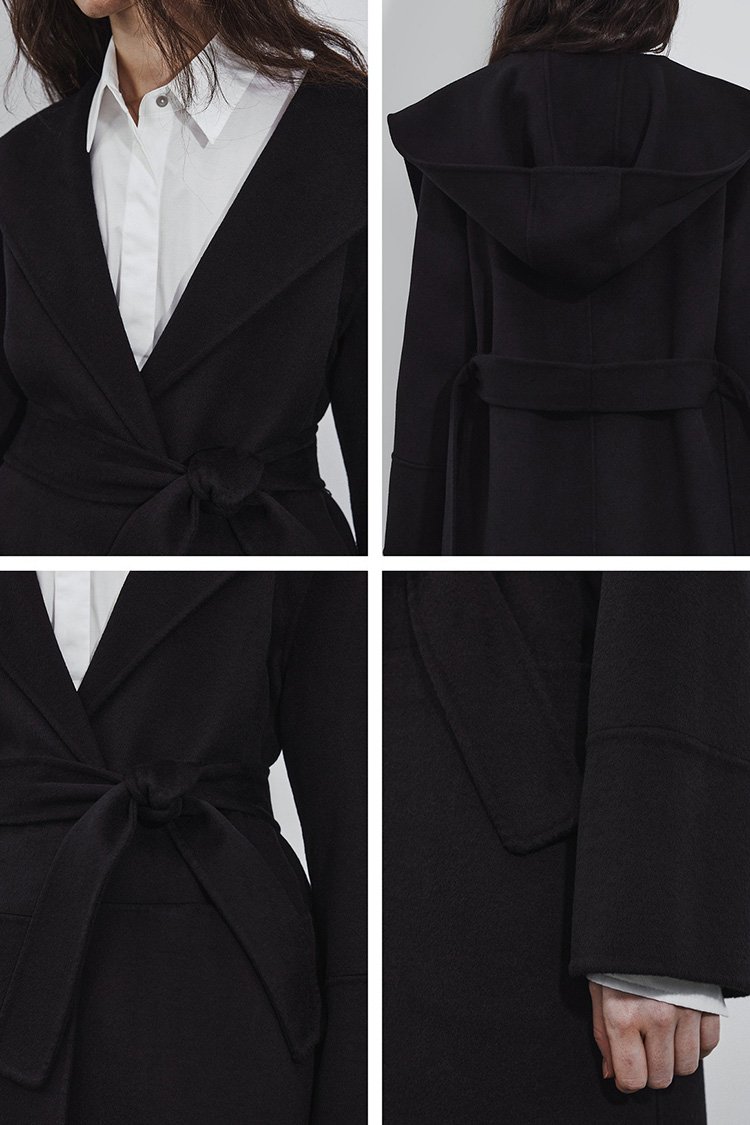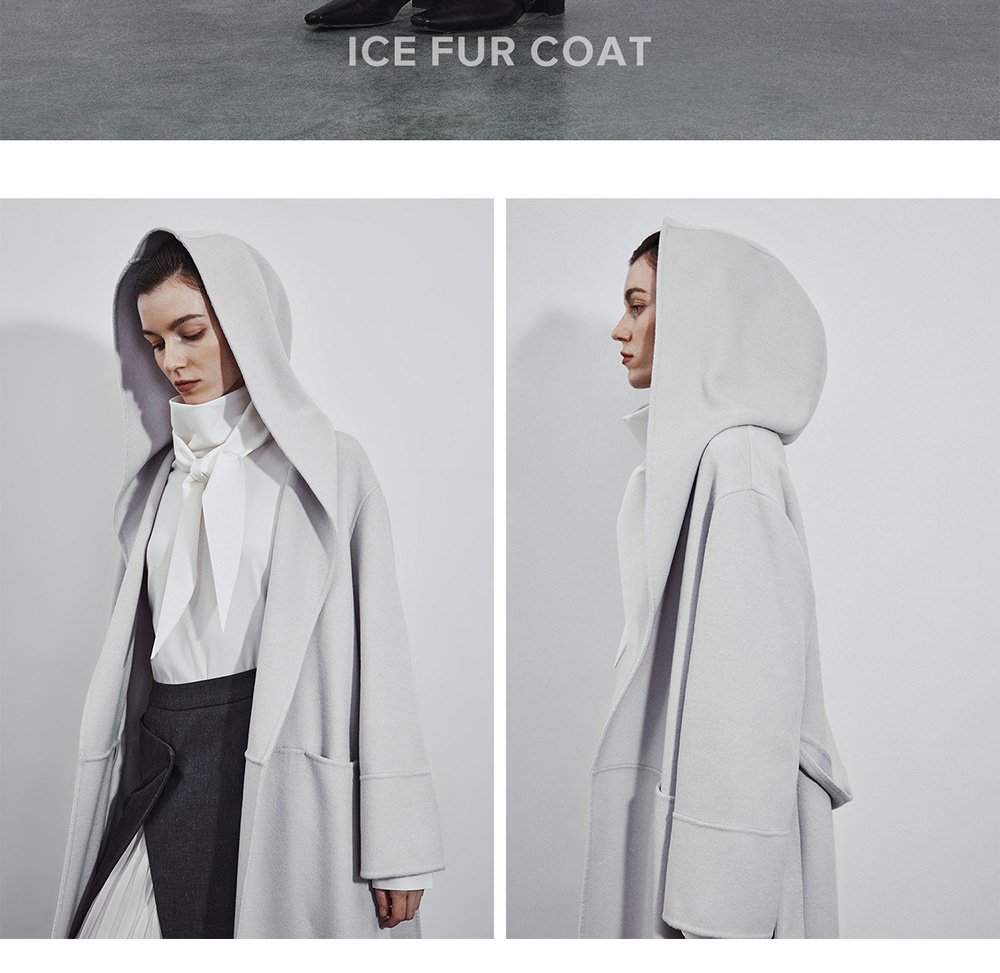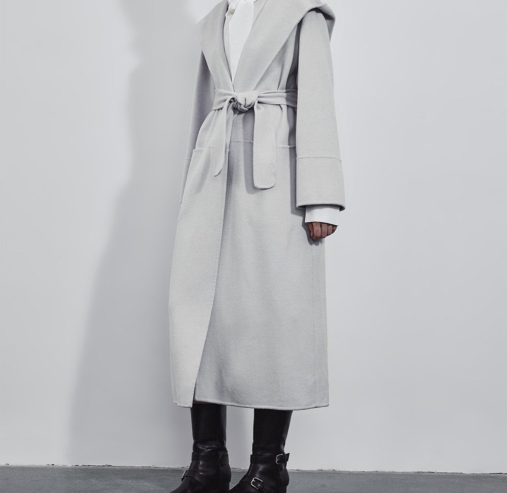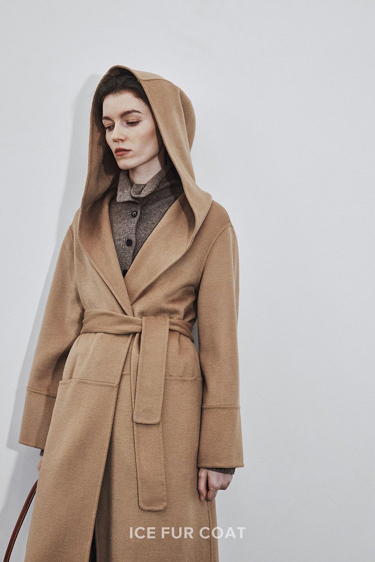 100% Wool 2025 Fall New Double-Face Hooded Belted Extra-Long Coat for Women – Premium Look