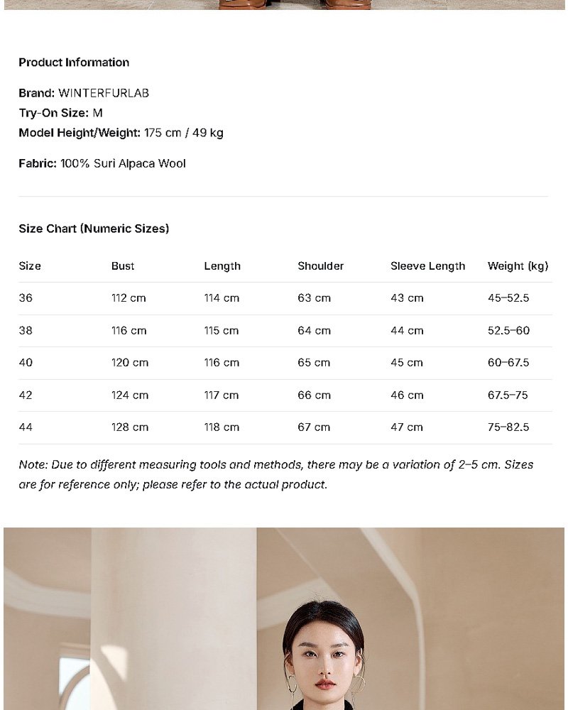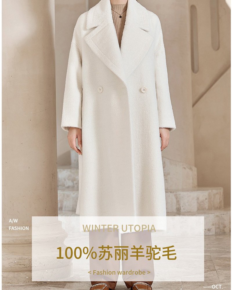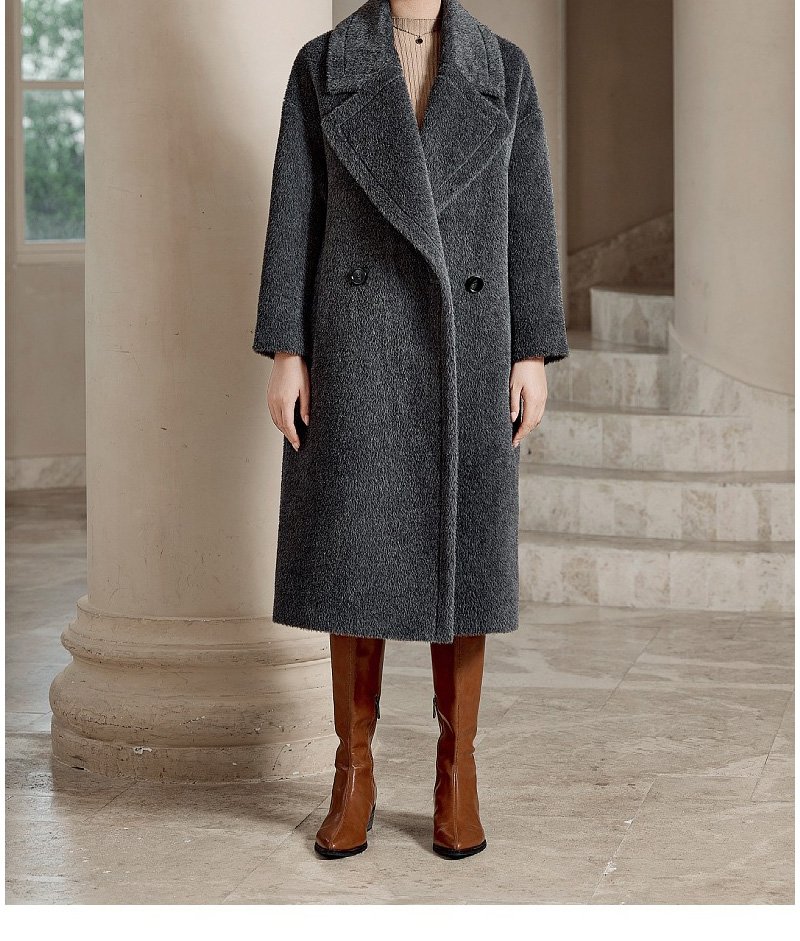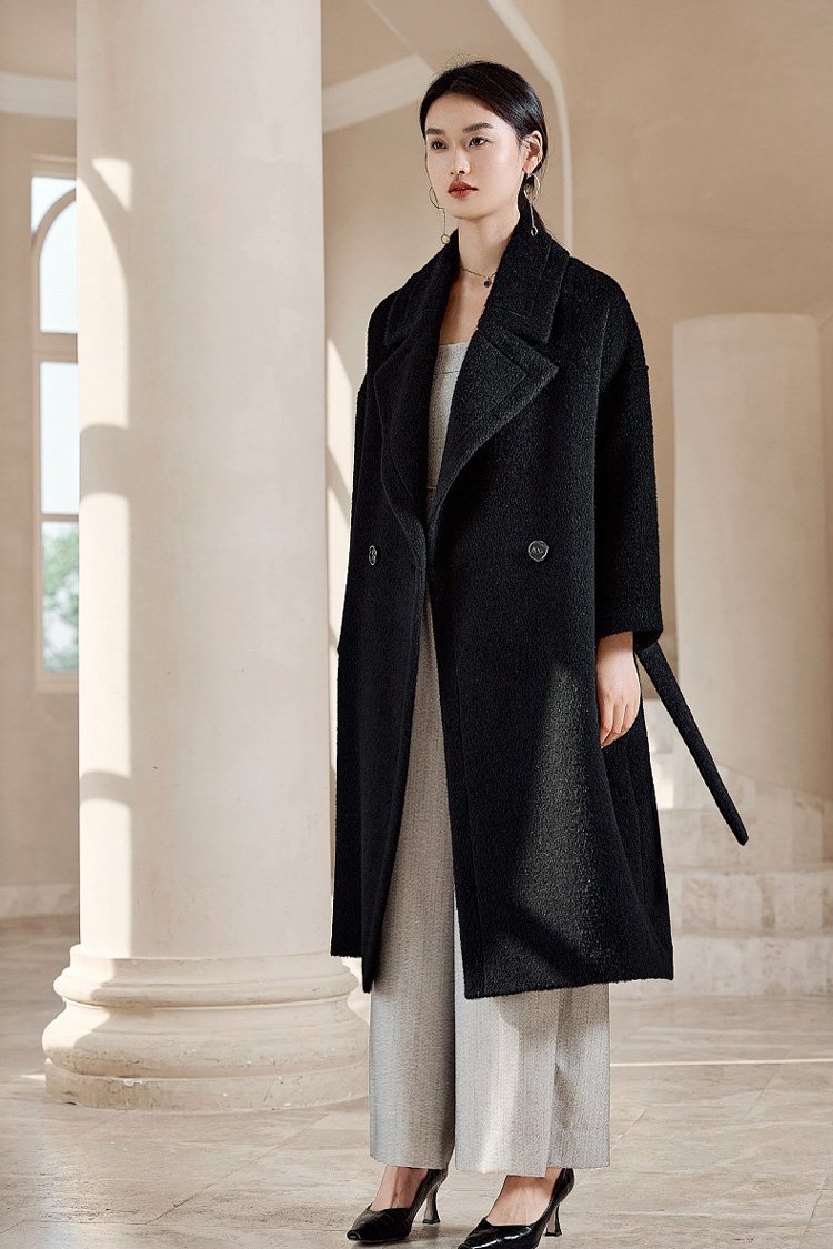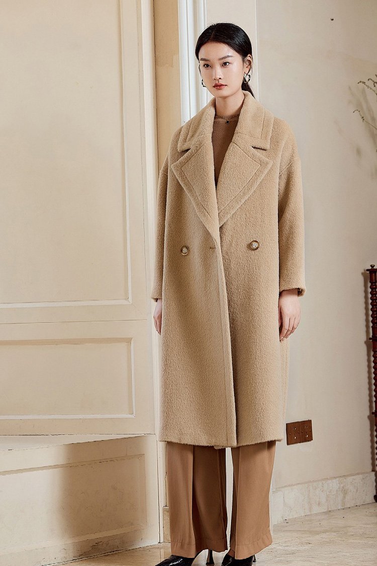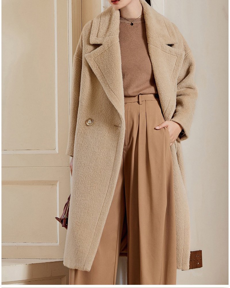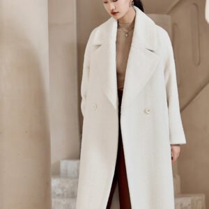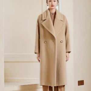 100% Wool Women’s Coat Suri Alpaca Long Coat, Oversized Silhouette, Loose Fit, Winter High-Quality Wool Overcoat