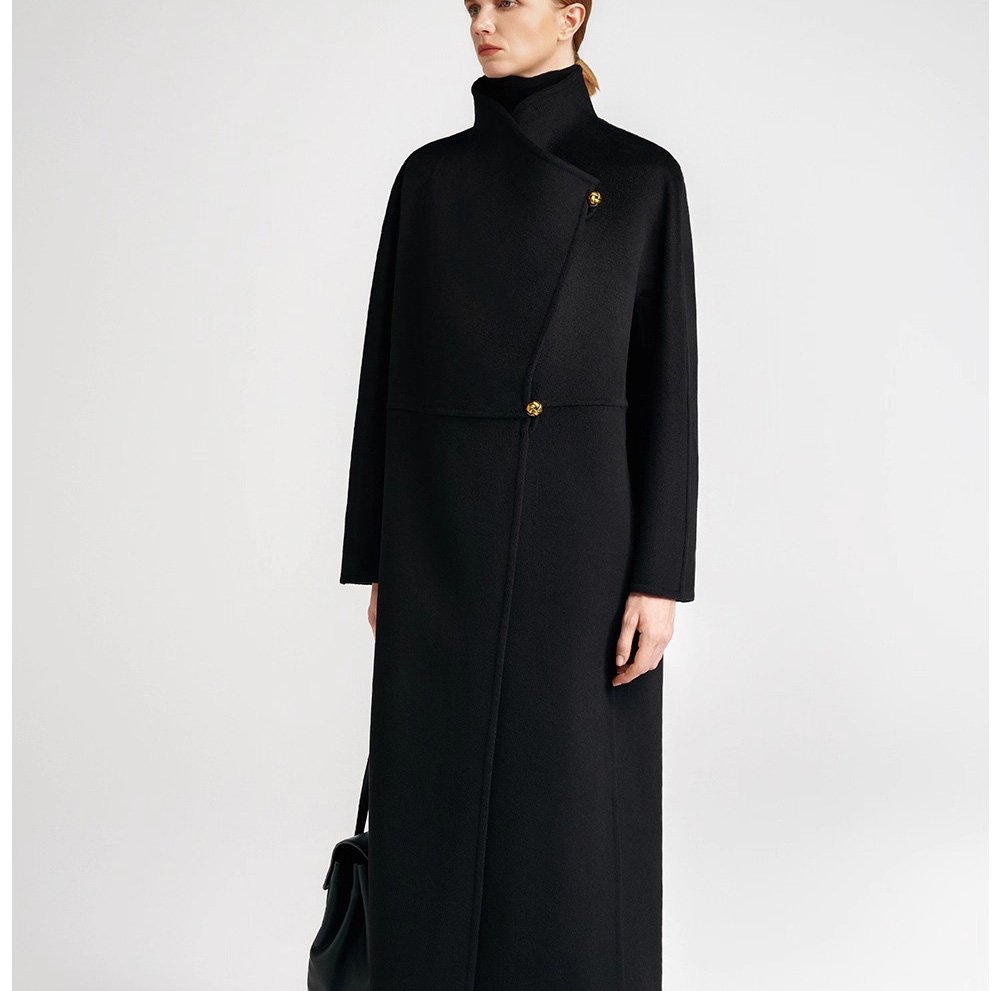 19.7% Cashmere, 80.3% Merino Wool French-Inspired Luxury Double-Face Long Coat for Women