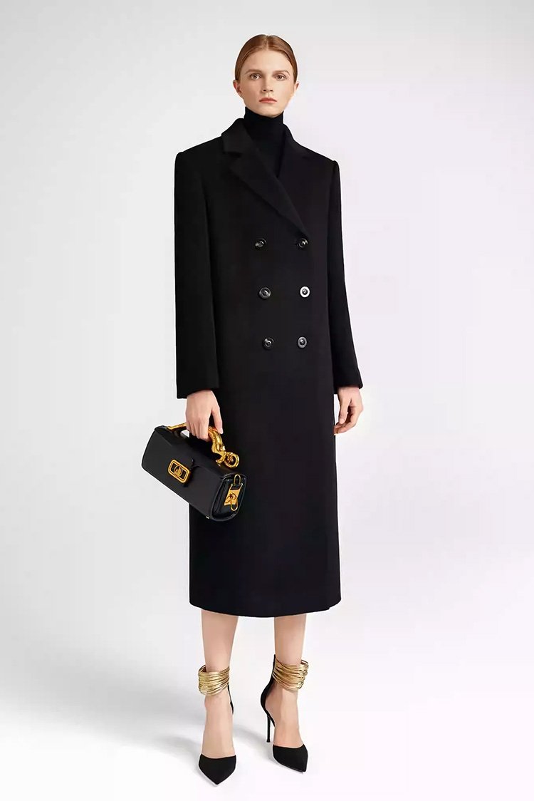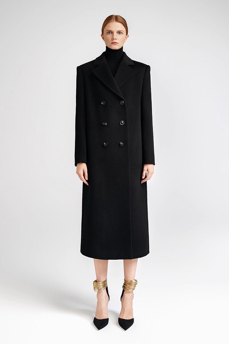 19.7% Cashmere, 80.3% Merino Wool Signature Structured-Shoulder Single-Face Double-Breasted Coat