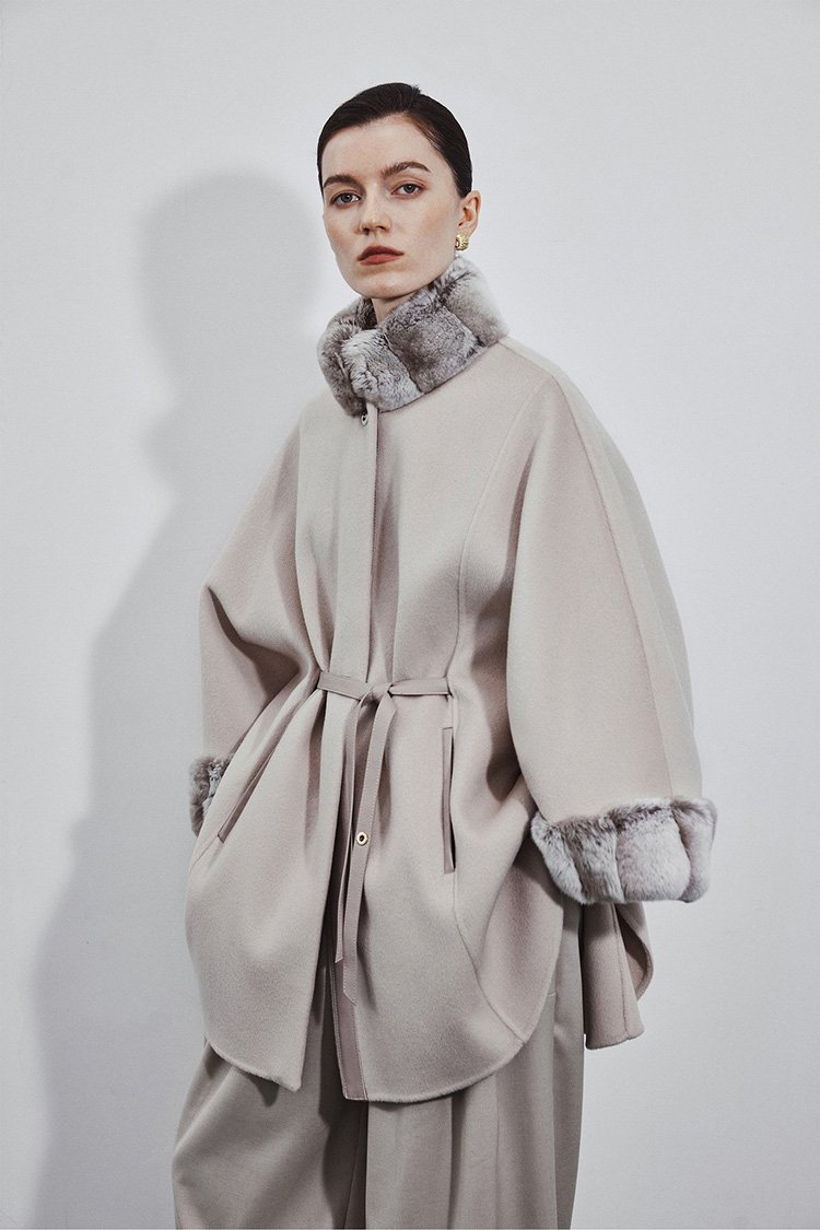 2025 Fall/Winter New LP Double-Face Cashmere Cape Coat – Rex Rabbit Fur Trim, Elegant Lady Style