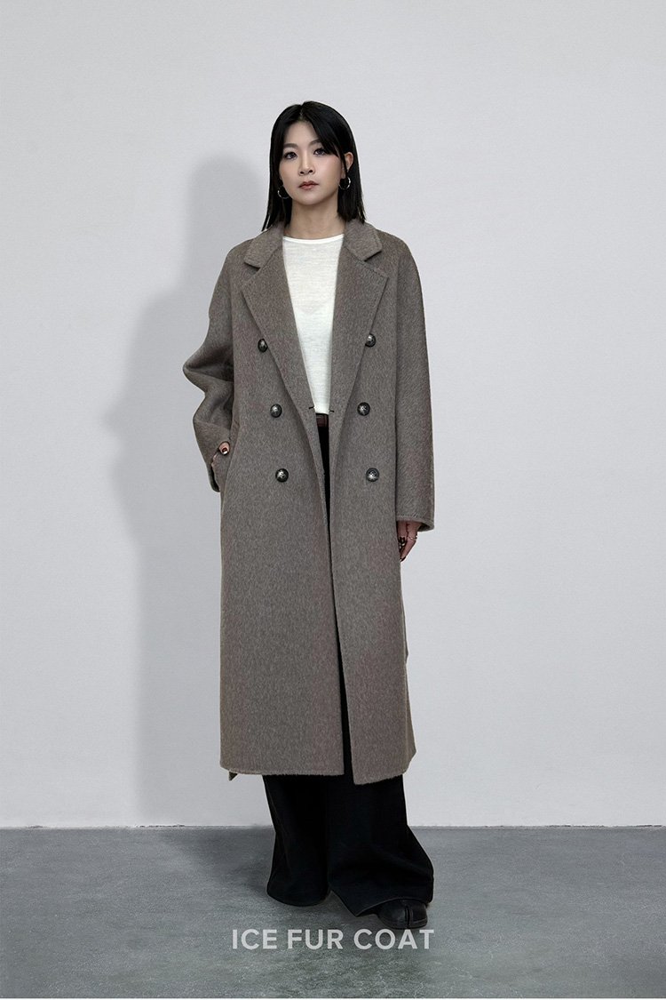 2025 Fall/Winter New Suri Alpaca & Sheep Wool Double-Face Extra-Long Double-Breasted Coat (Women’s)