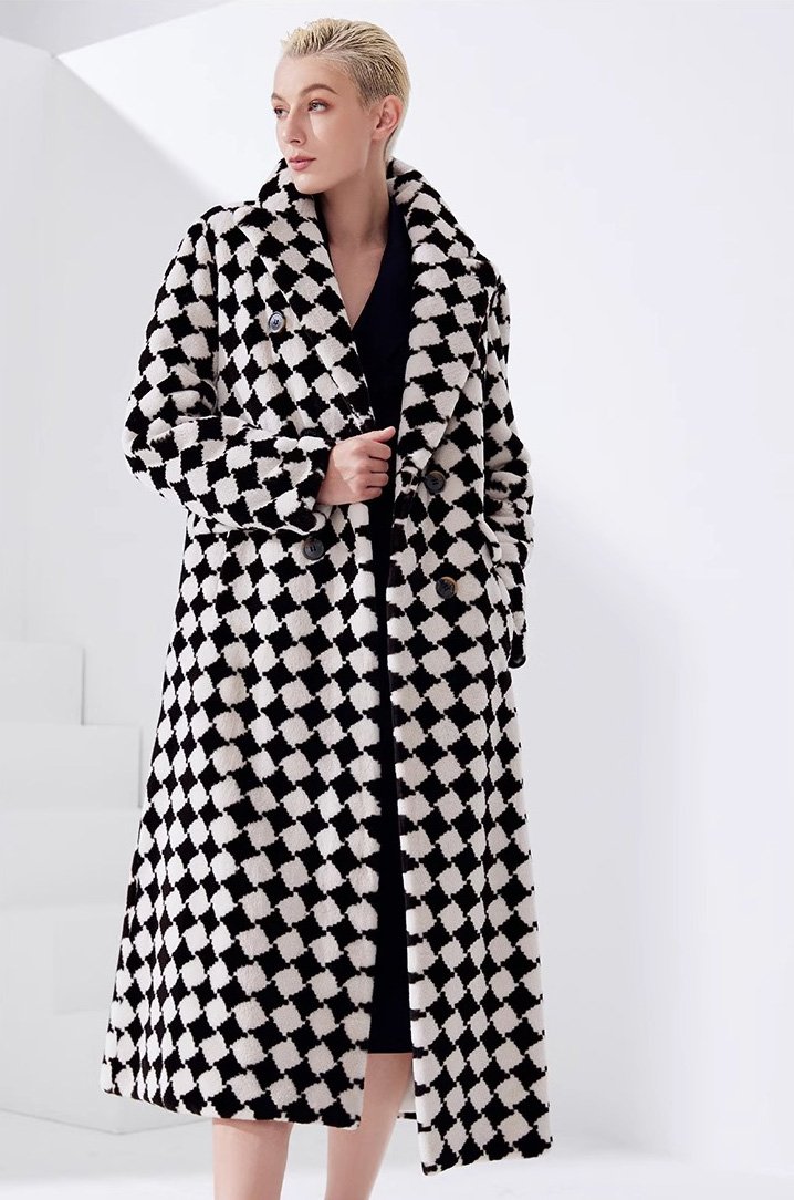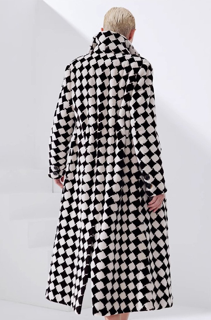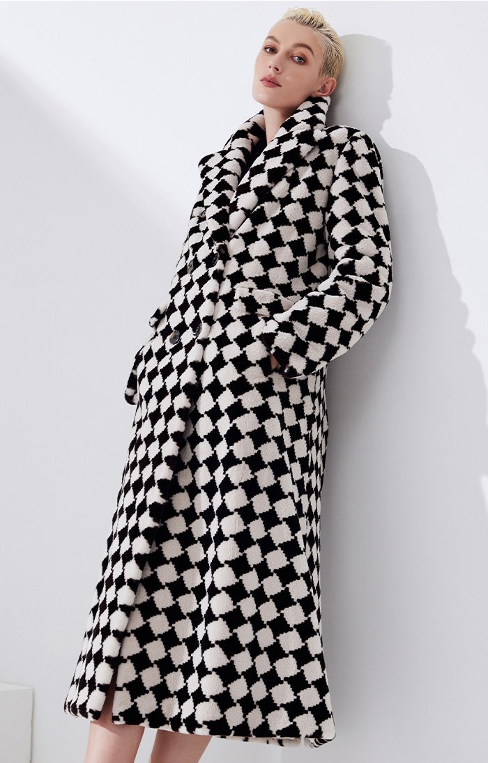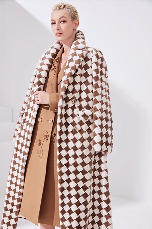 2025 Luxury Mink Fur Coat for Women – Classic Checkered Pattern