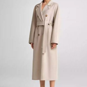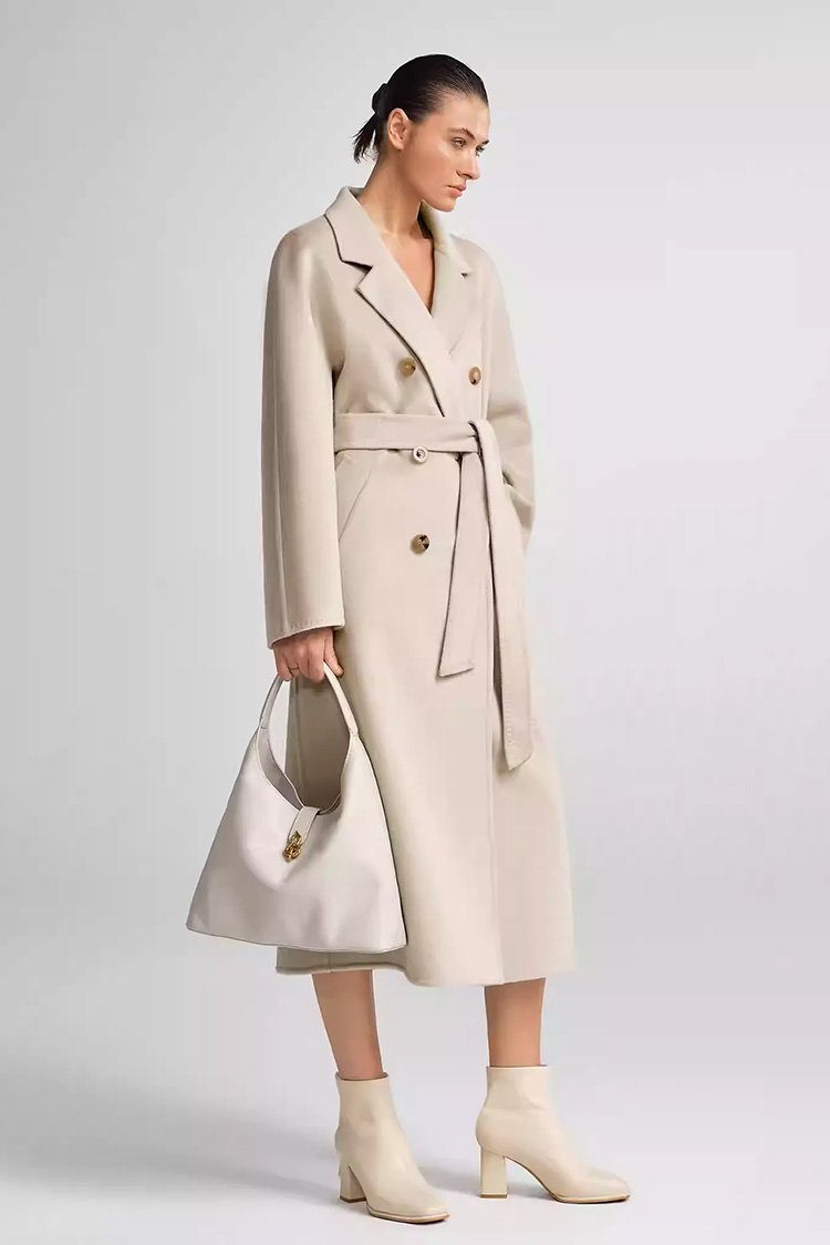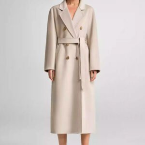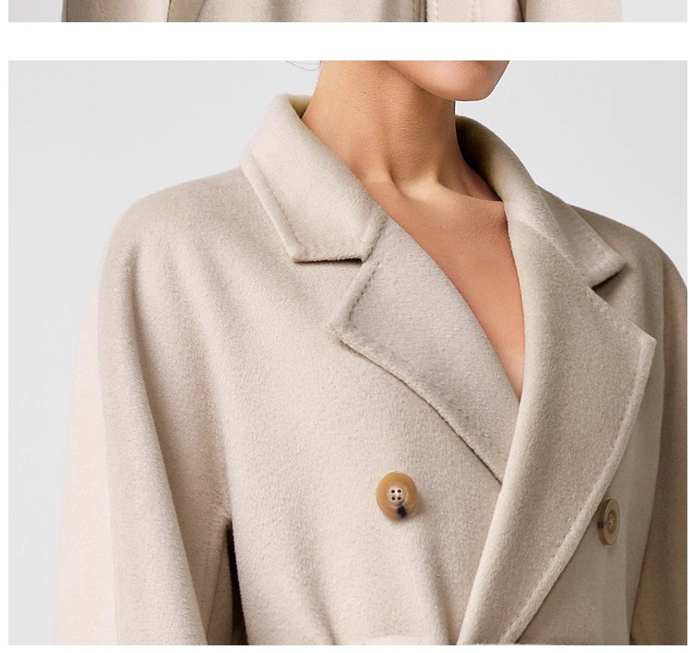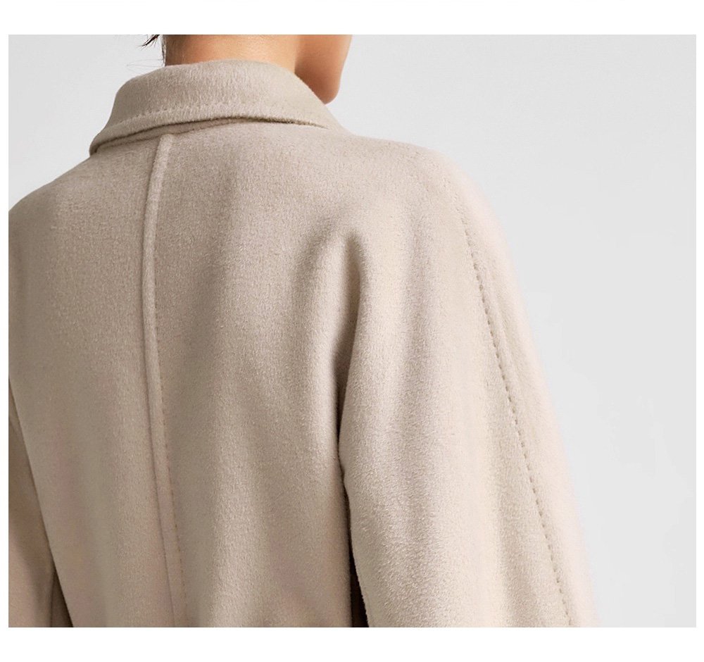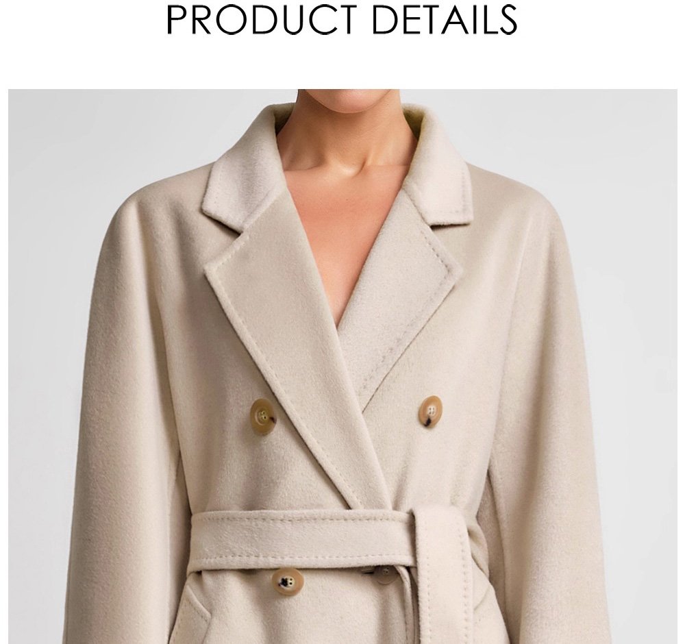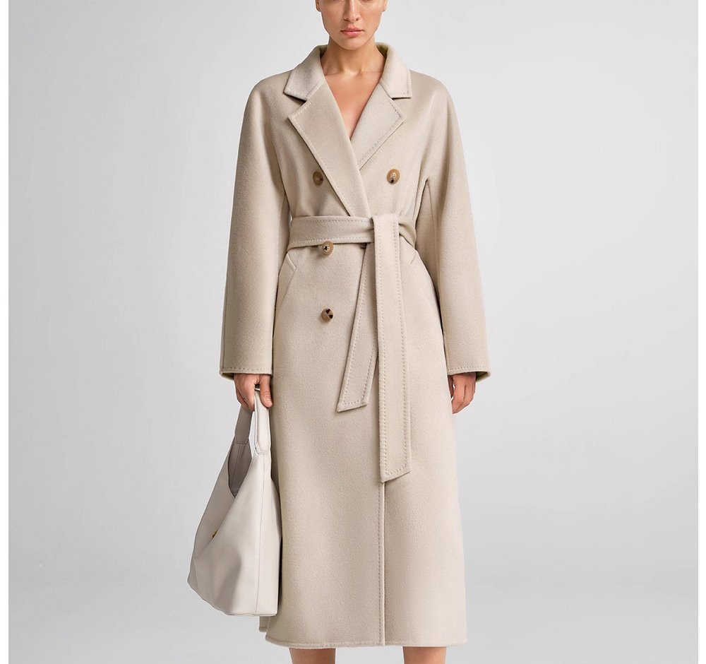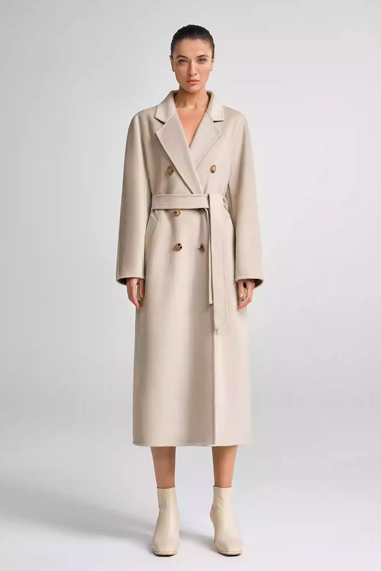 30% Cashmere, 70% Merino Wool Double-Face Long Double-Breasted Coat for Women – Beige