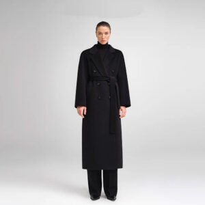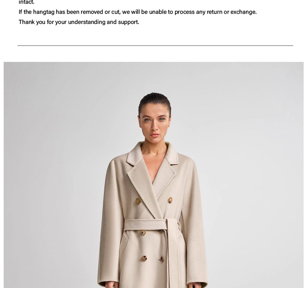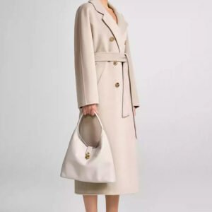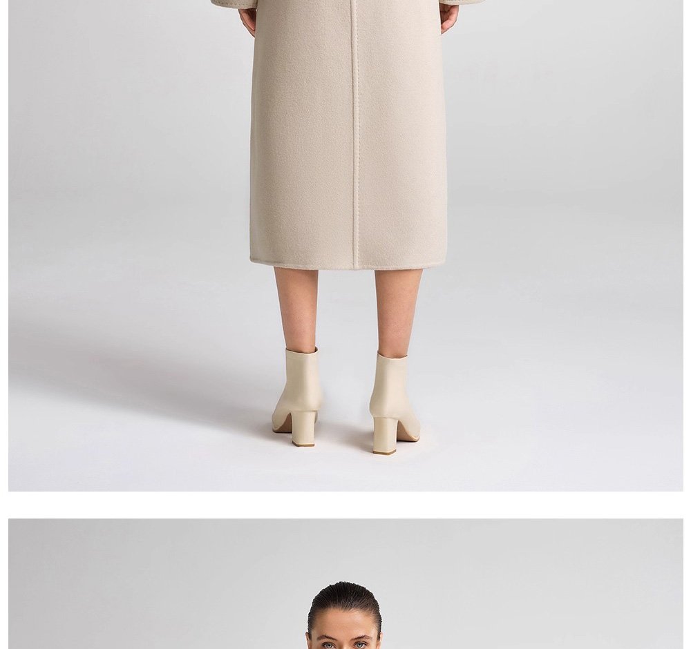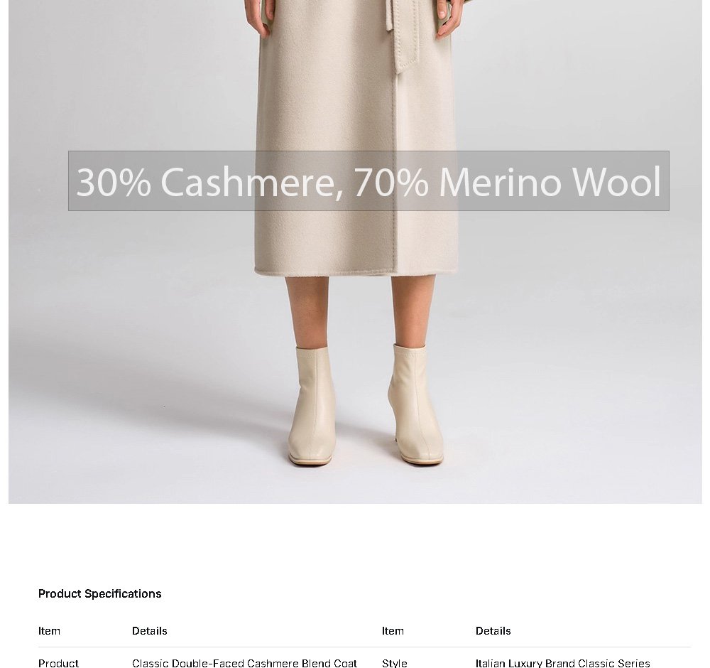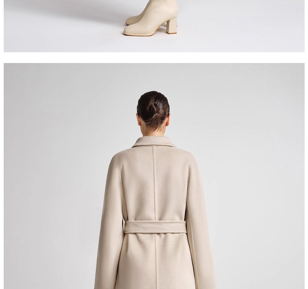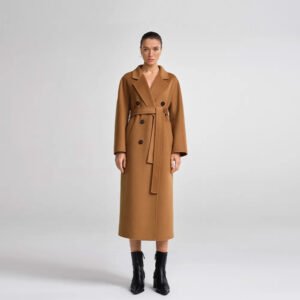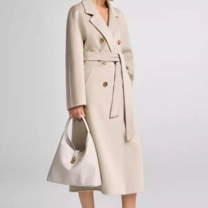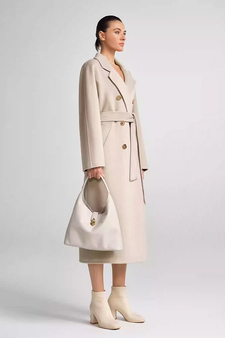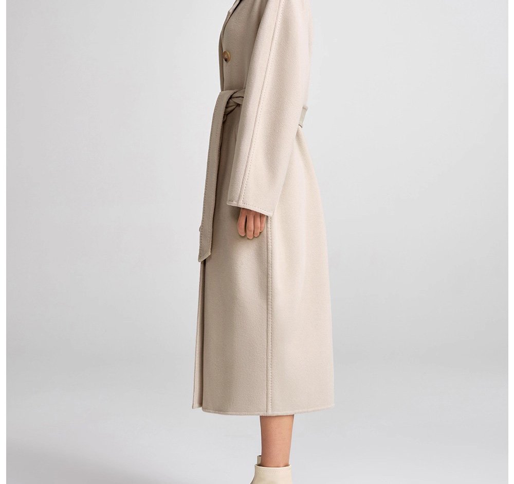 30% Cashmere, 70% Merino Wool Double-Face Long Double-Breasted Coat for Women – Beige