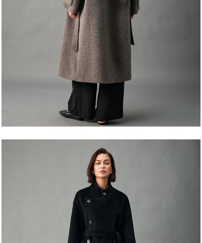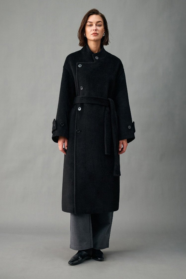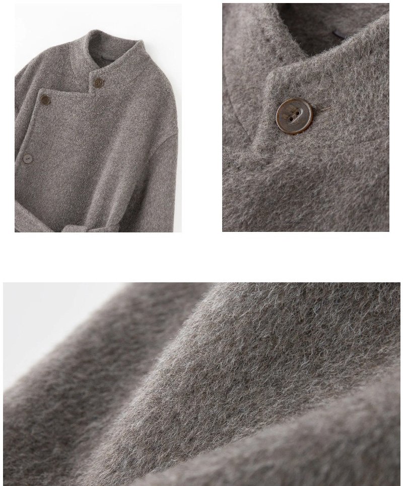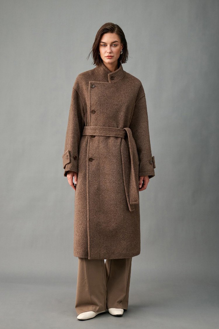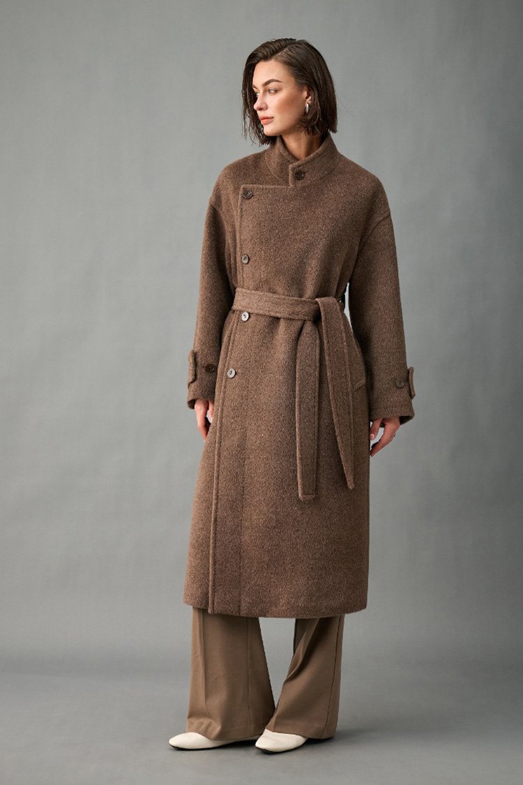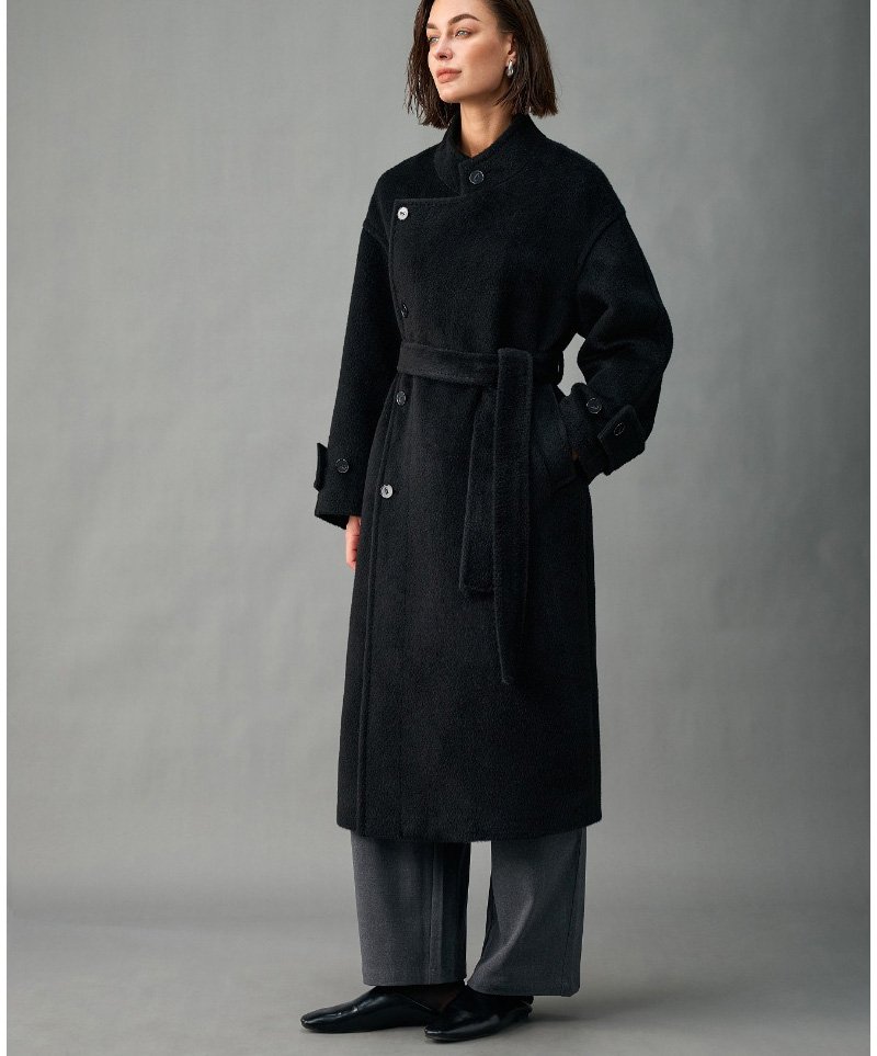 33% Wool, 67% Alpaca Wool Thick & Warm Fall/Winter New Coat for Women – Peruvian Alpaca, Asymmetric Front, Belted