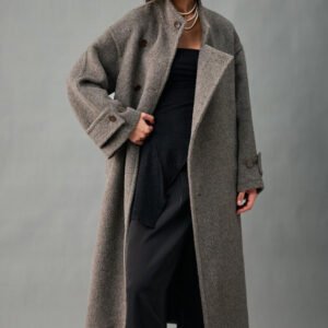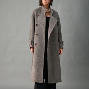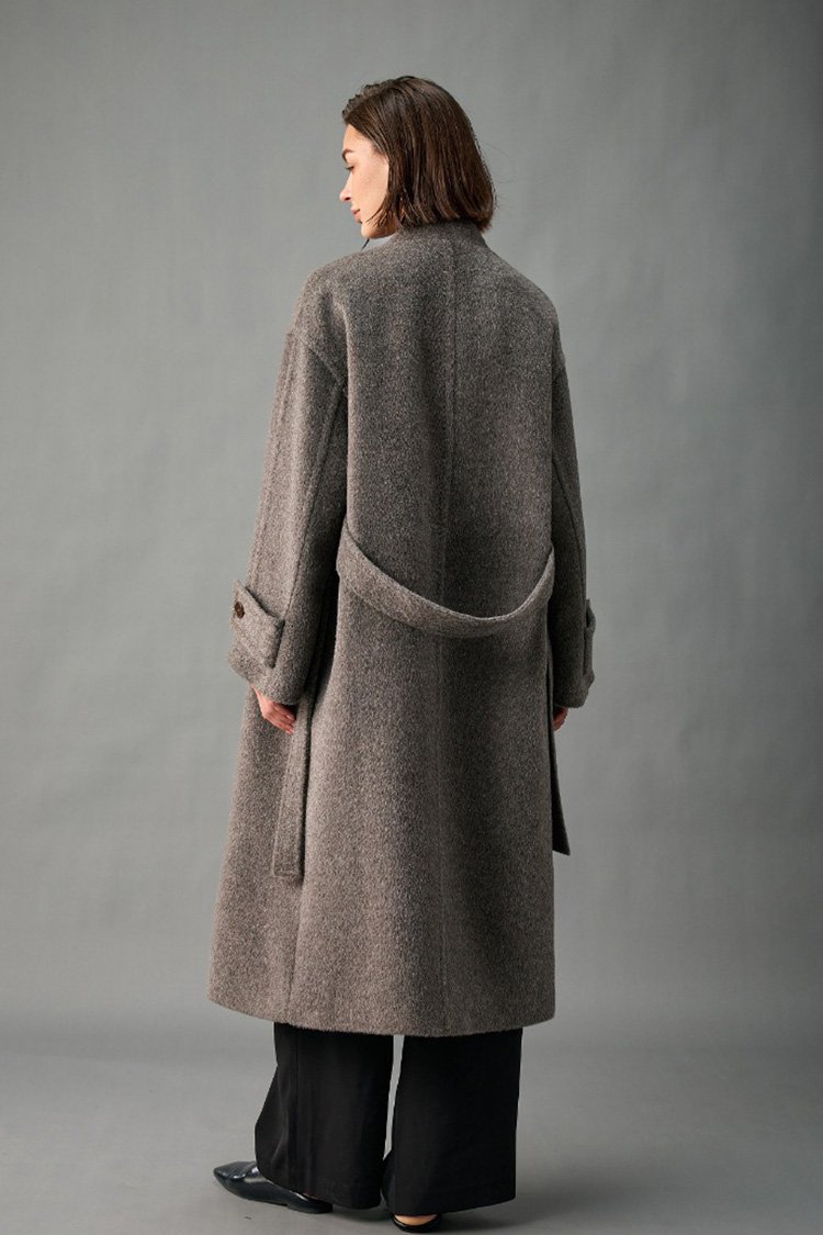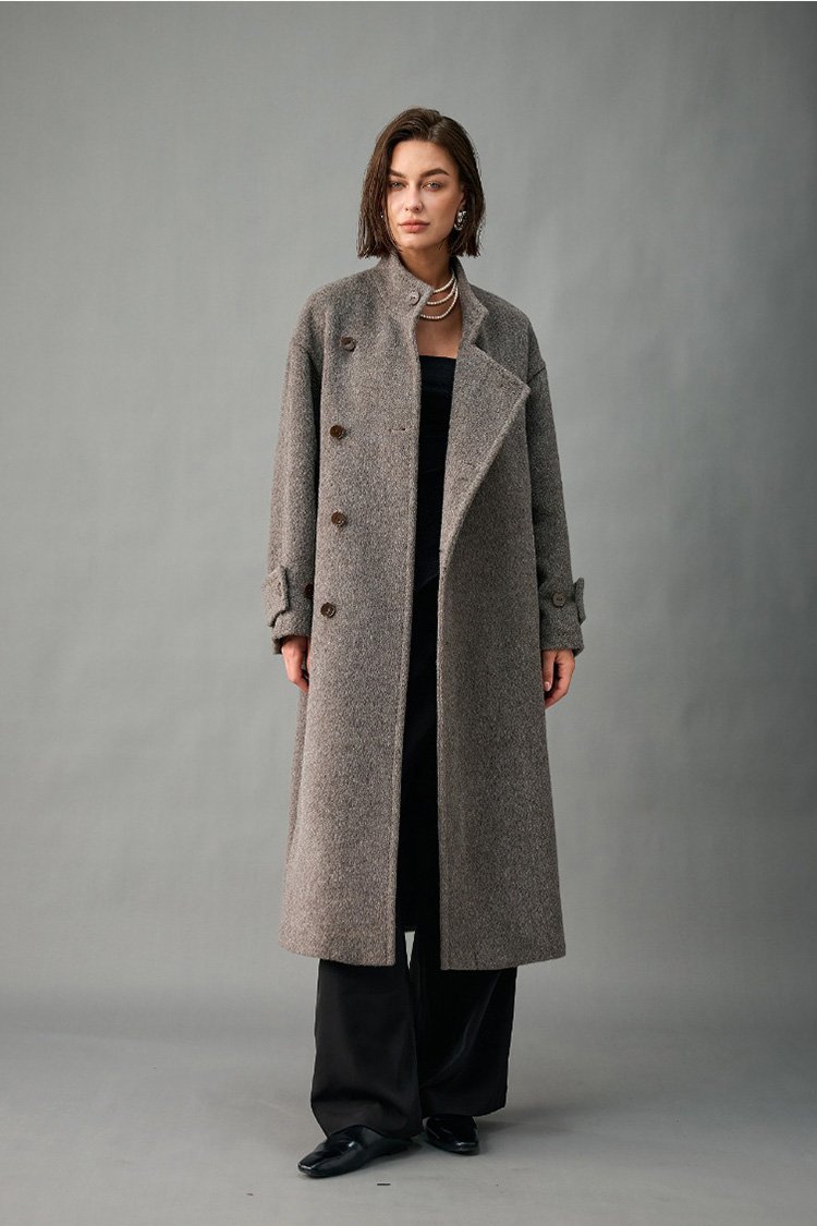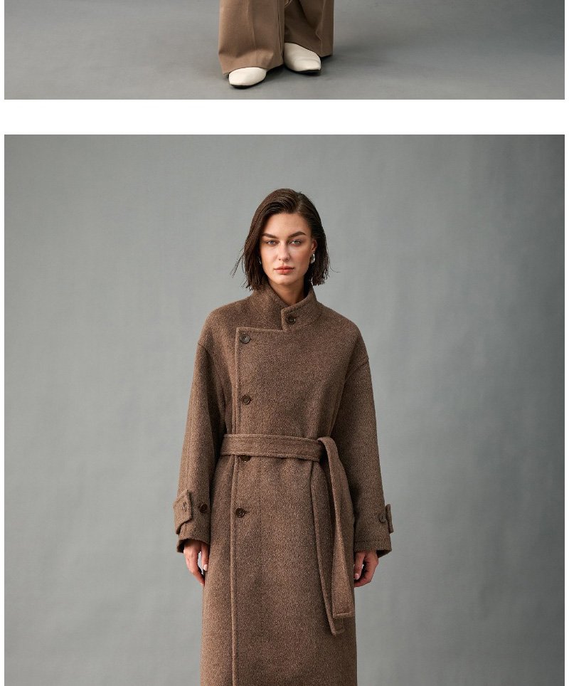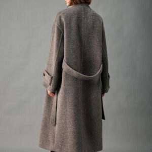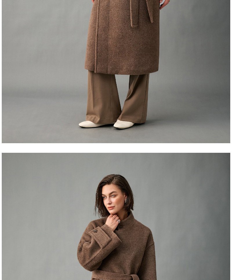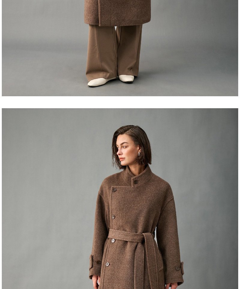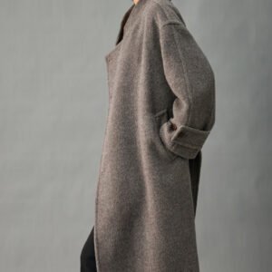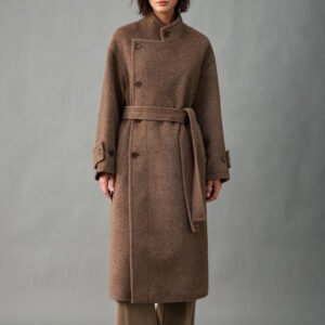 33% Wool, 67% Alpaca Wool Thick & Warm Fall/Winter New Coat for Women – Peruvian Alpaca, Asymmetric Front, Belted