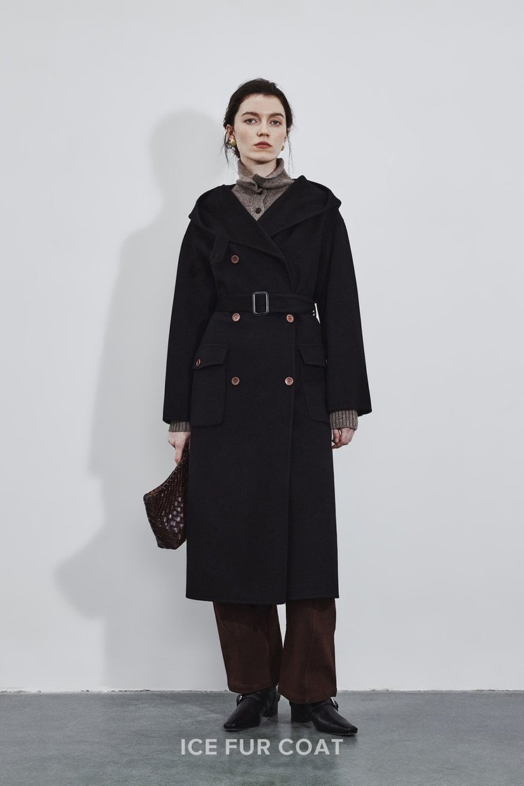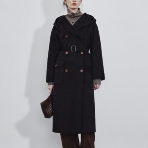 5% Cashmere, 95% Wool 2025 Fall/Winter New Double-Face Extra-Long Coat for Women – Hooded, Double-Breasted, Belted