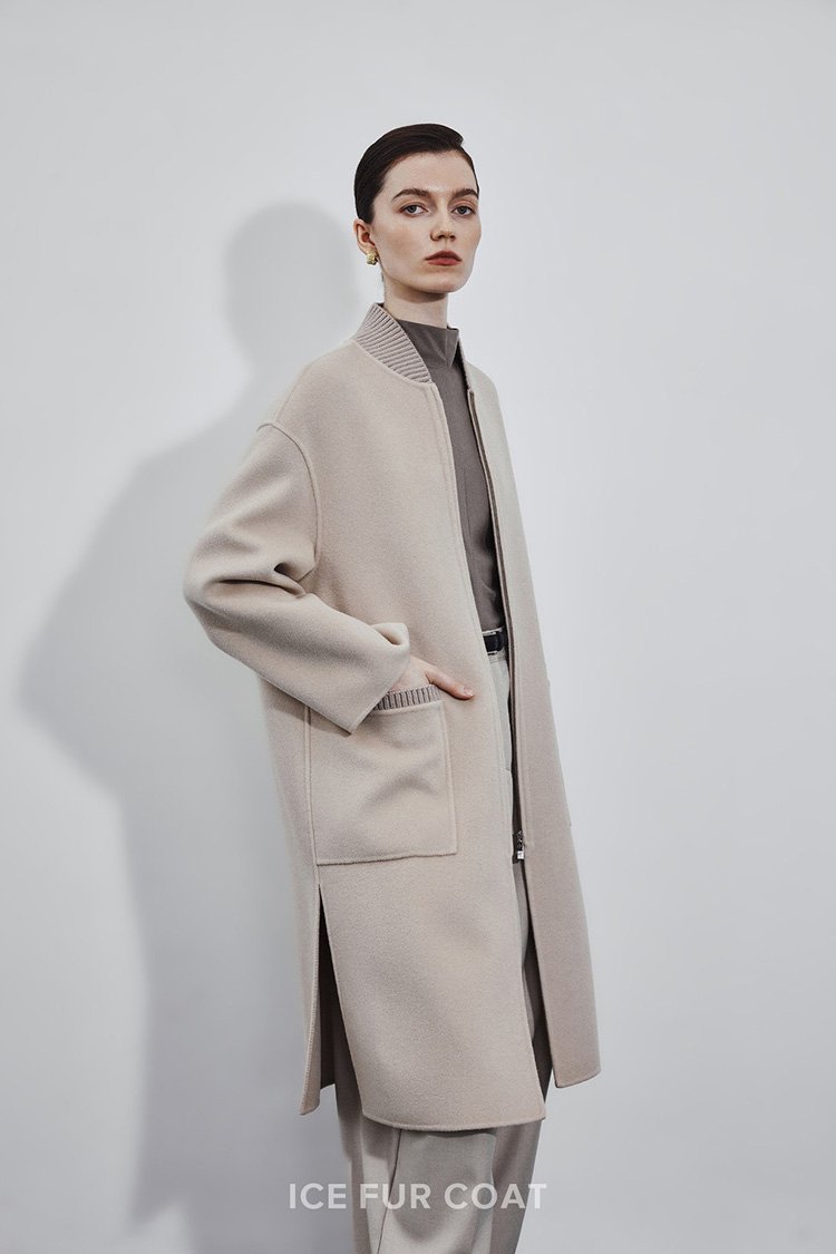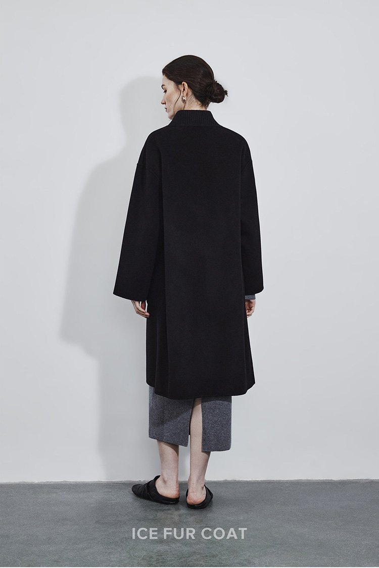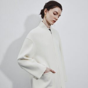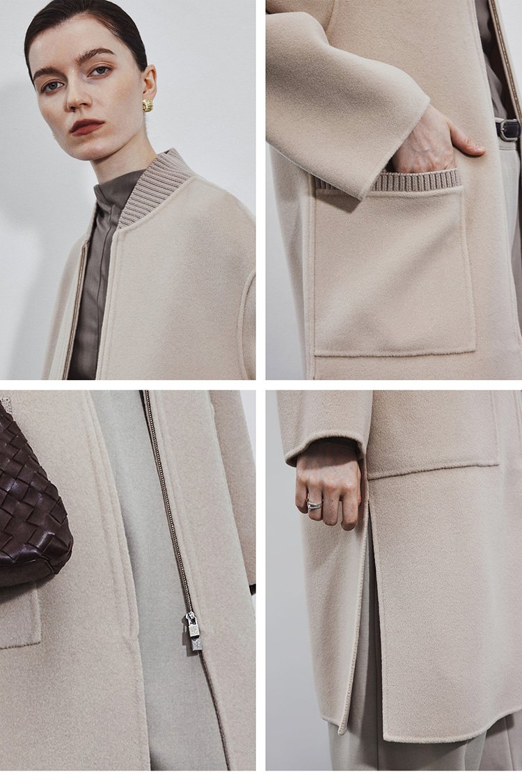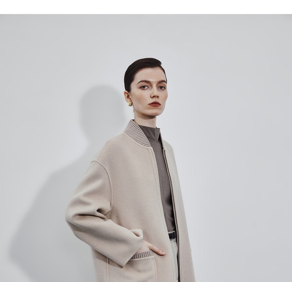 5% Cashmere / 95% Wool Double-Face Extra-Long Coat – Baseball Collar (Women’s)