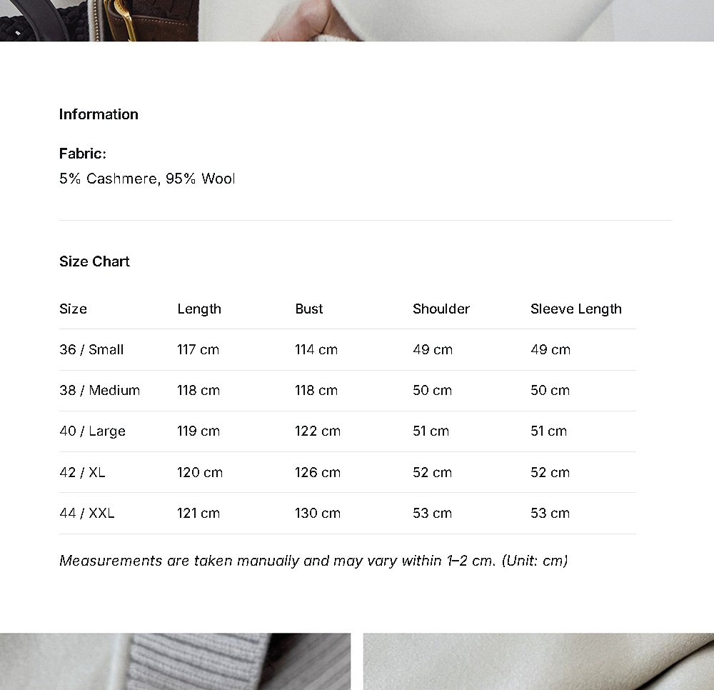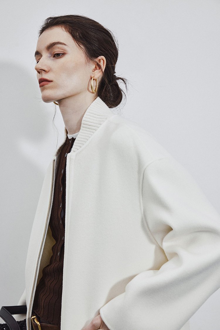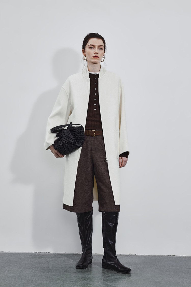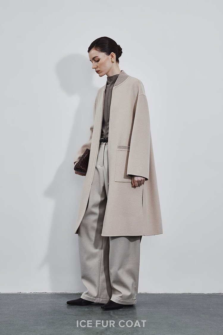 5% Cashmere / 95% Wool Double-Face Extra-Long Coat – Baseball Collar (Women’s)