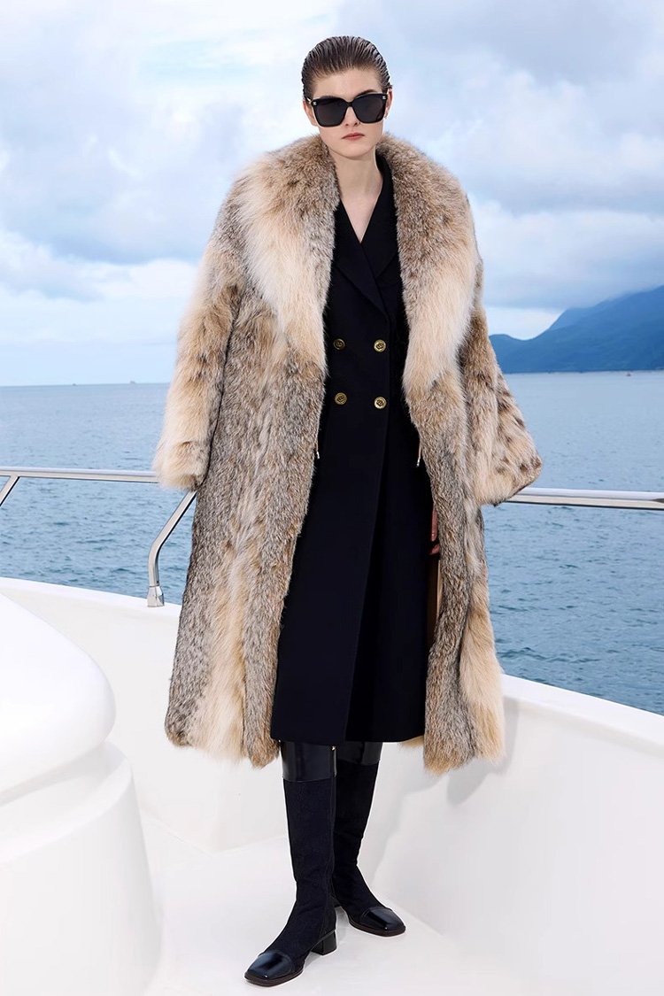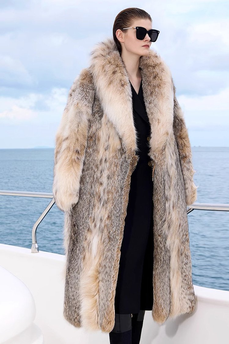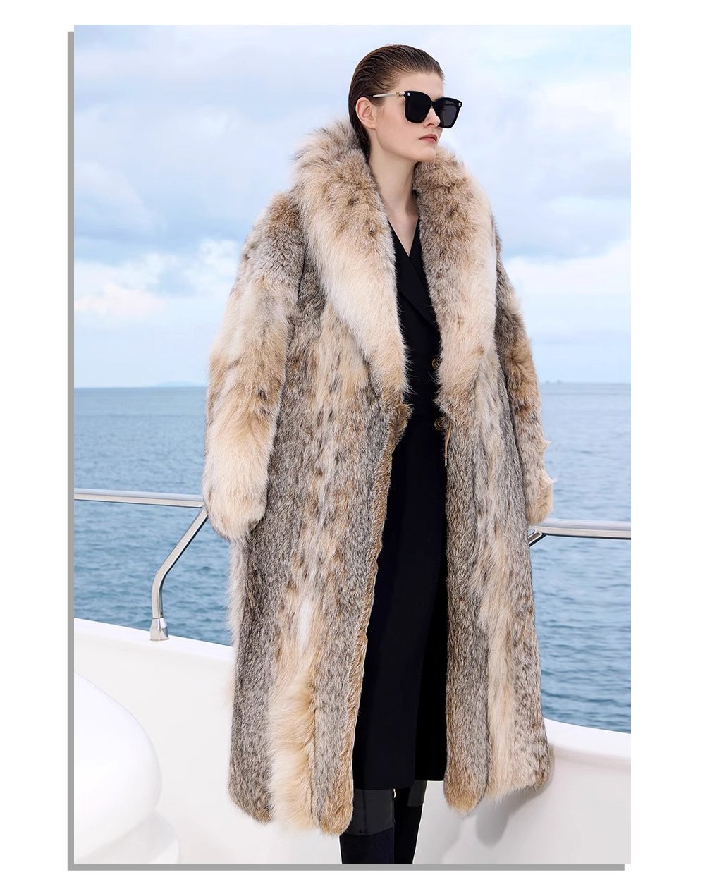 Luxury Rare Natural Color New 2025 Canadian Lynx Fur Coat for Women — Winter Collection