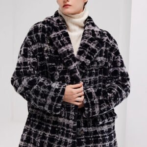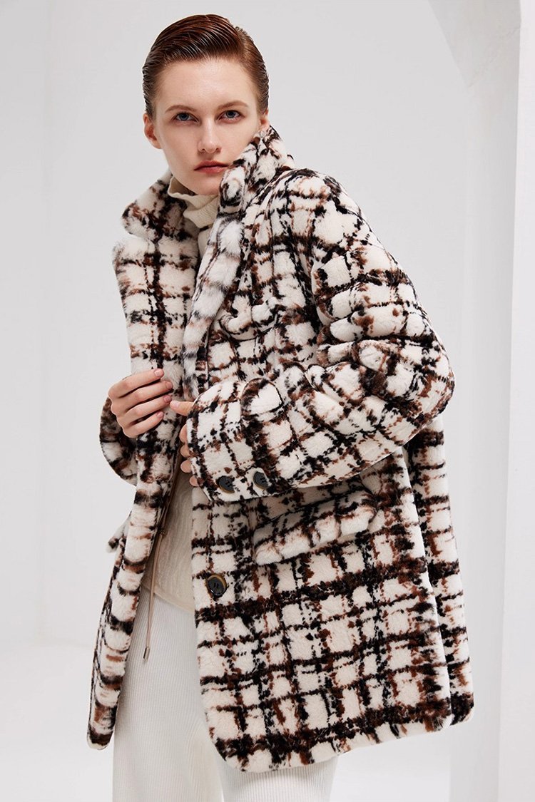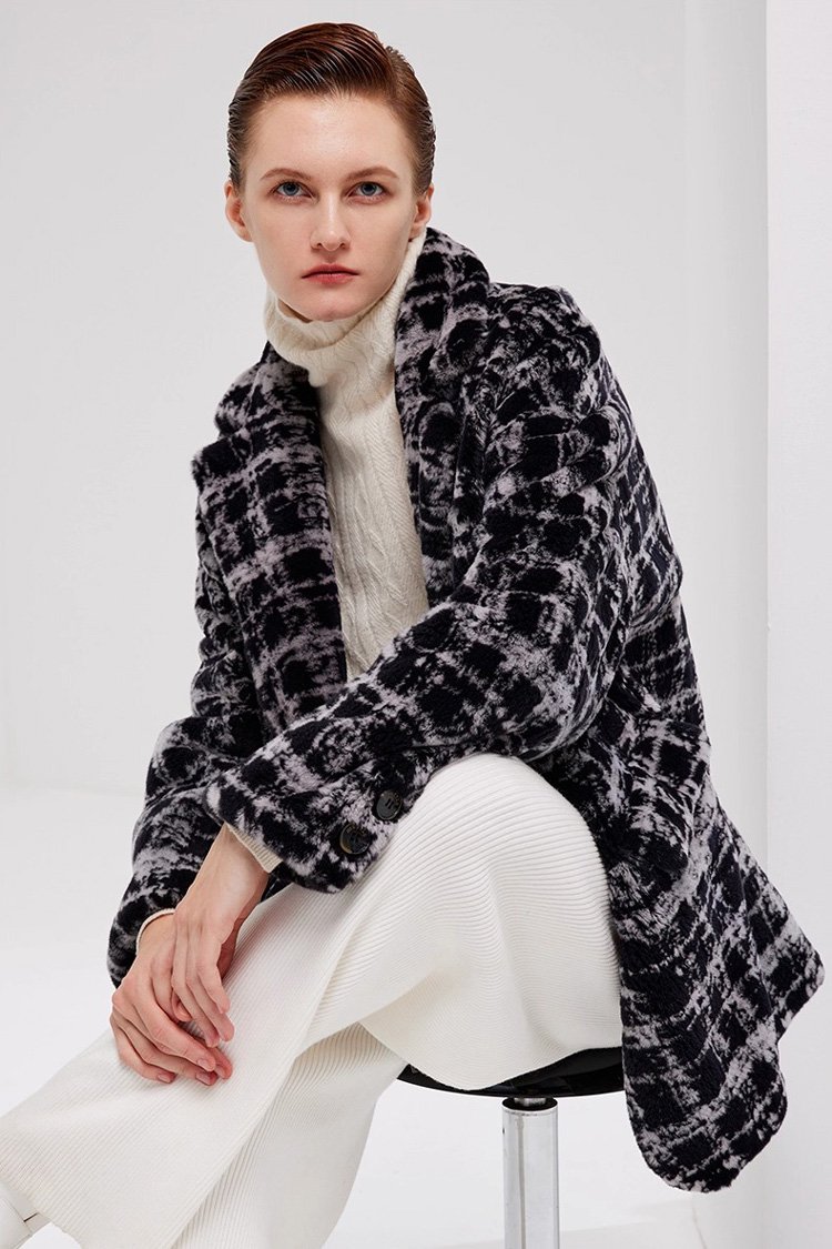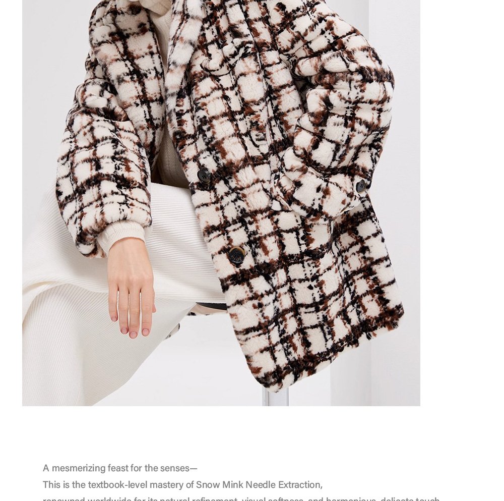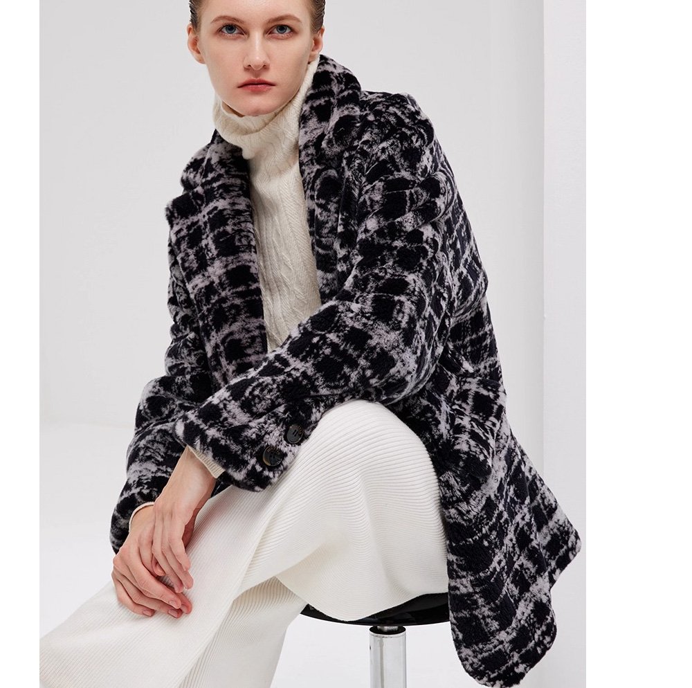 Needle-Pulled Craft Imported Women’s Mink Fur Coat, Fashion Mink Wool Check Pattern, Winter Mink Fur Jacket