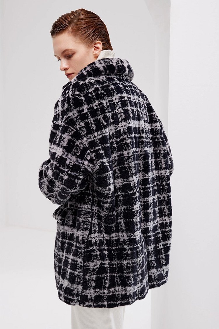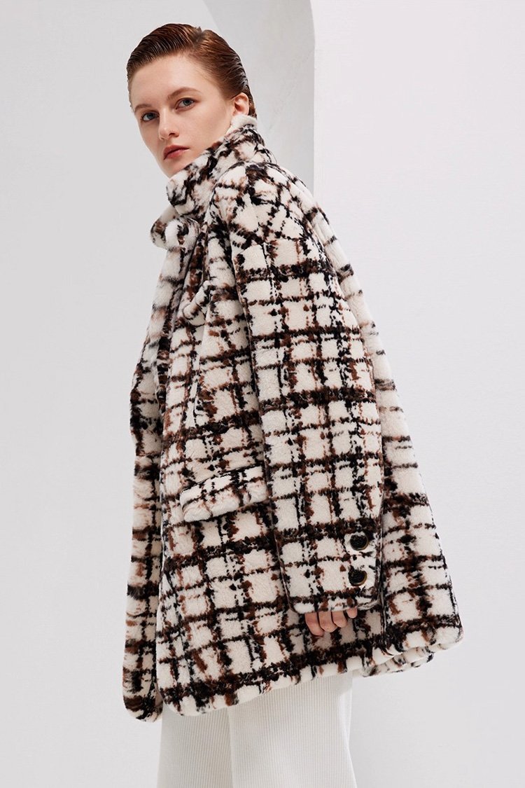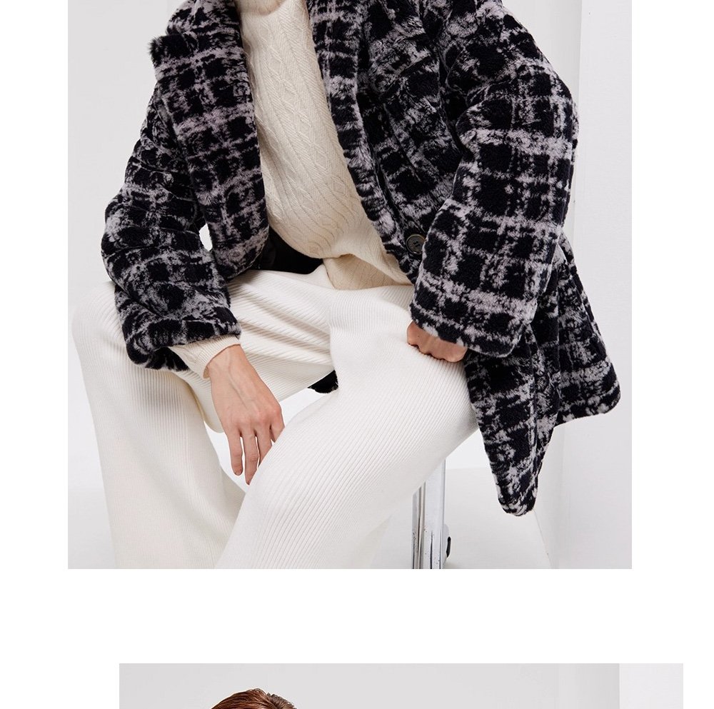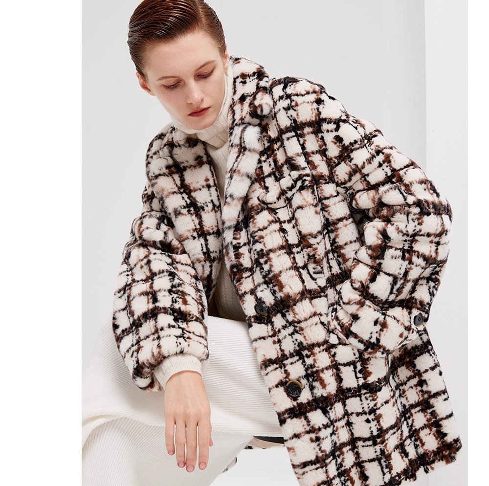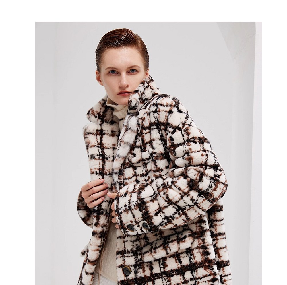 Needle-Pulled Craft Imported Women’s Mink Fur Coat, Fashion Mink Wool Check Pattern, Winter Mink Fur Jacket