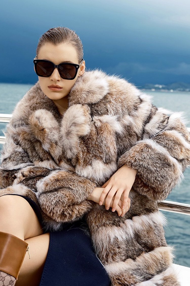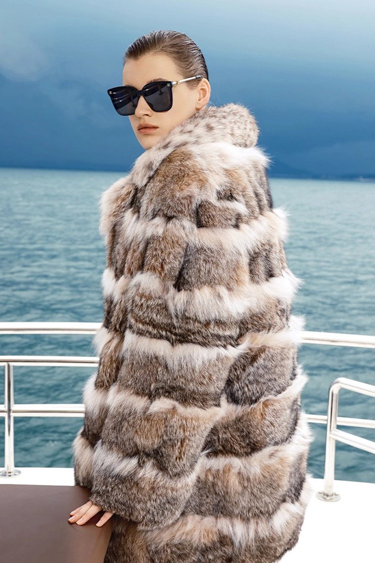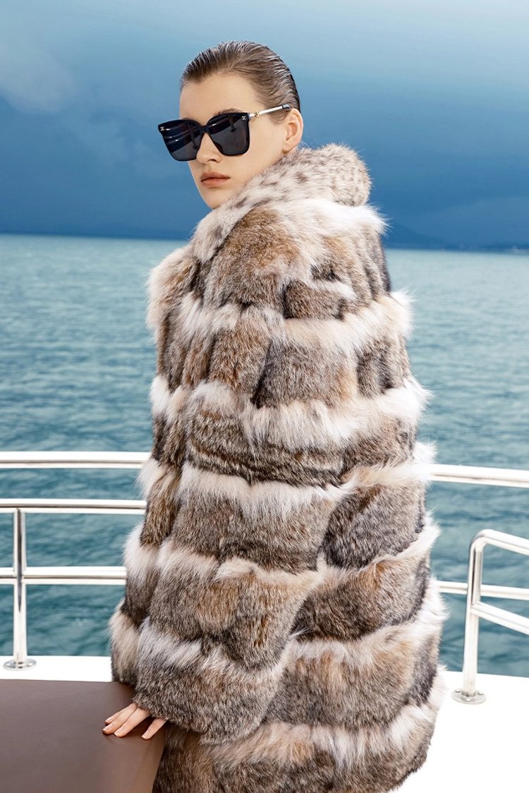 Original 2025 New Imported Canadian Lynx Fur Coat for Women, Fashion Spotted Fur Overcoat