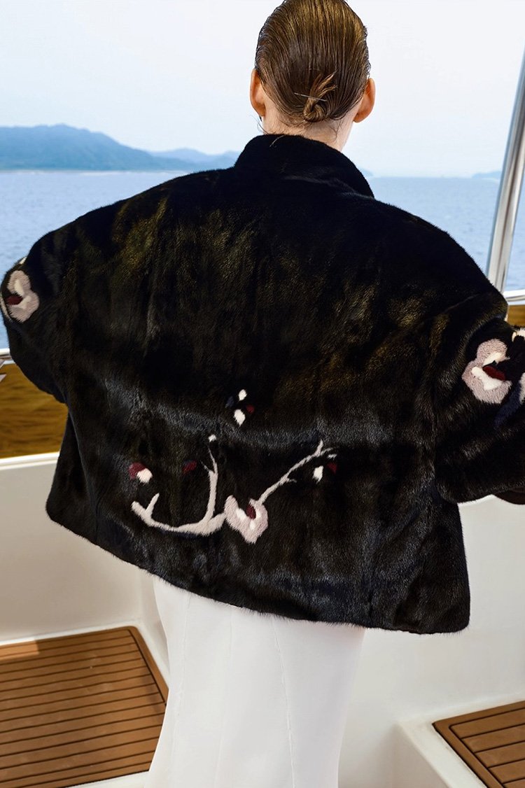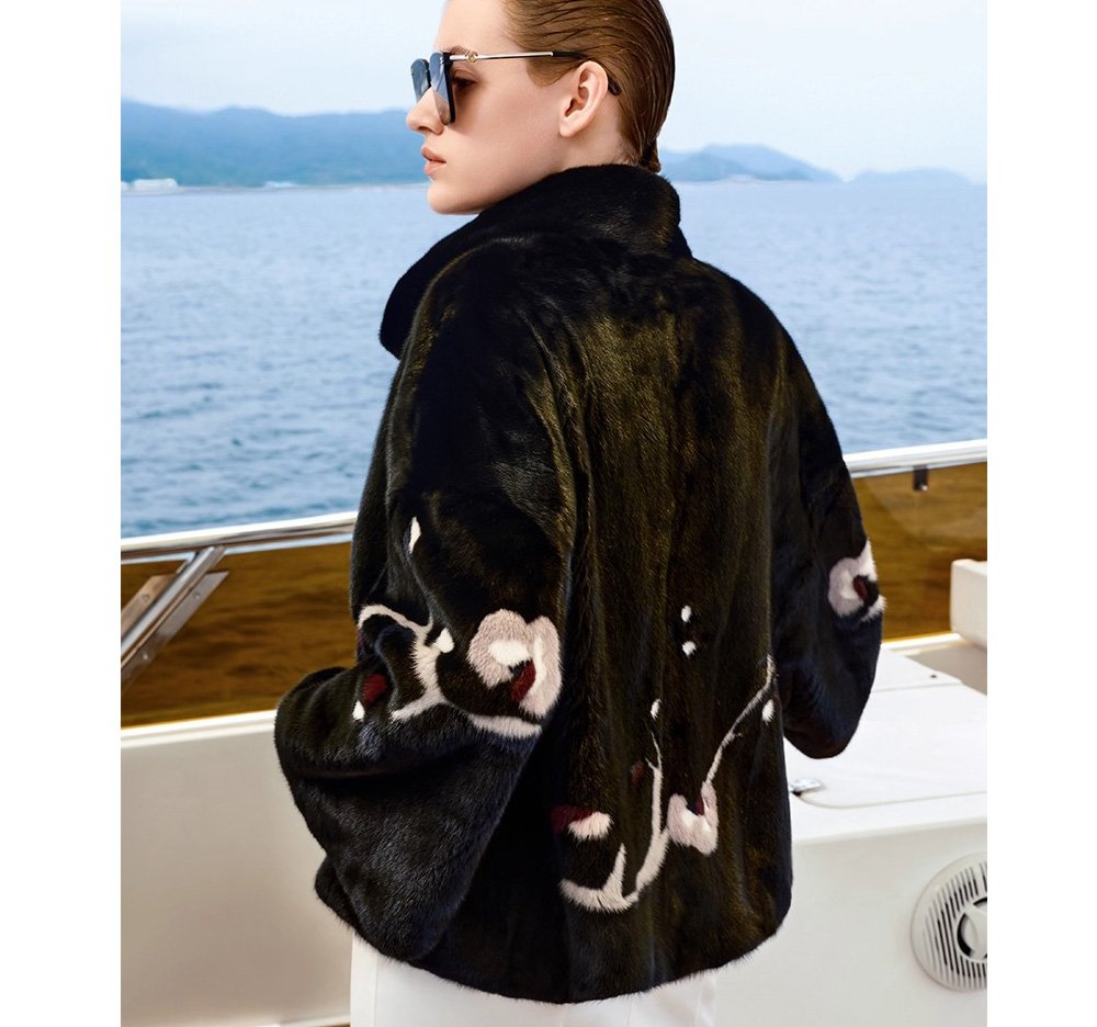 Original Dark Plum Blossom Short Imported Velvet Mink Fur Jacket for Women, 2025 Winter Style