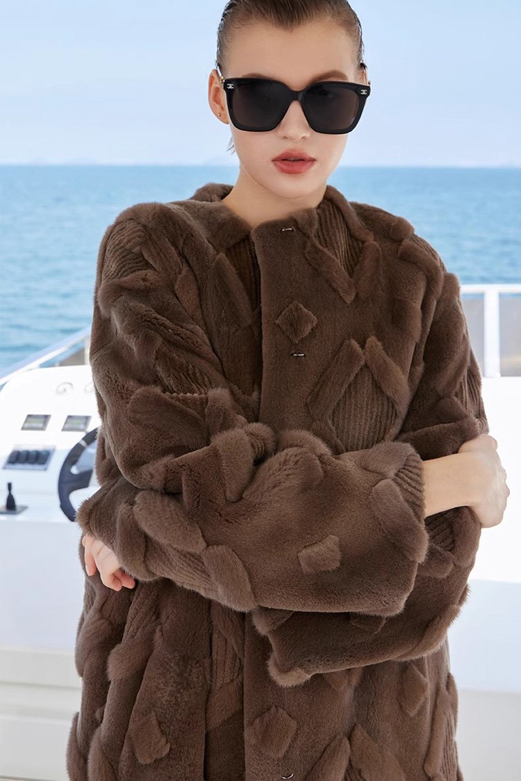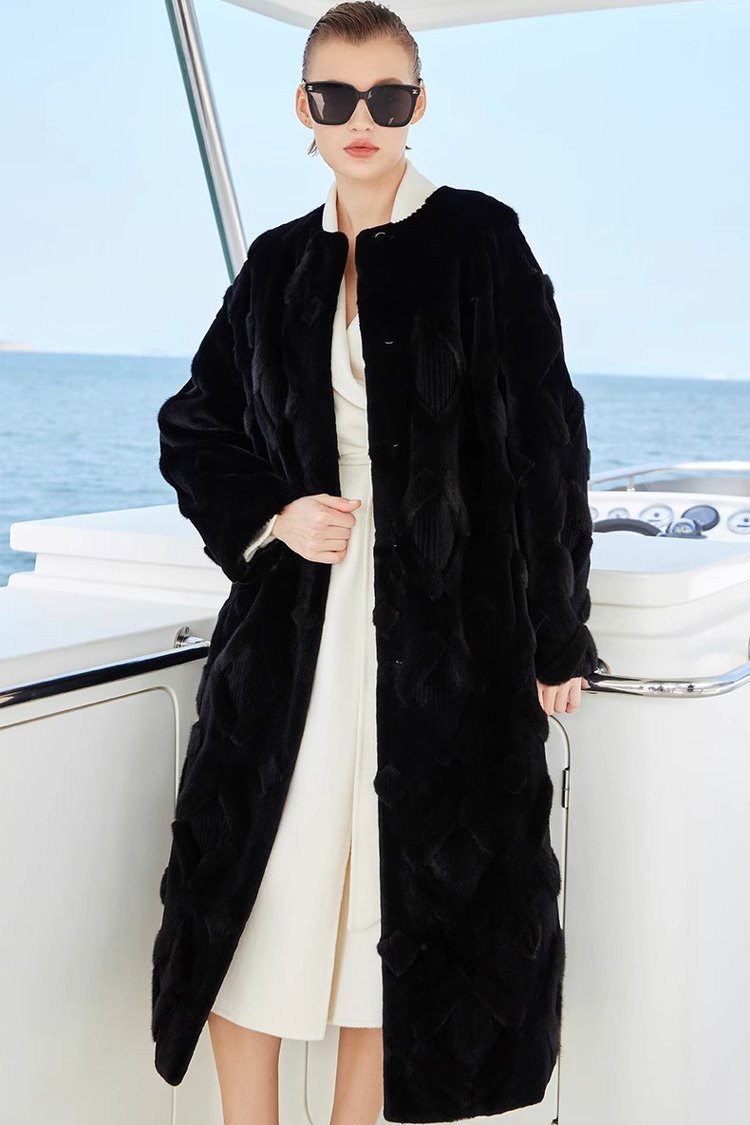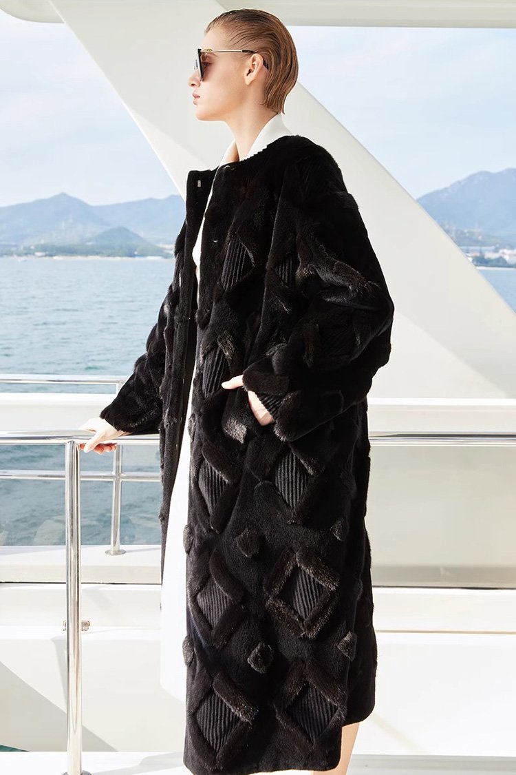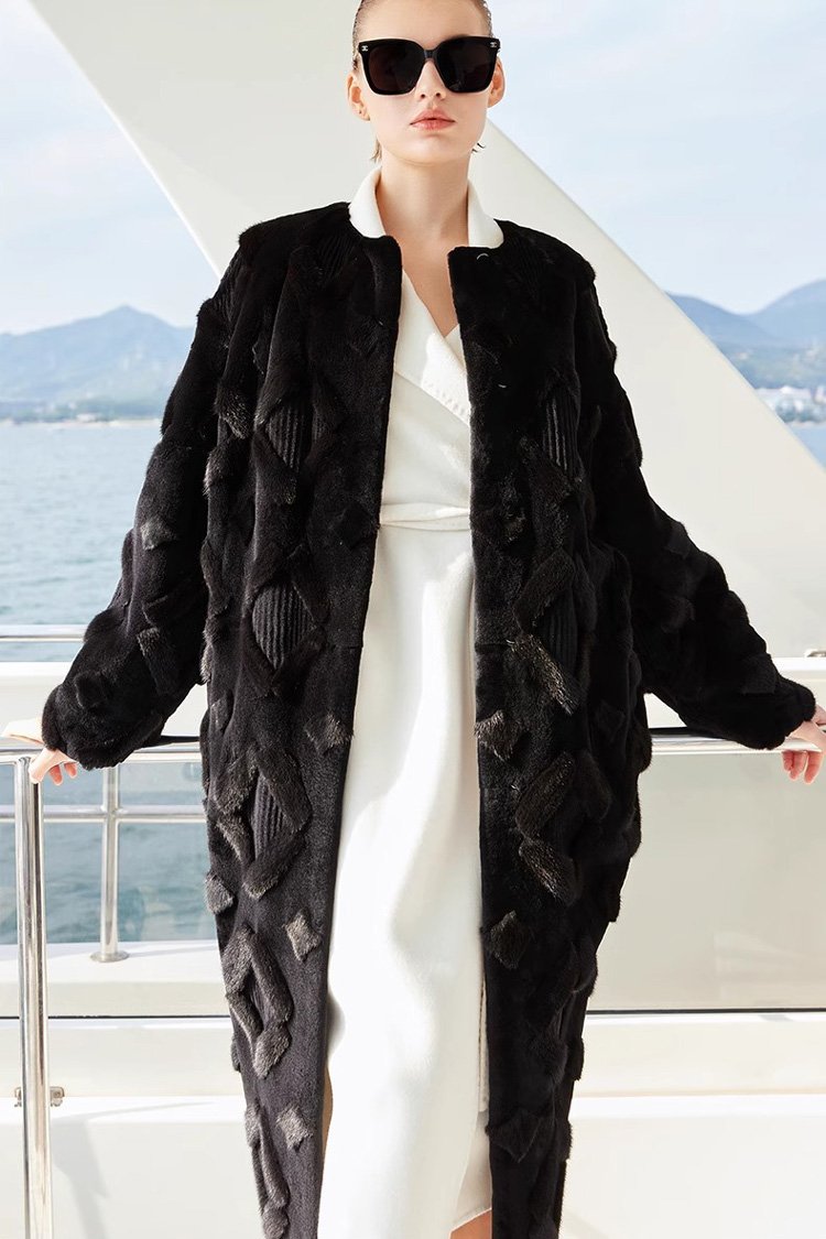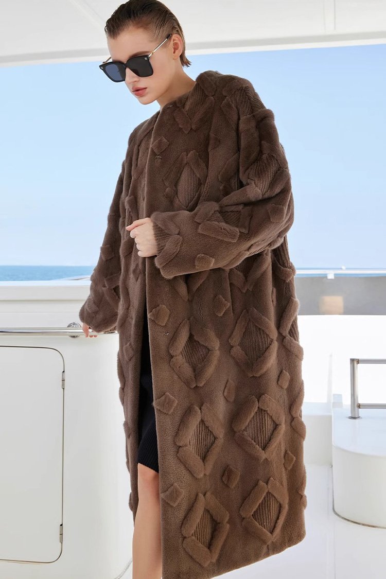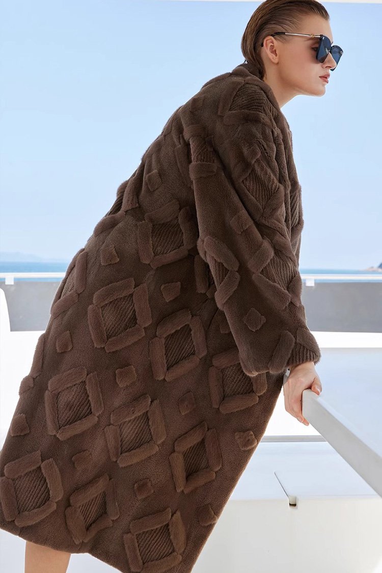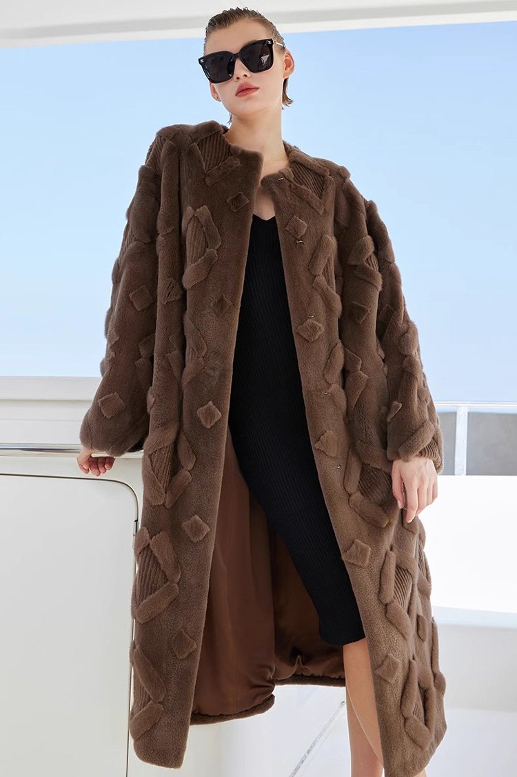 Original Geometric 3D Design Imported Mink Fur Coat for Women — Full-Pelt Heavy Craft Mink Fleece, New Arrival
