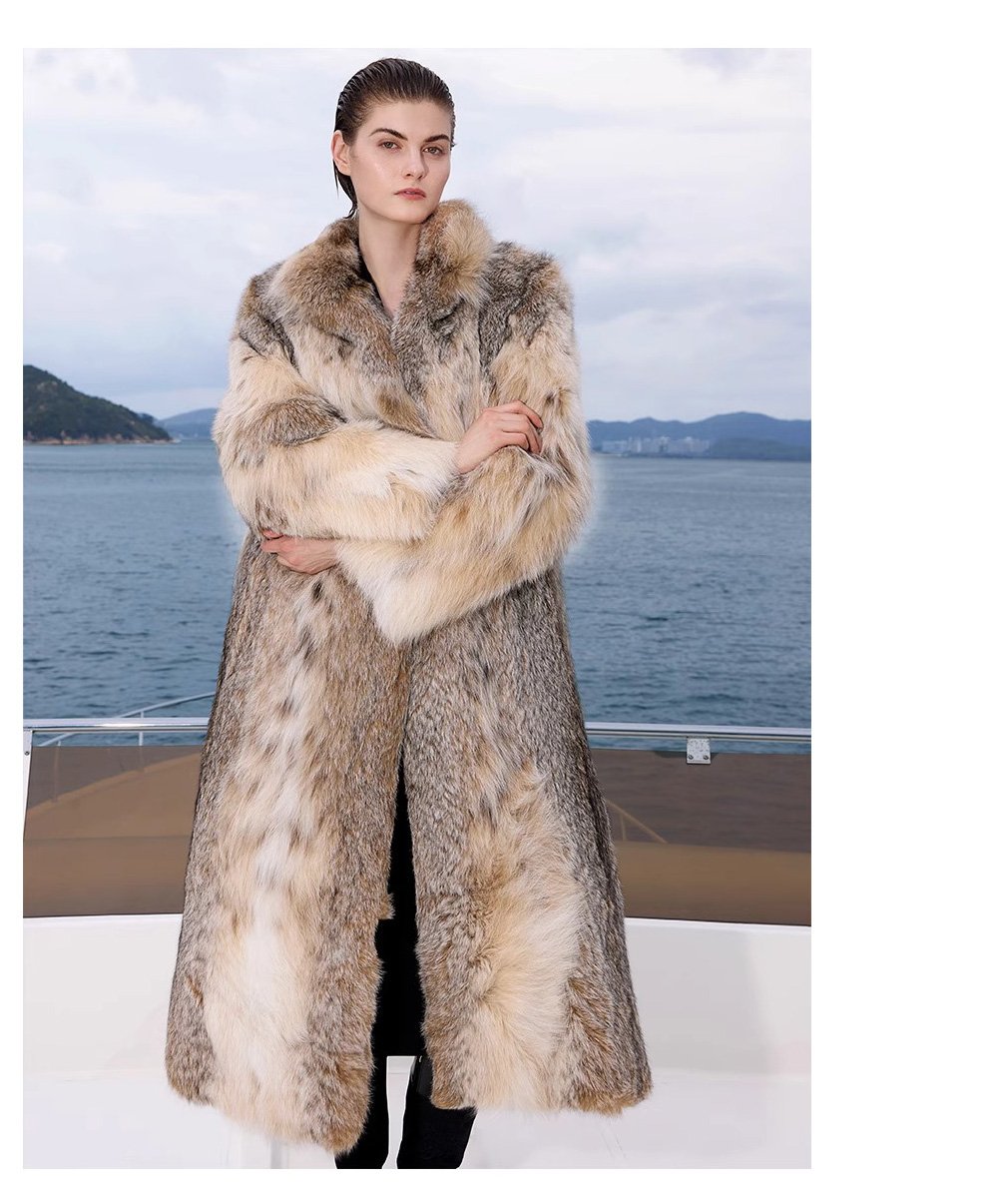 Original High-Luxury Series Imported North American Canadian Natural Color Lynx Fur Coat — Winter Outerwear