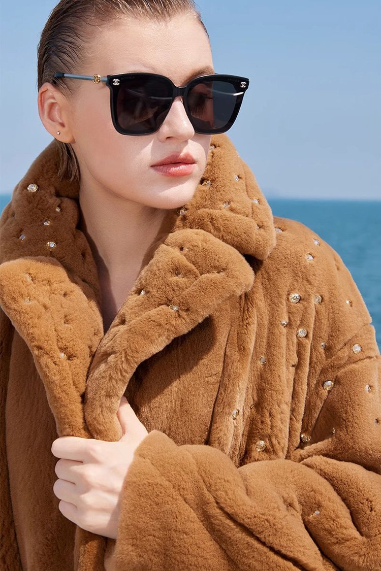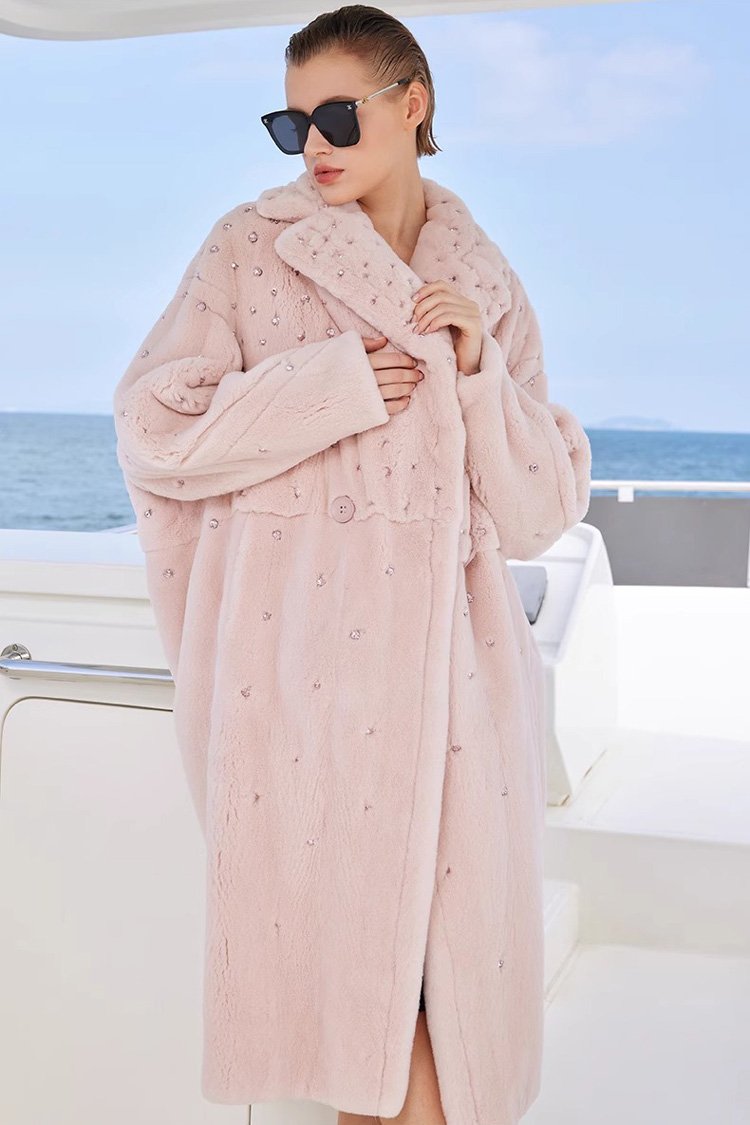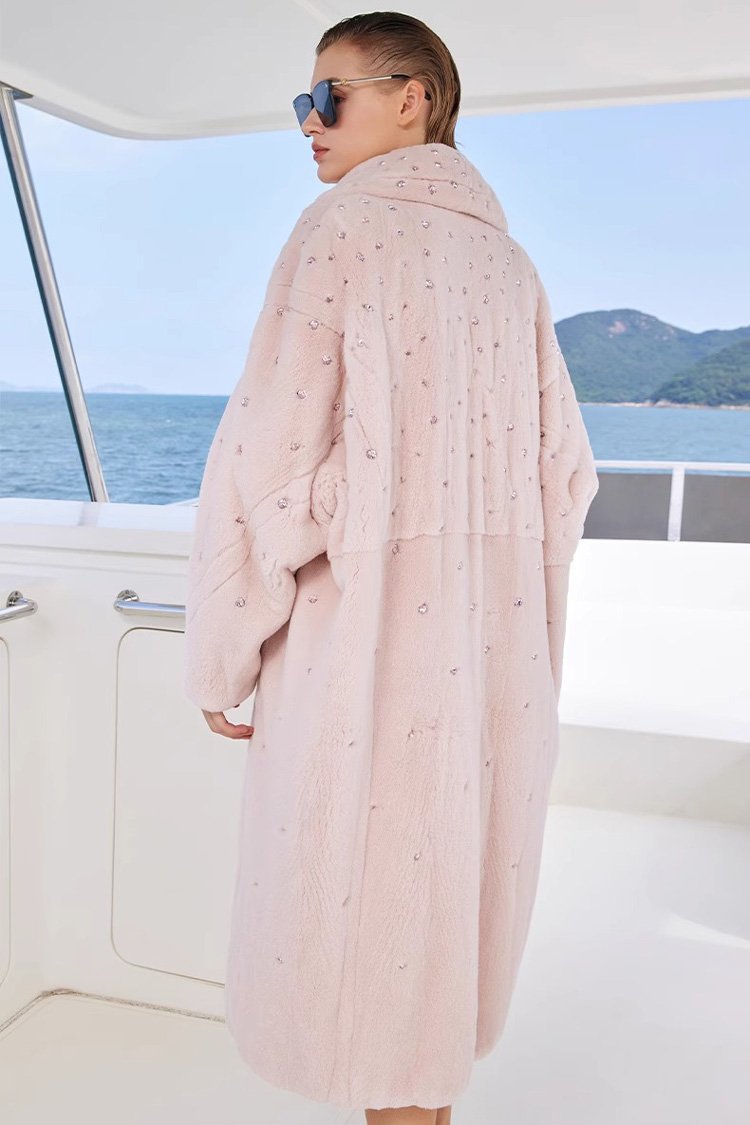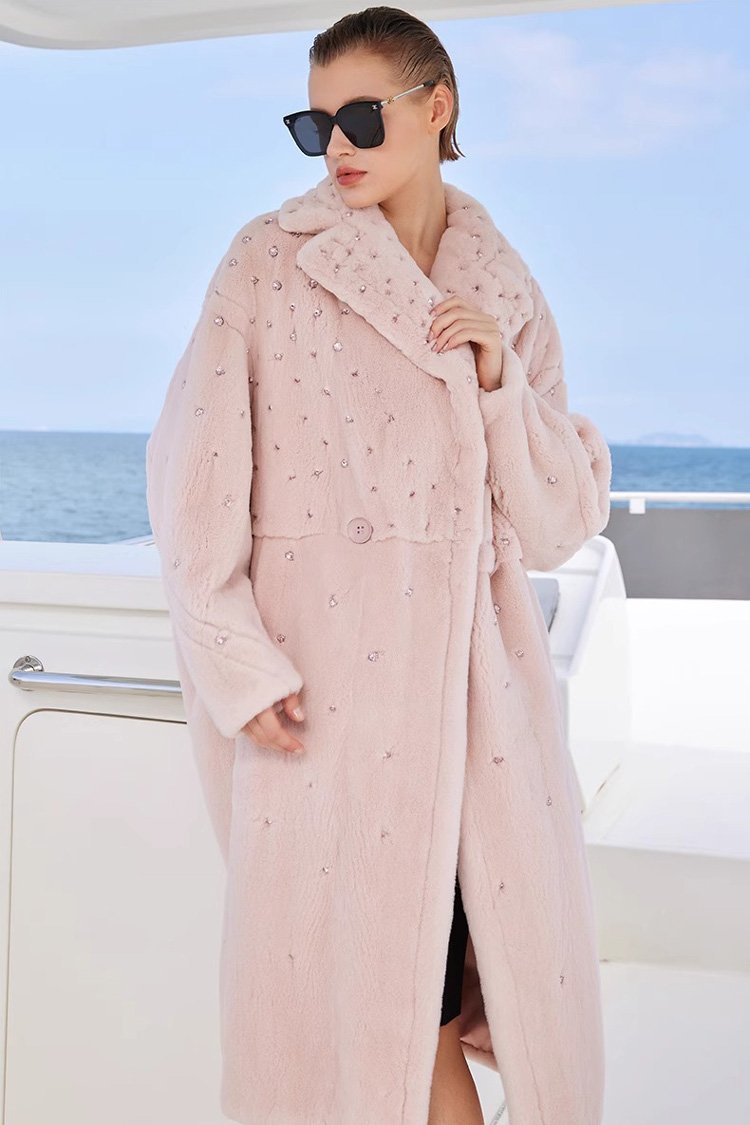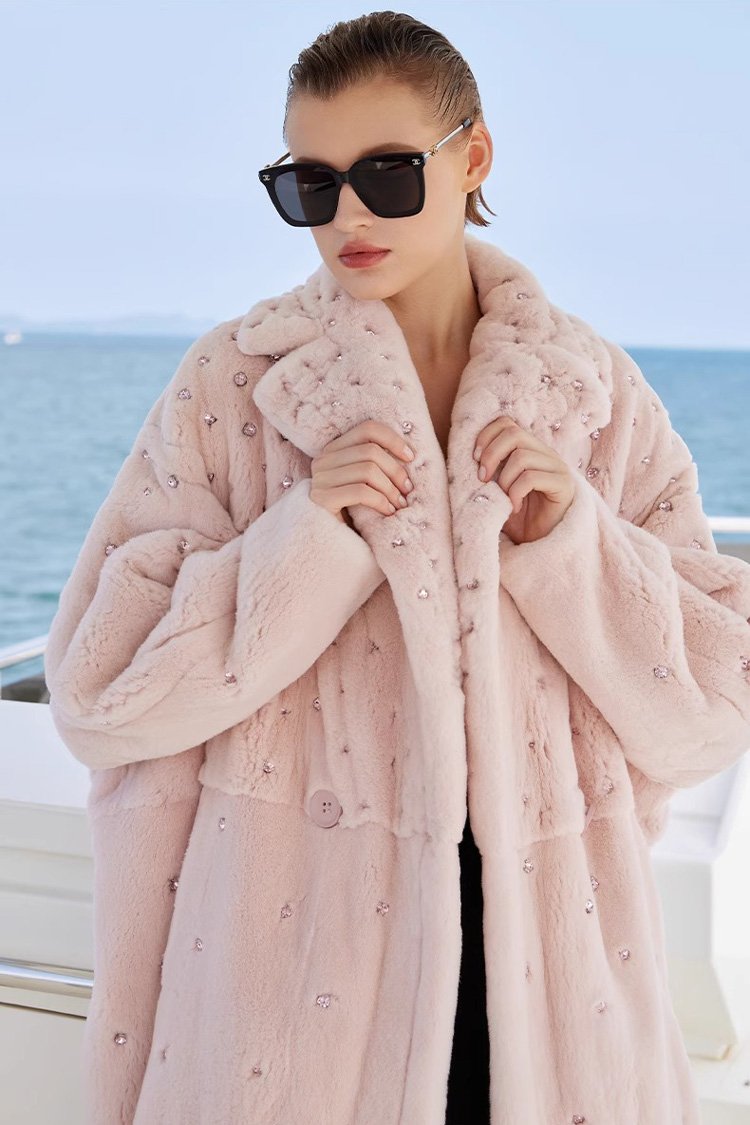 Original Teddy Crystal-Embellished Plucked Mink Fur Coat for Women — Imported Mink, 2025 New Collection