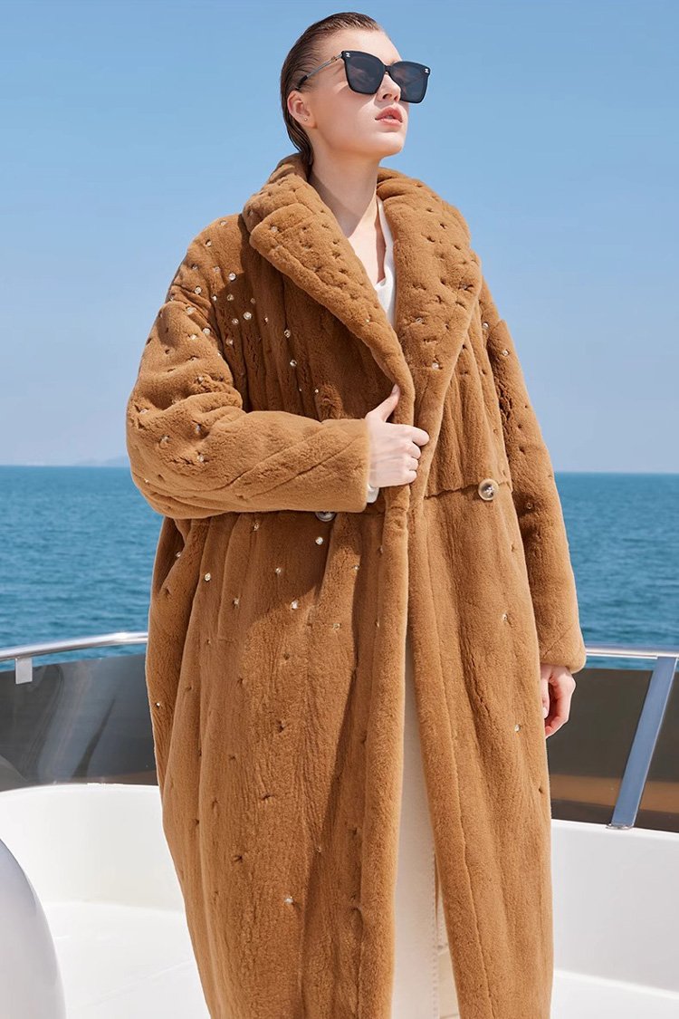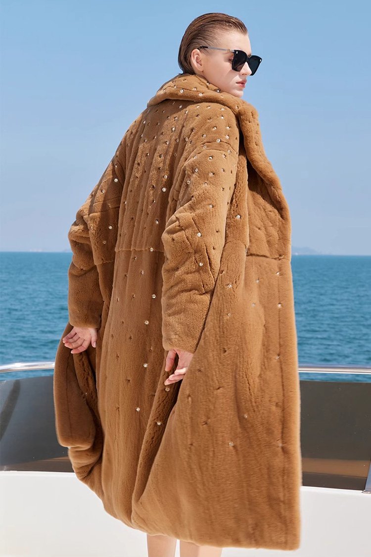 Original Crystal-Embellished Teddy Mink Fur Coat for Women — Fashion Winter Outerwear, 2025 New Collection