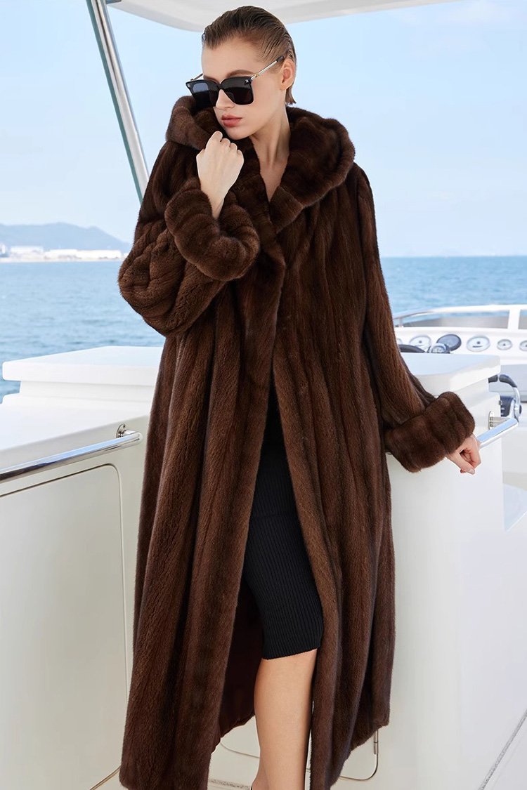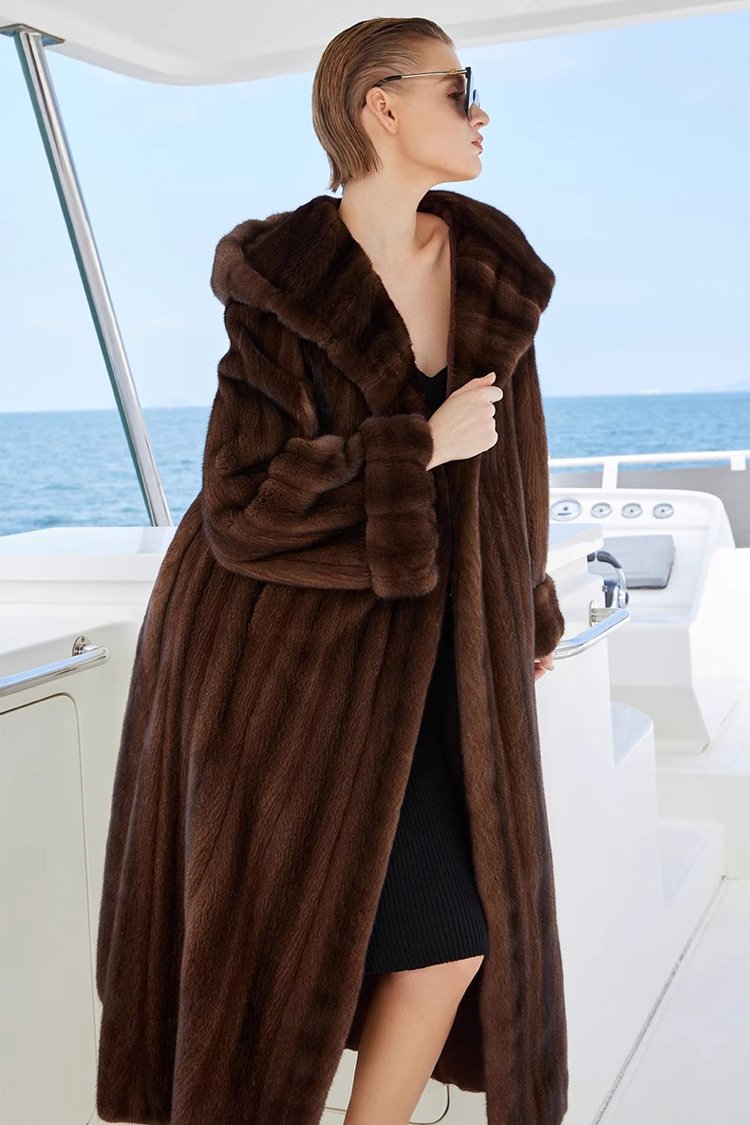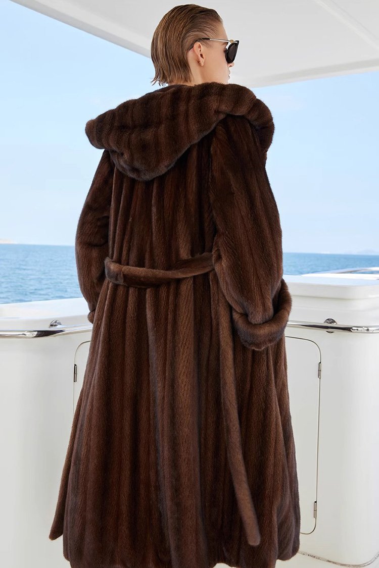 original “vintage editorial” mink fur coat for women — retro hooded full pelt design, imported new arrival