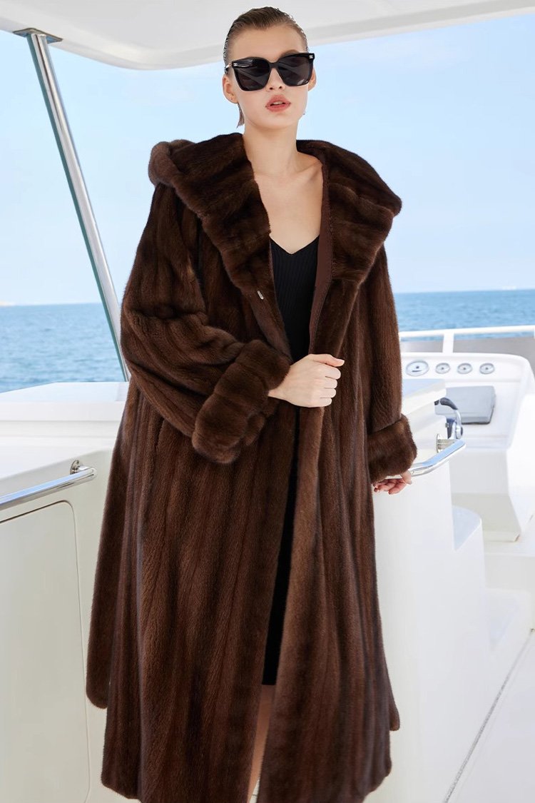 Original “Vintage Editorial” Mink Fur Coat for Women — Retro Hooded Full-Pelt Design, Imported New Arrival