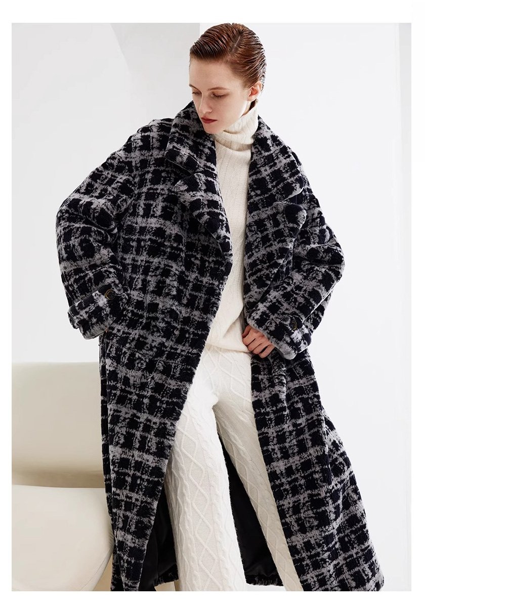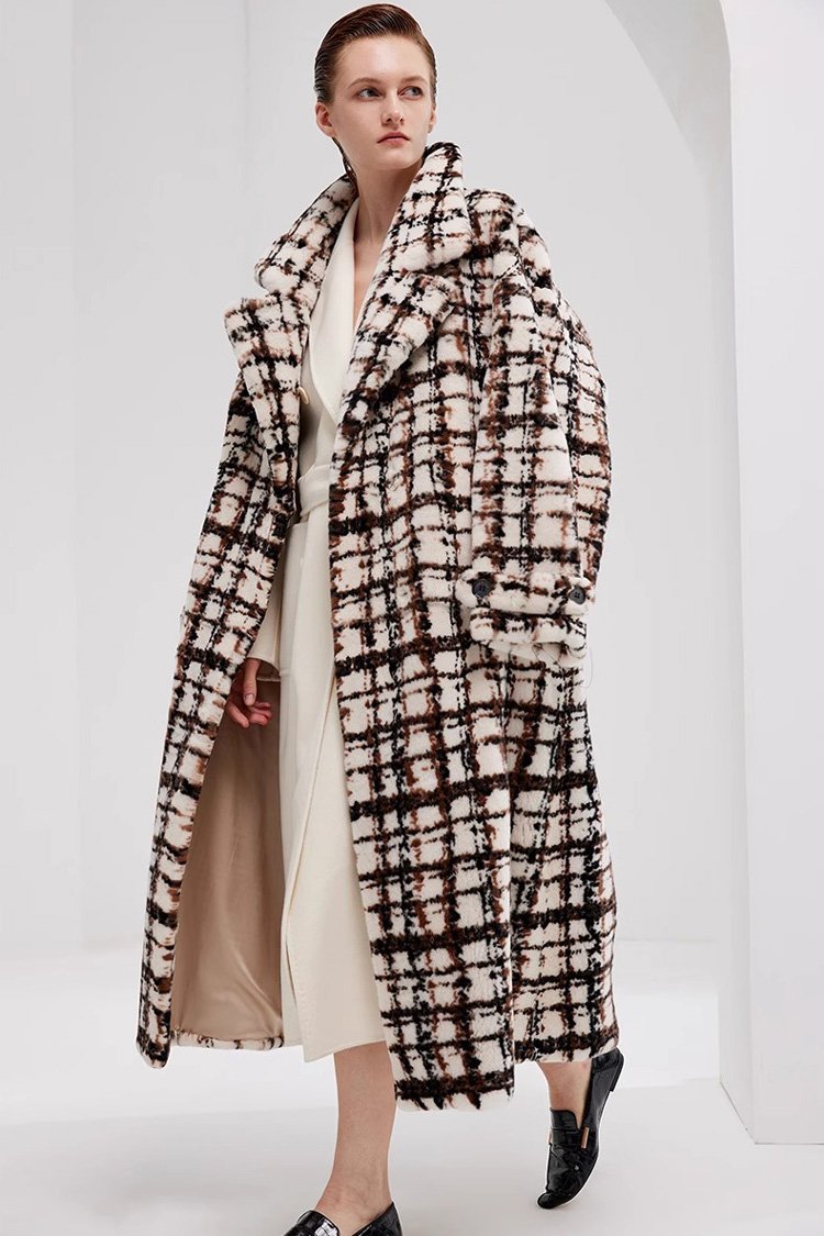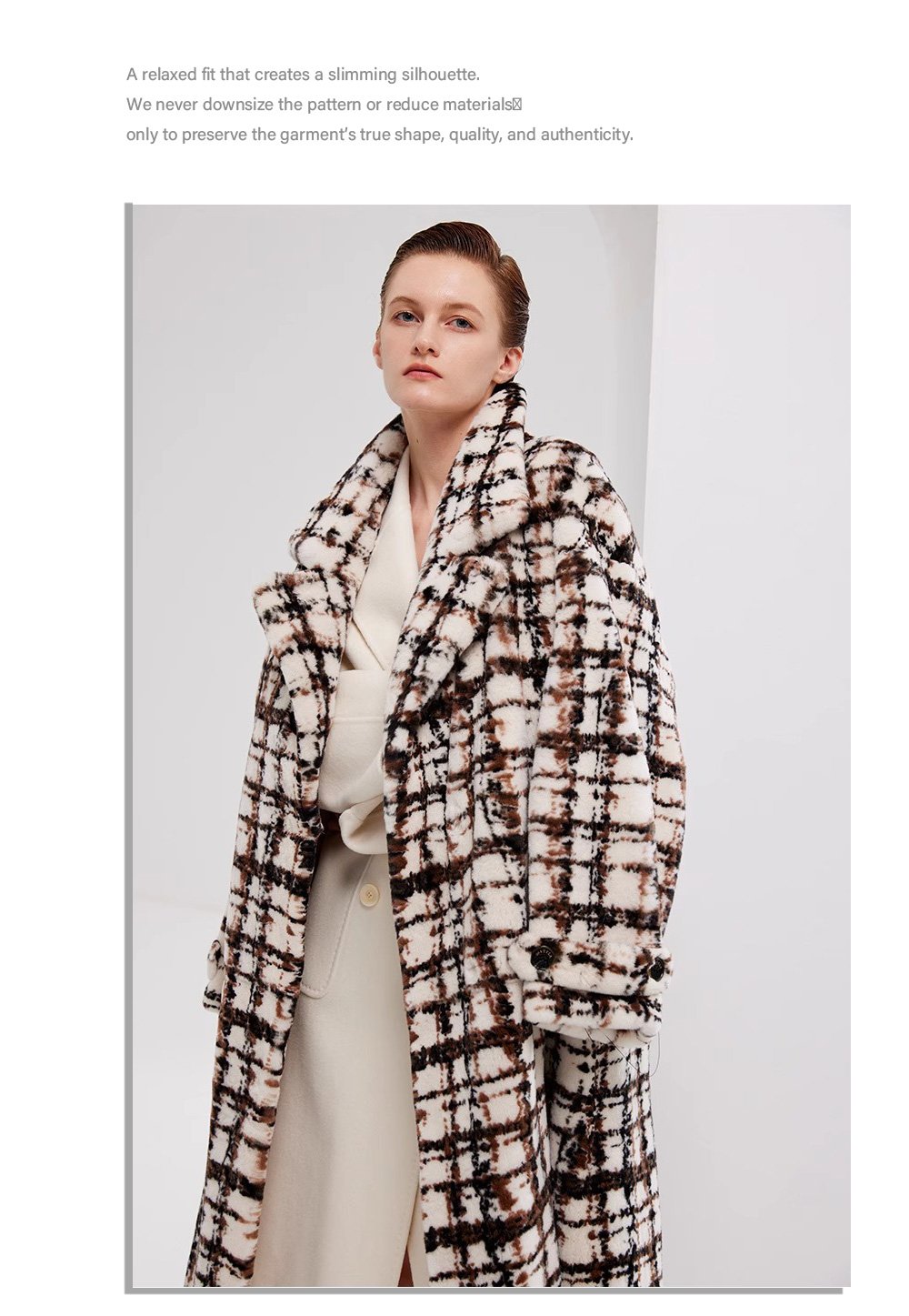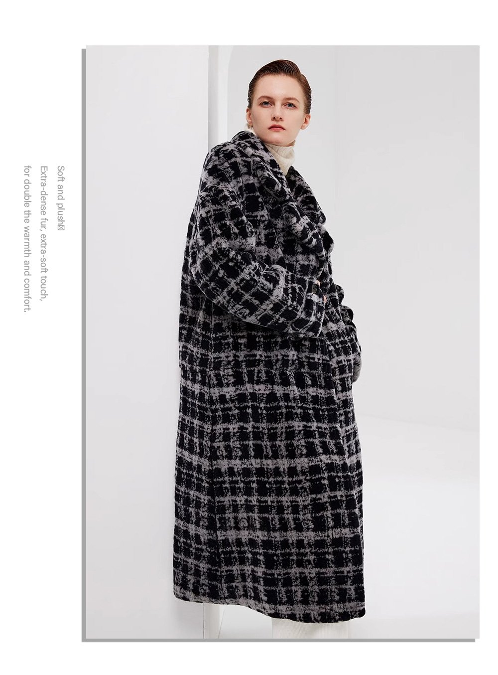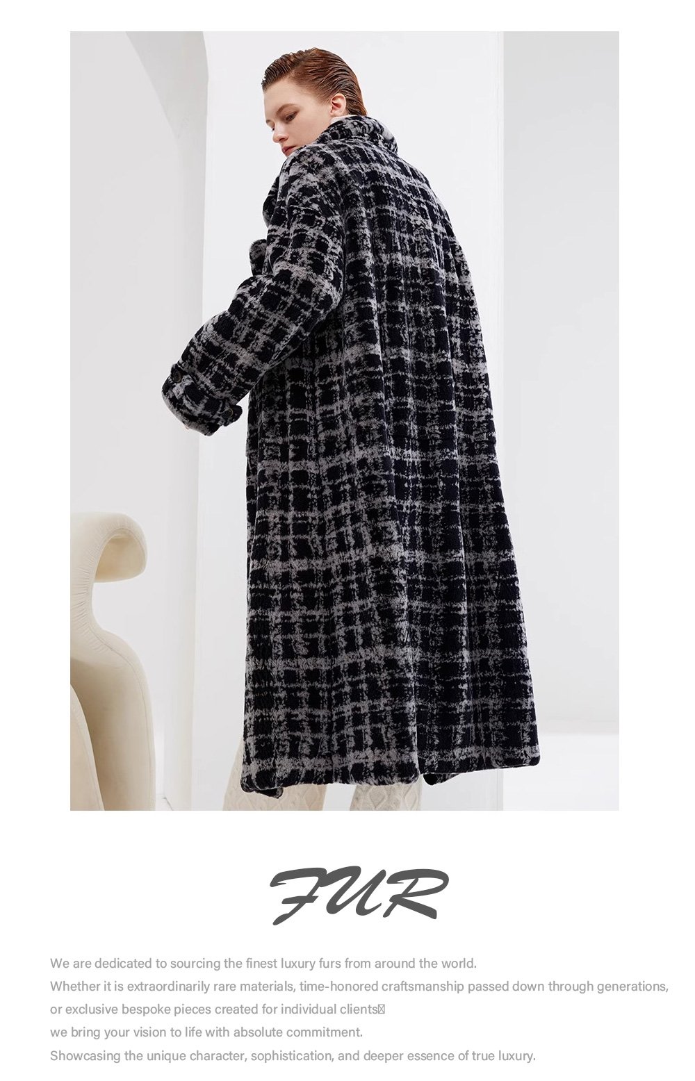 Plucked Craftsmanship Imported Velvet Mink Fur Coat for Women — Long Full-Pelt Mink Fleece with Plaid Design, Water Mink Winter Outerwear