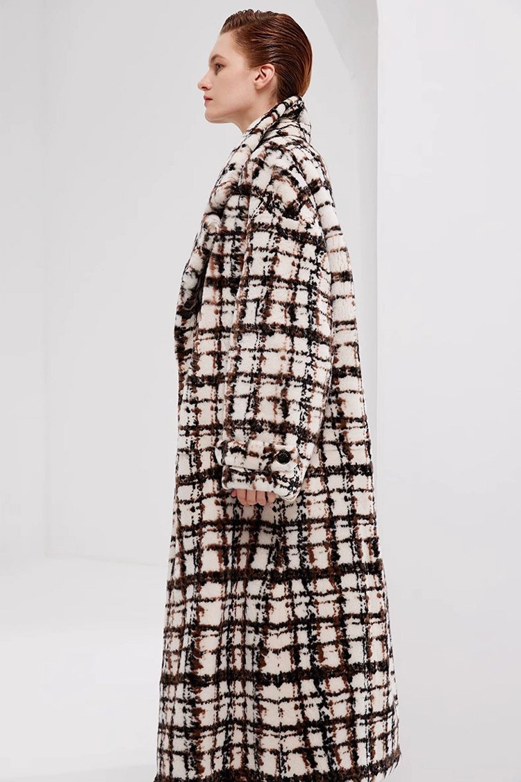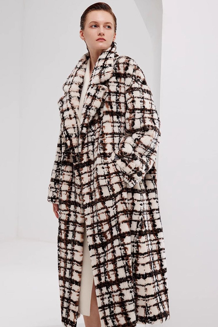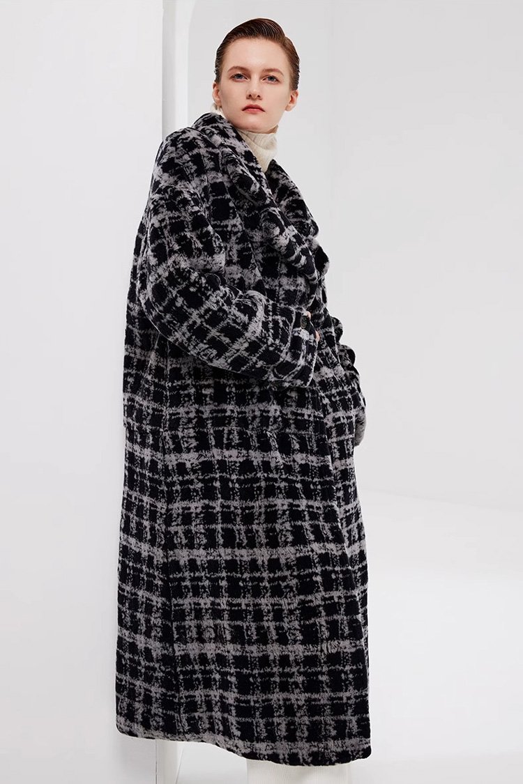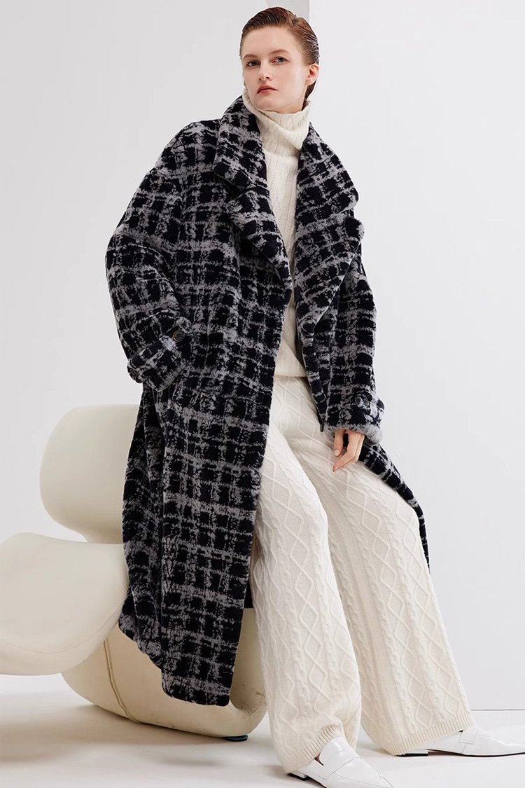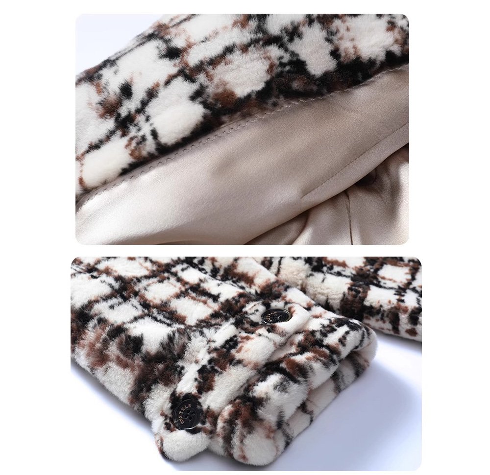 Plucked Craftsmanship Imported Velvet Mink Fur Coat for Women — Long Full-Pelt Mink Fleece with Plaid Design, Water Mink Winter Outerwear