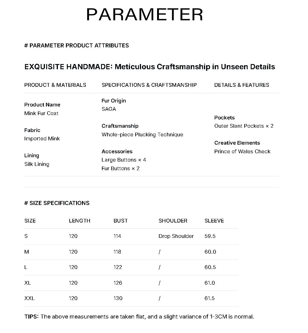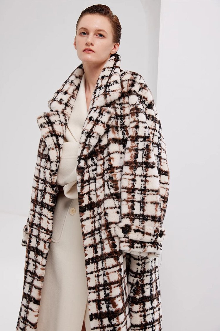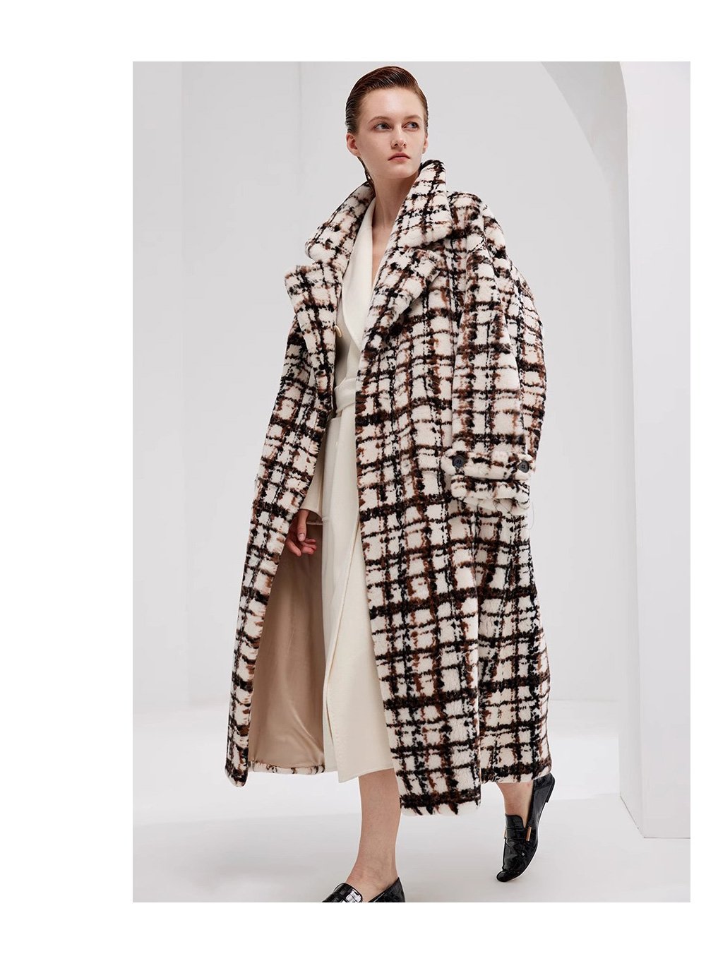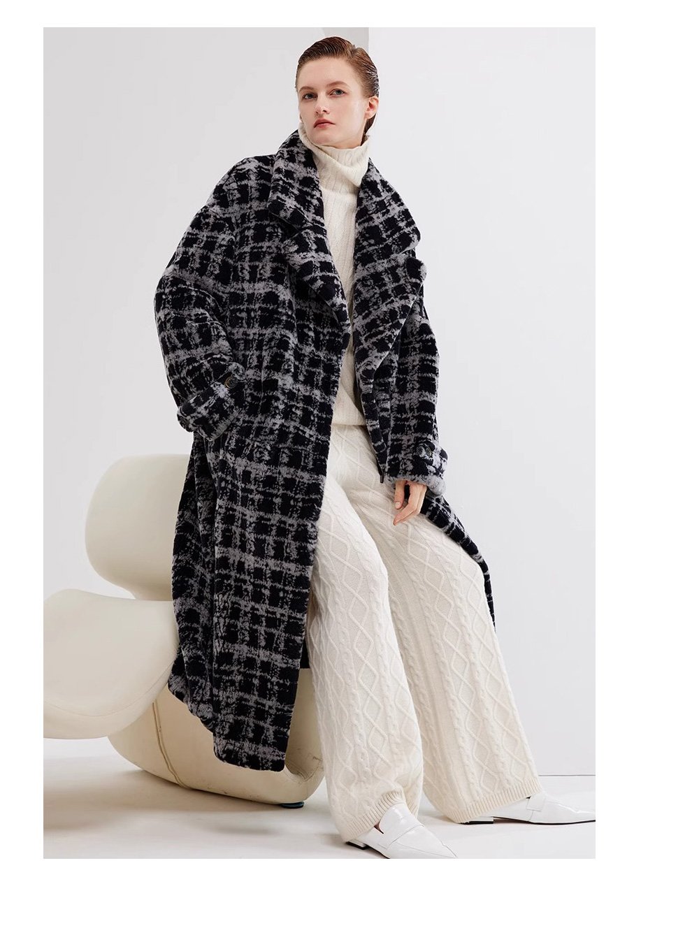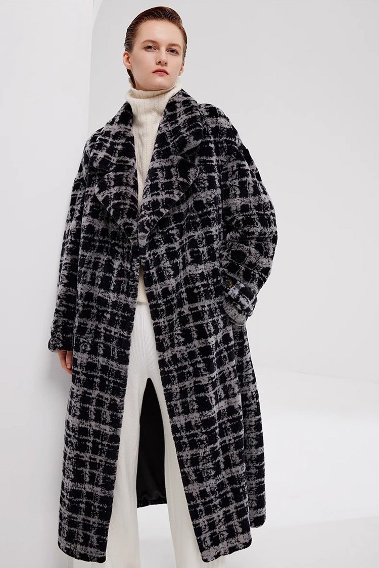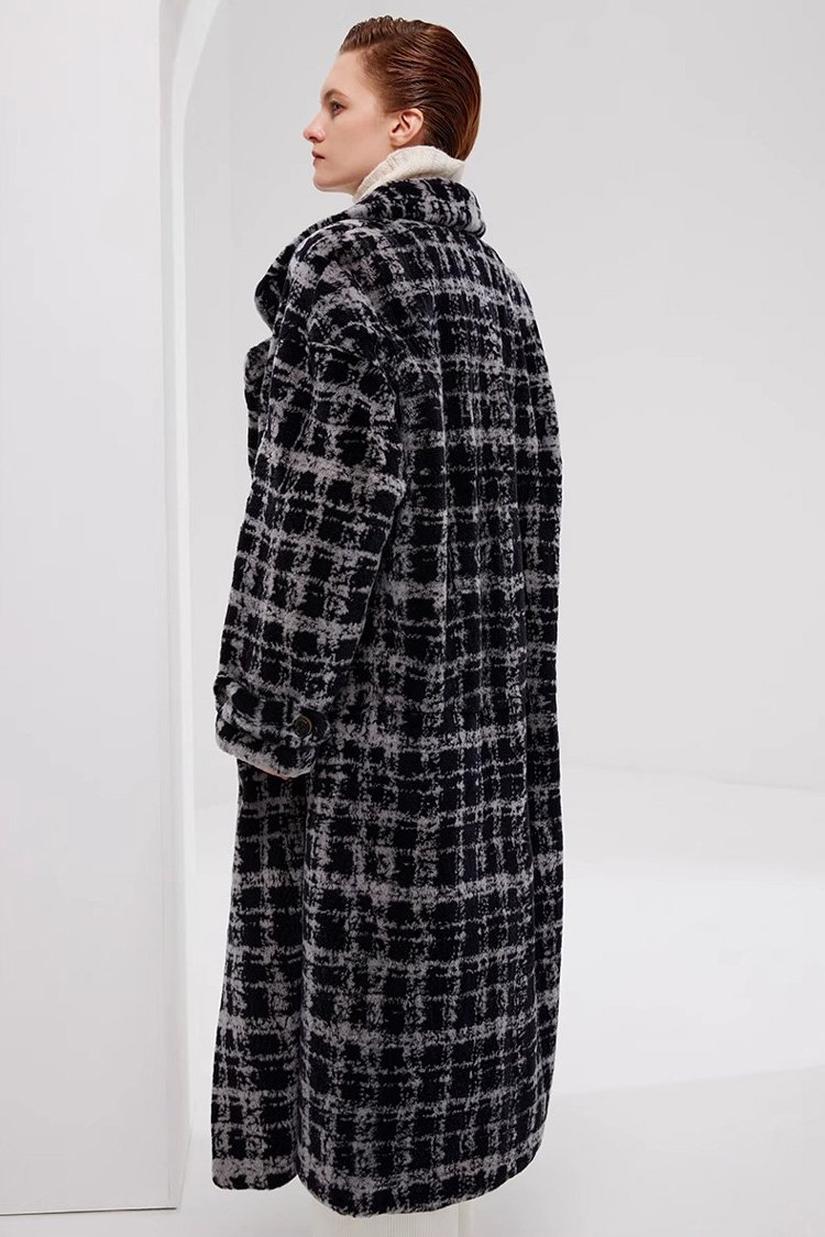 Plucked Craftsmanship Imported Velvet Mink Fur Coat for Women — Long Full-Pelt Mink Fleece with Plaid Design, Water Mink Winter Outerwear
