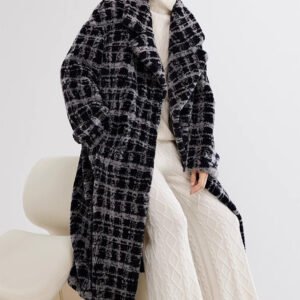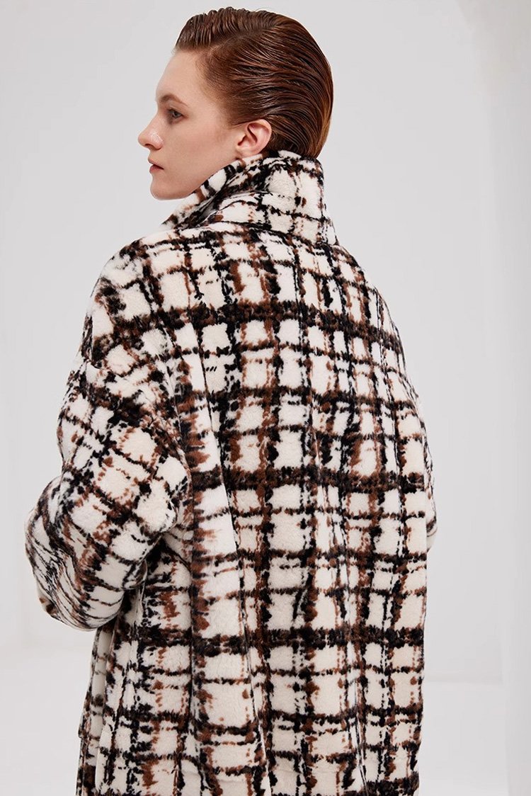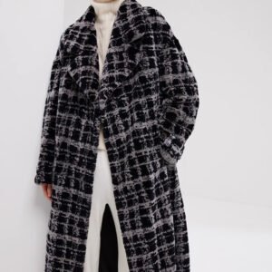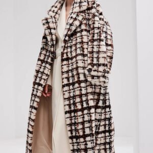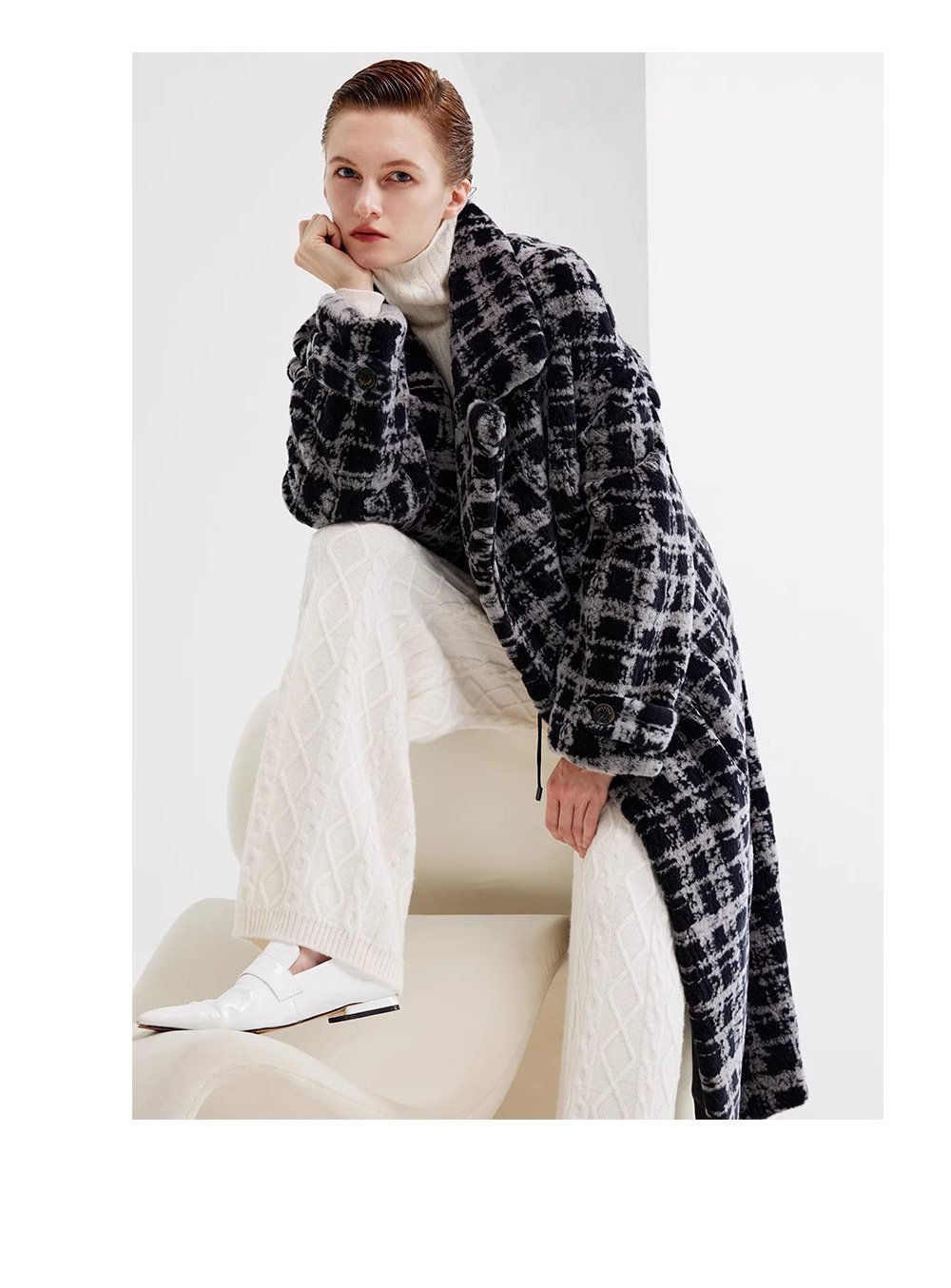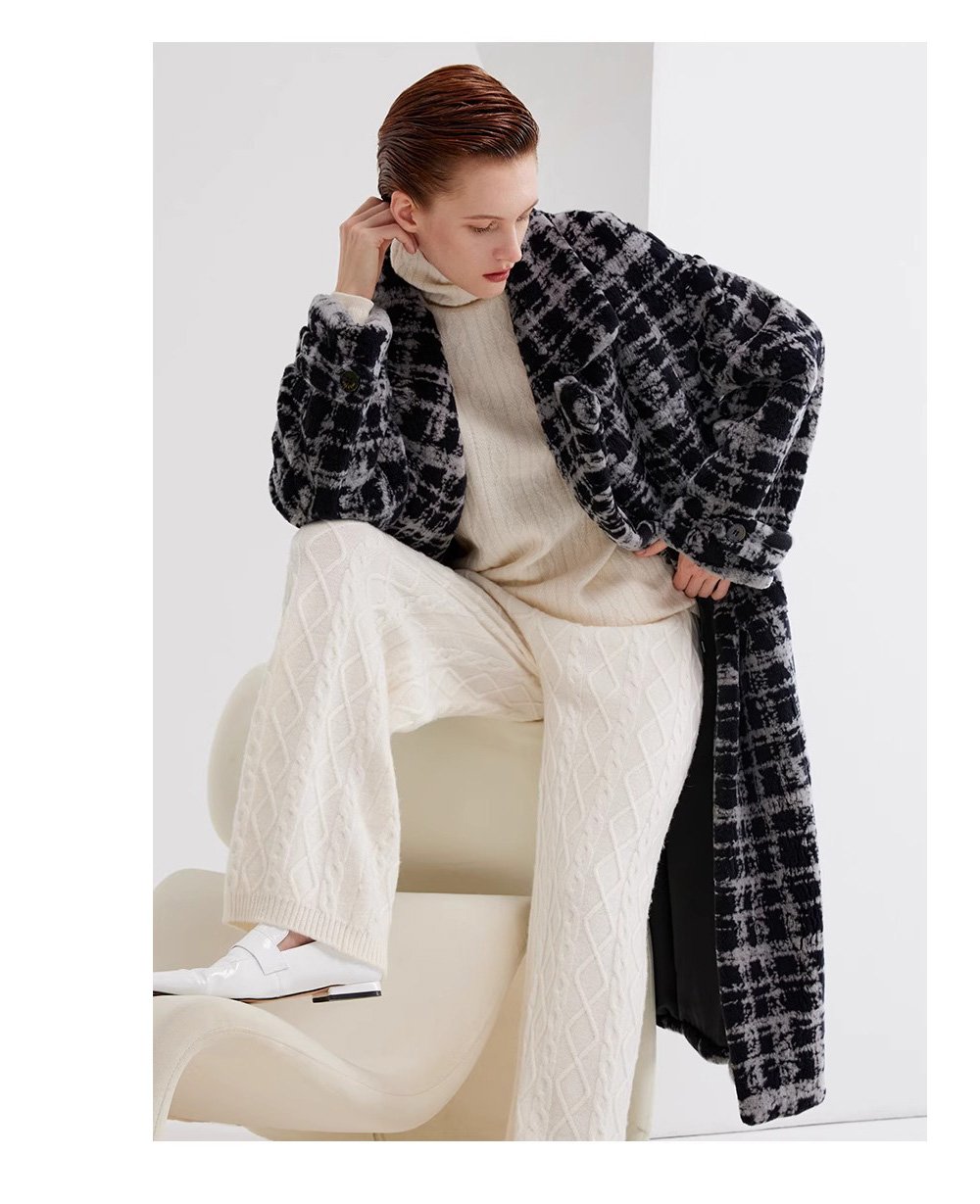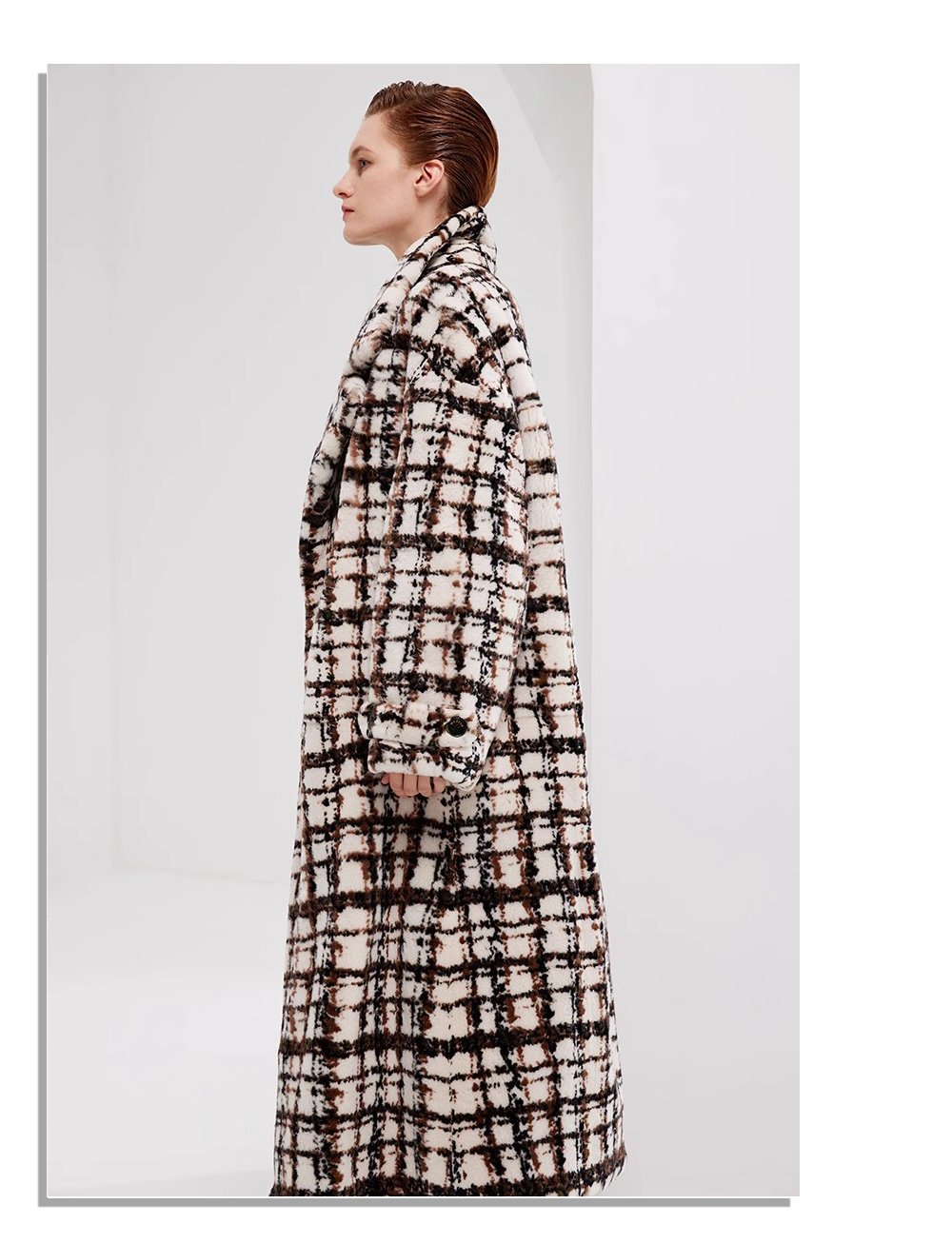 Plucked Craftsmanship Imported Velvet Mink Fur Coat for Women — Long Full-Pelt Mink Fleece with Plaid Design, Water Mink Winter Outerwear