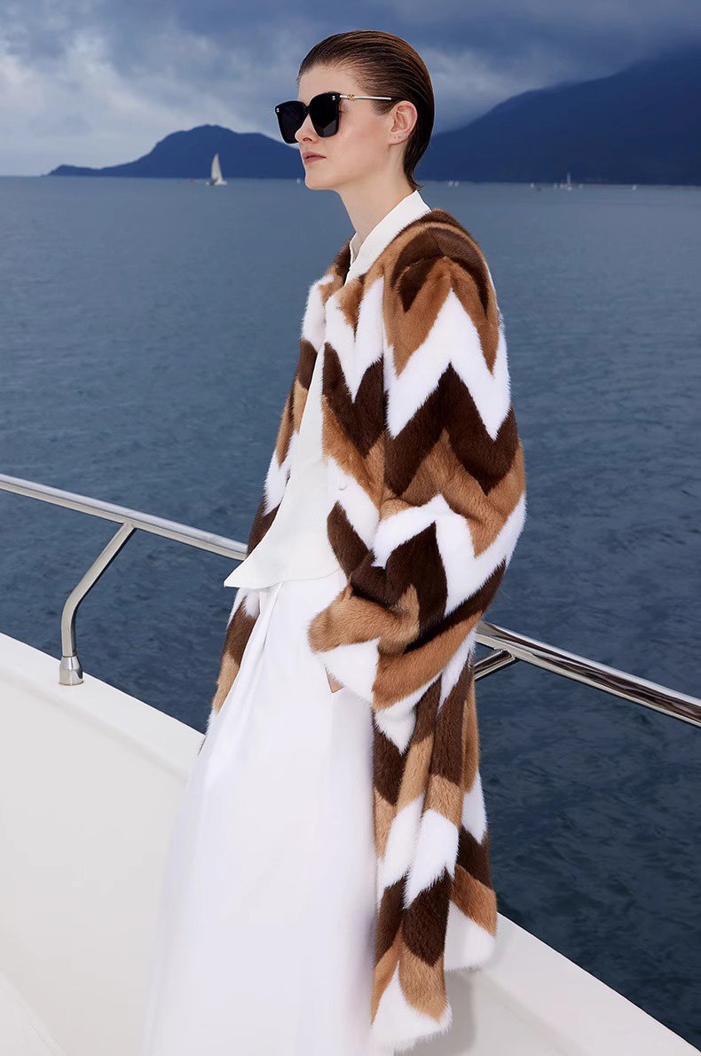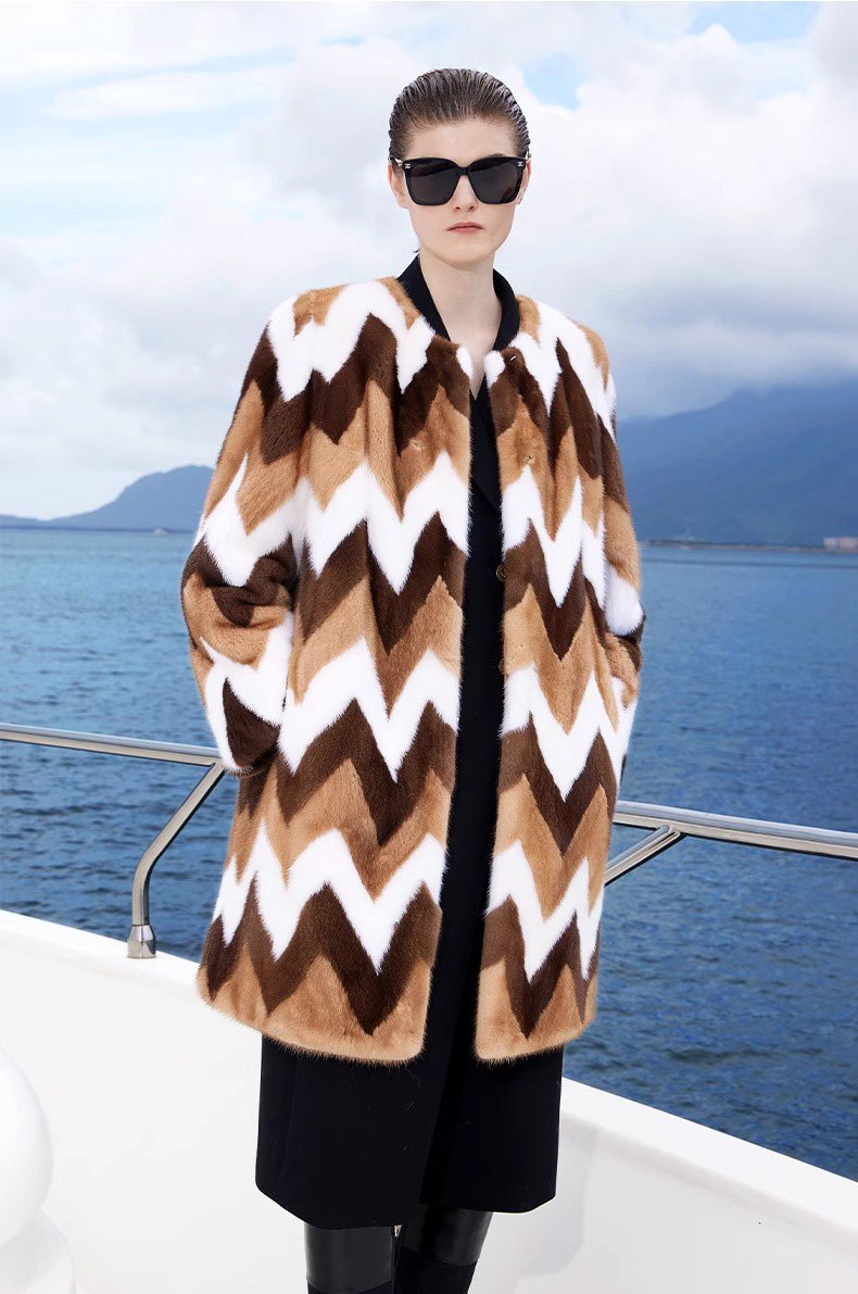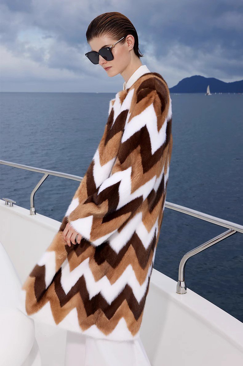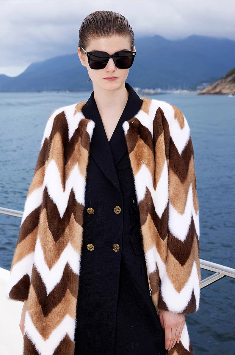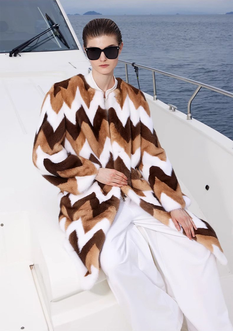 Women’s Mink Fur Coat 2025 – Geometric Wave Pattern, Hand-Inlaid Luxury Design