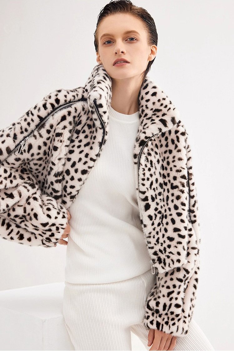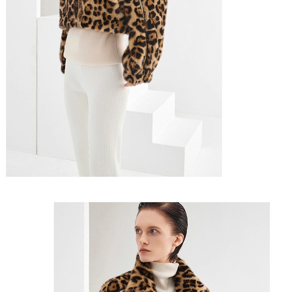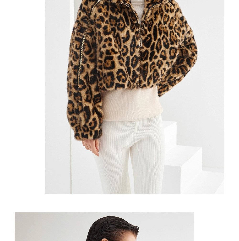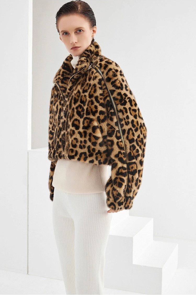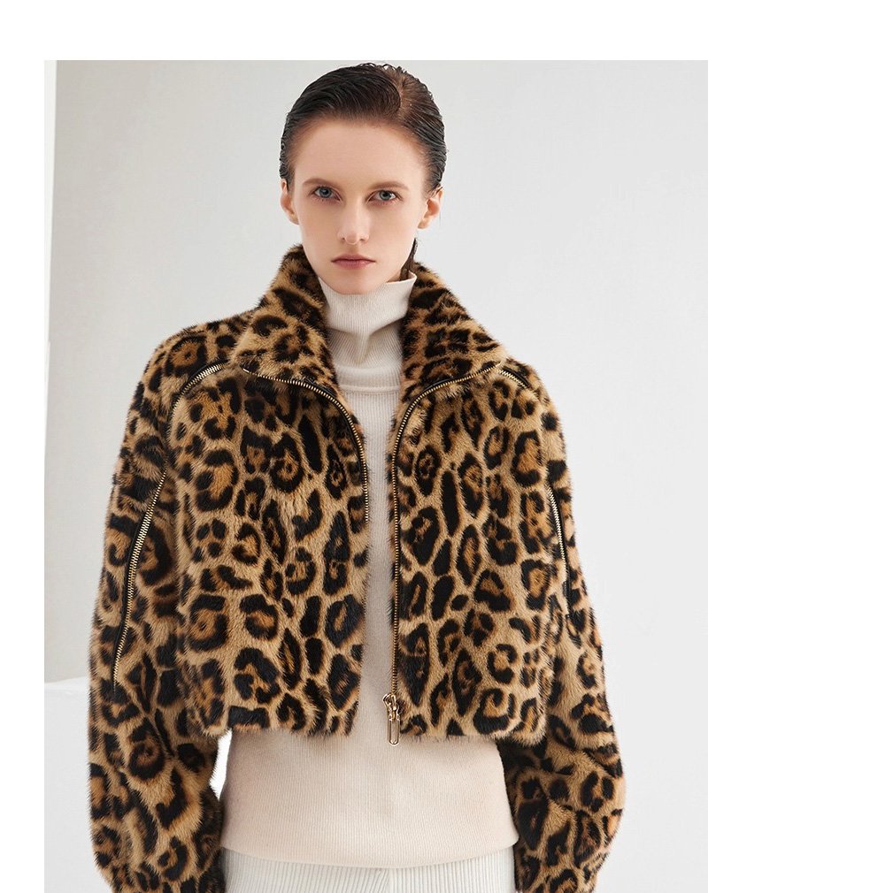Women’s Mink Fur Coat, Youthful Fashion Short Style, Leopard Print, Full Mink Fur Jacket
