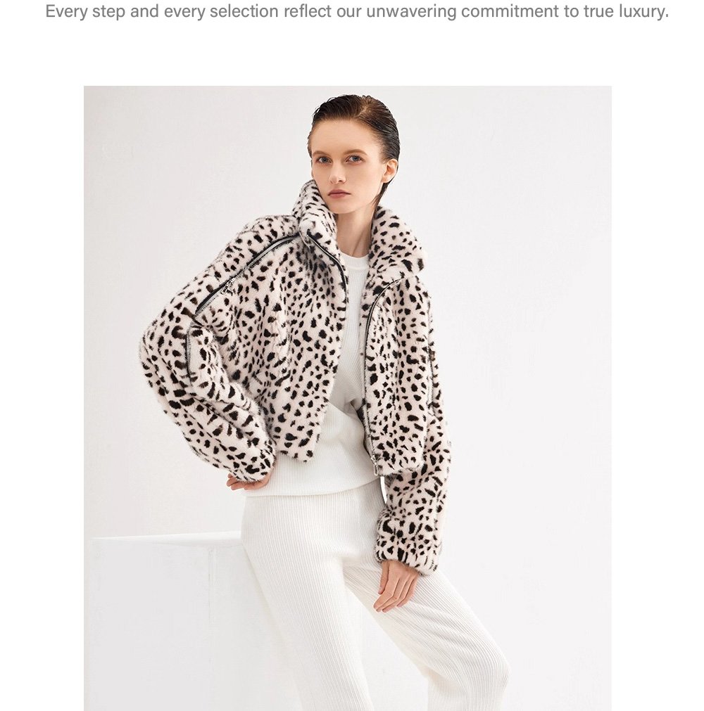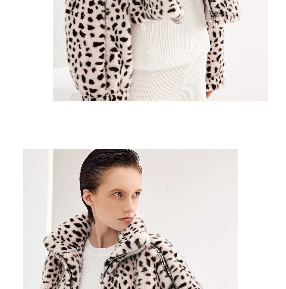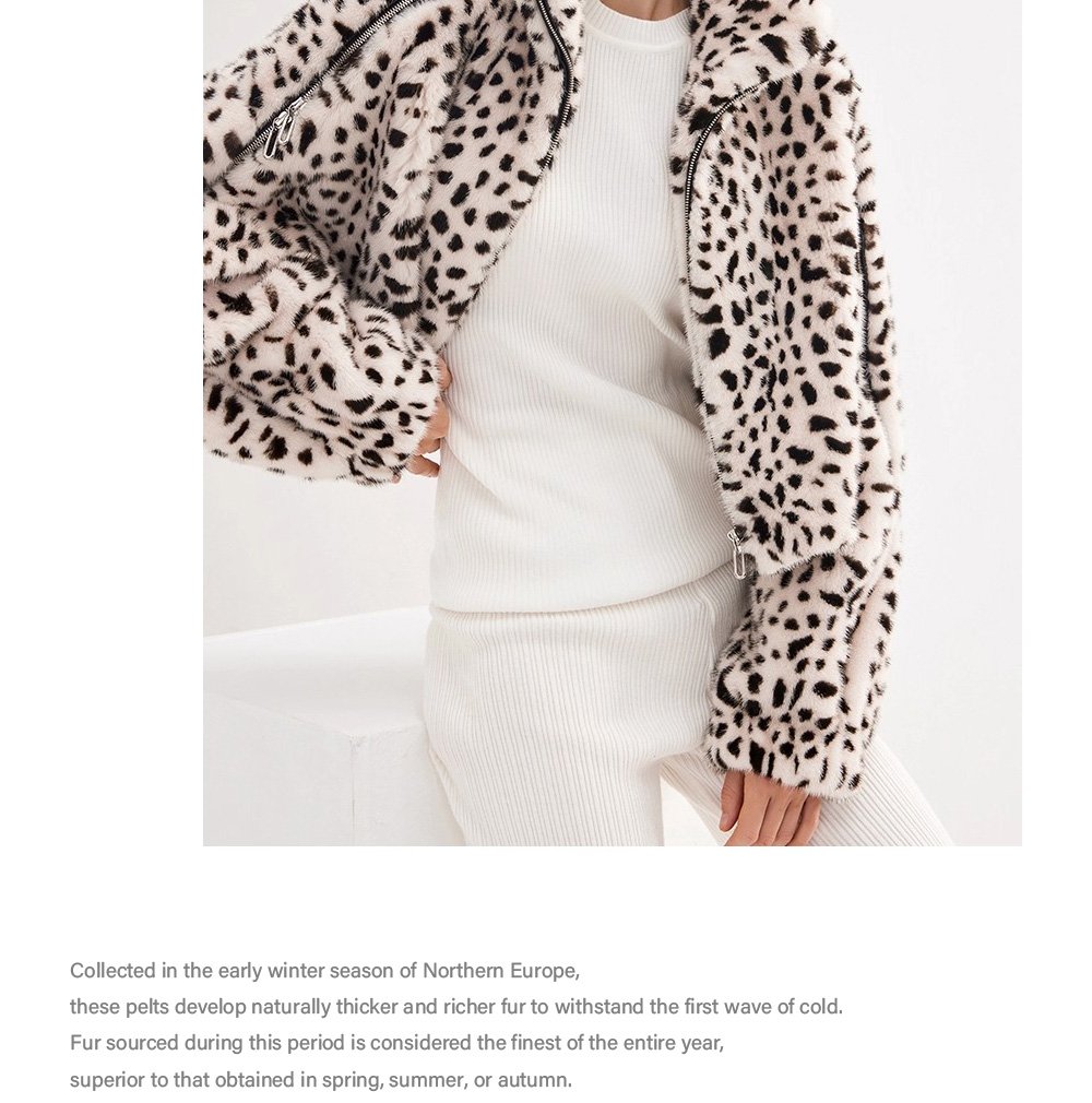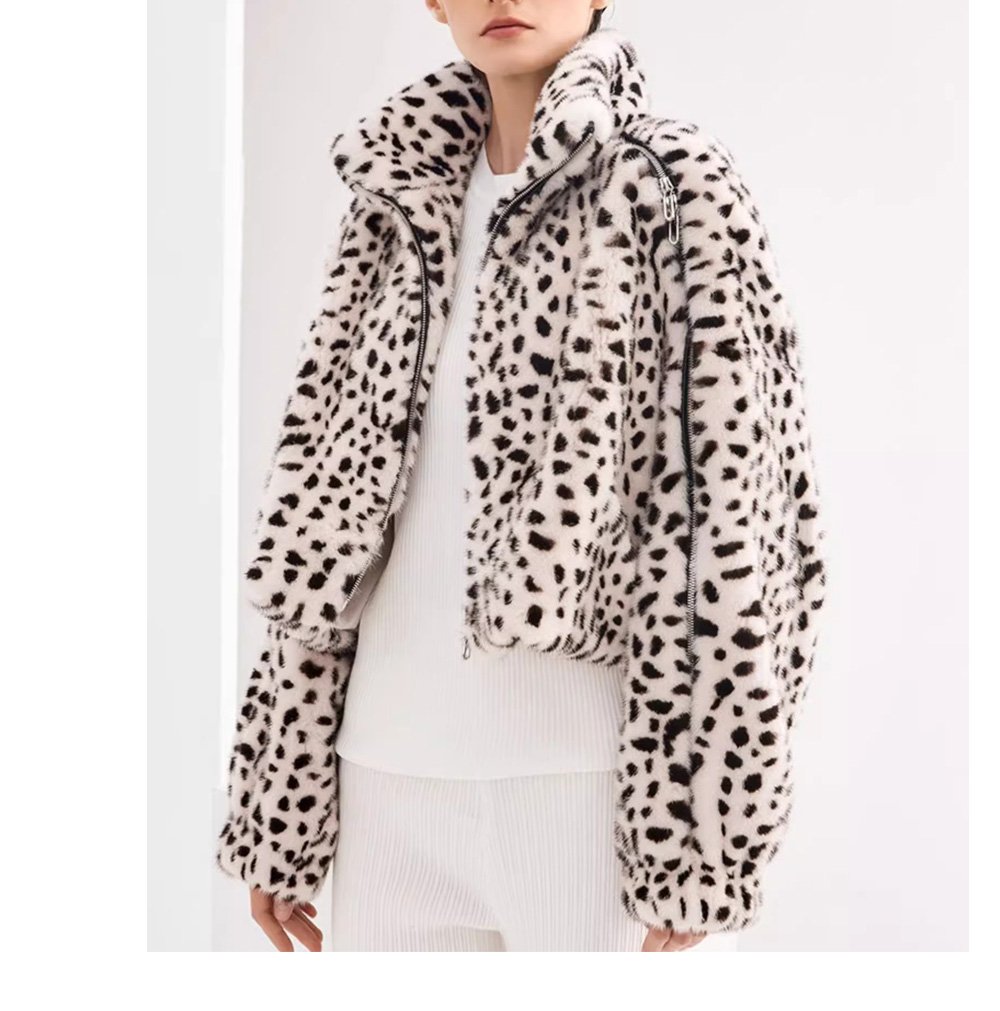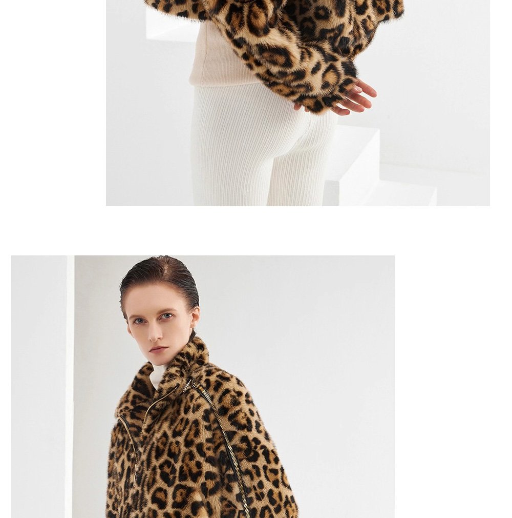 Women’s Mink Fur Coat, Youthful Fashion Short Style, Leopard Print, Full Mink Fur Jacket